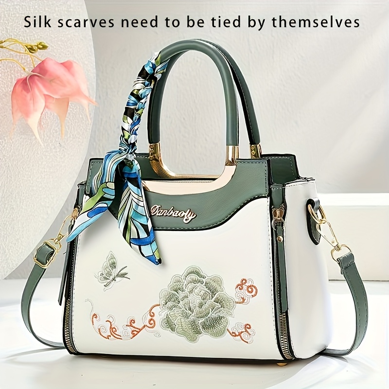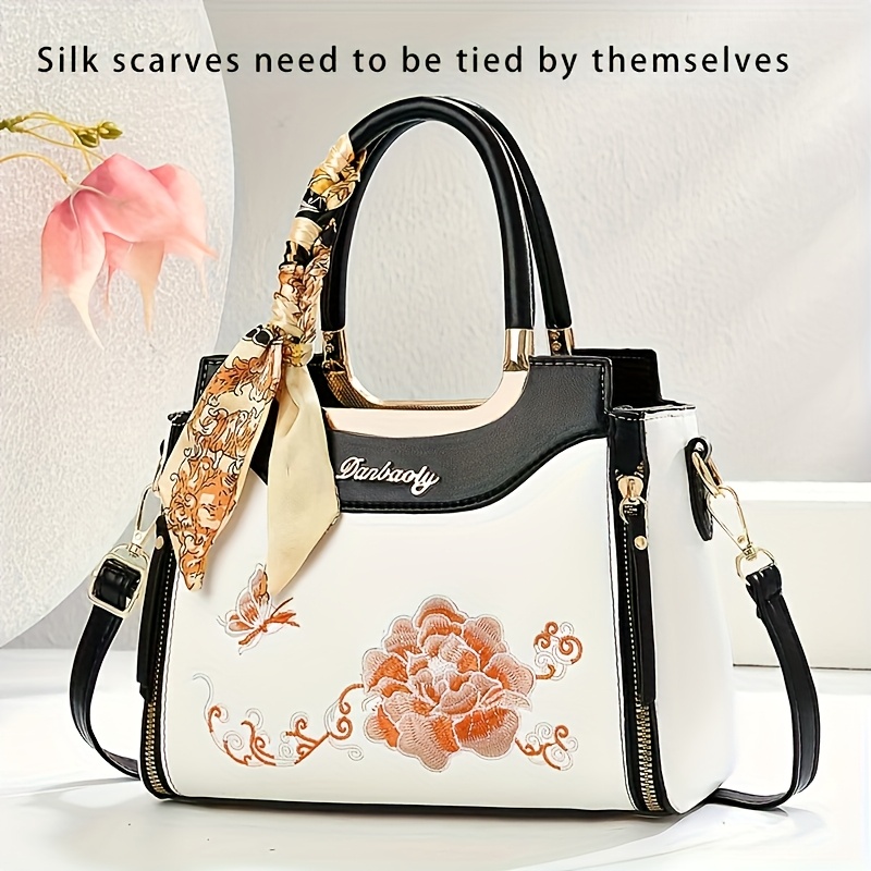 Sac Bandoulière Élégant Femme– Noir avec Broderie Florale et Bandoulière Amovible, Grande Capacité, Fermeture Éclair, Sac à Épaule, Cadeau Idéal pour Maman, Sac Polyvalent pour le Quotidien, Accessoire Sophistiqué, Finition Premium