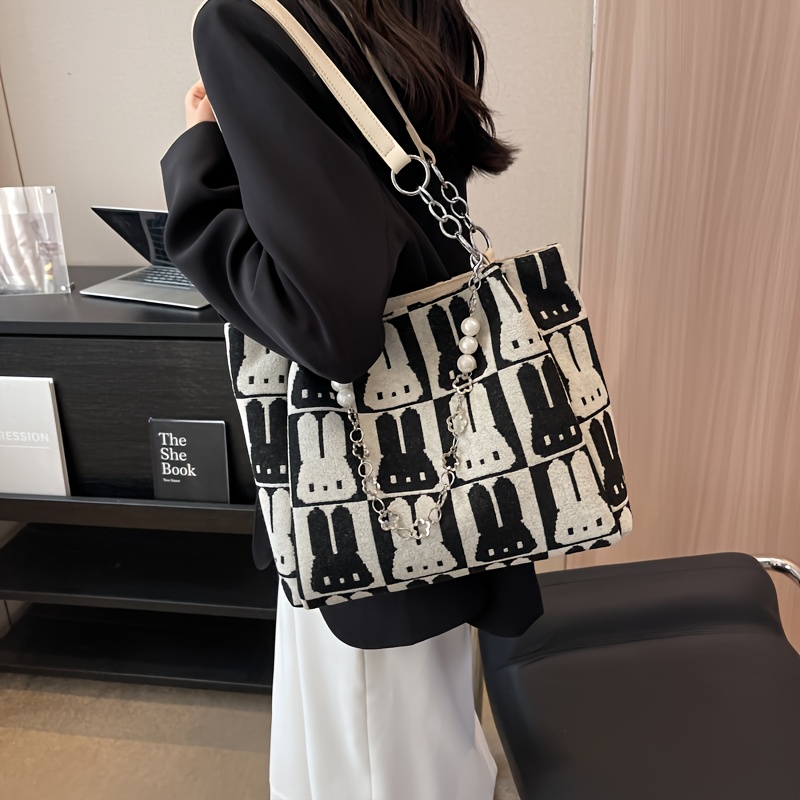 Sac Cabas Chic à Motif Lapin – Grande Capacité, Design Contrasté, Sac Décontracté à Porter à l’Épaule ou Sous le Bras, Fermeture Éclair