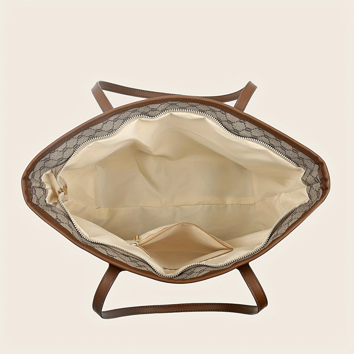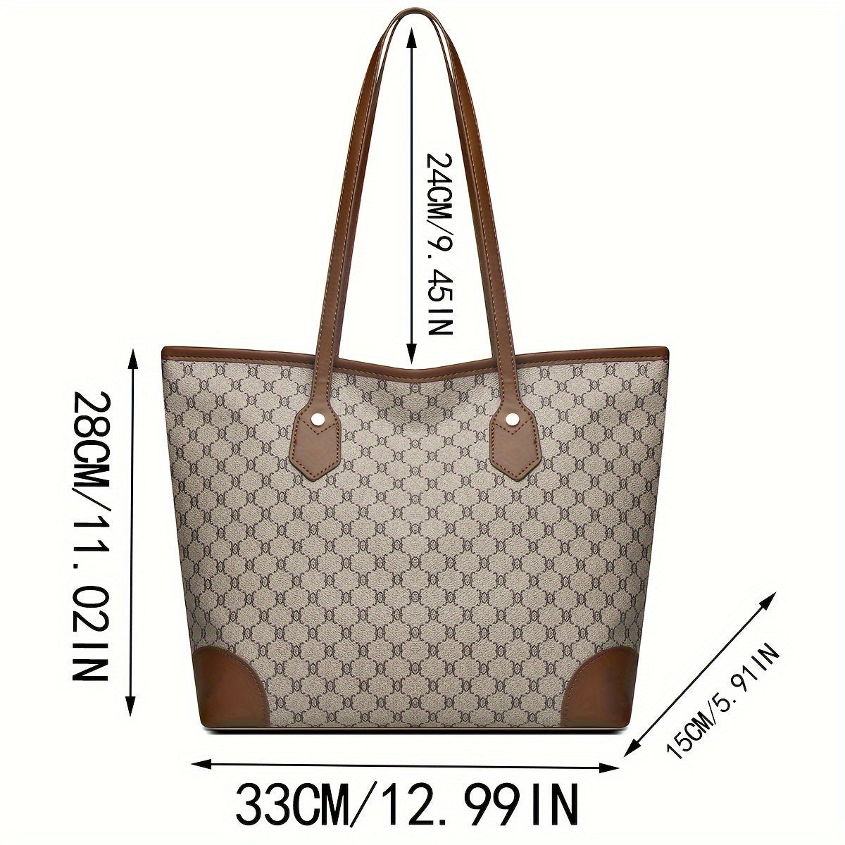 Sac fourre-tout grande capacité pour femmes – motif géométrique, fermeture zippée, doublure polyester, disponible en café/gris/blanc, spacieux et polyvalent pour travail, voyage et usage quotidien