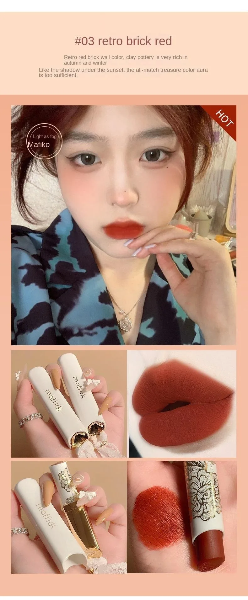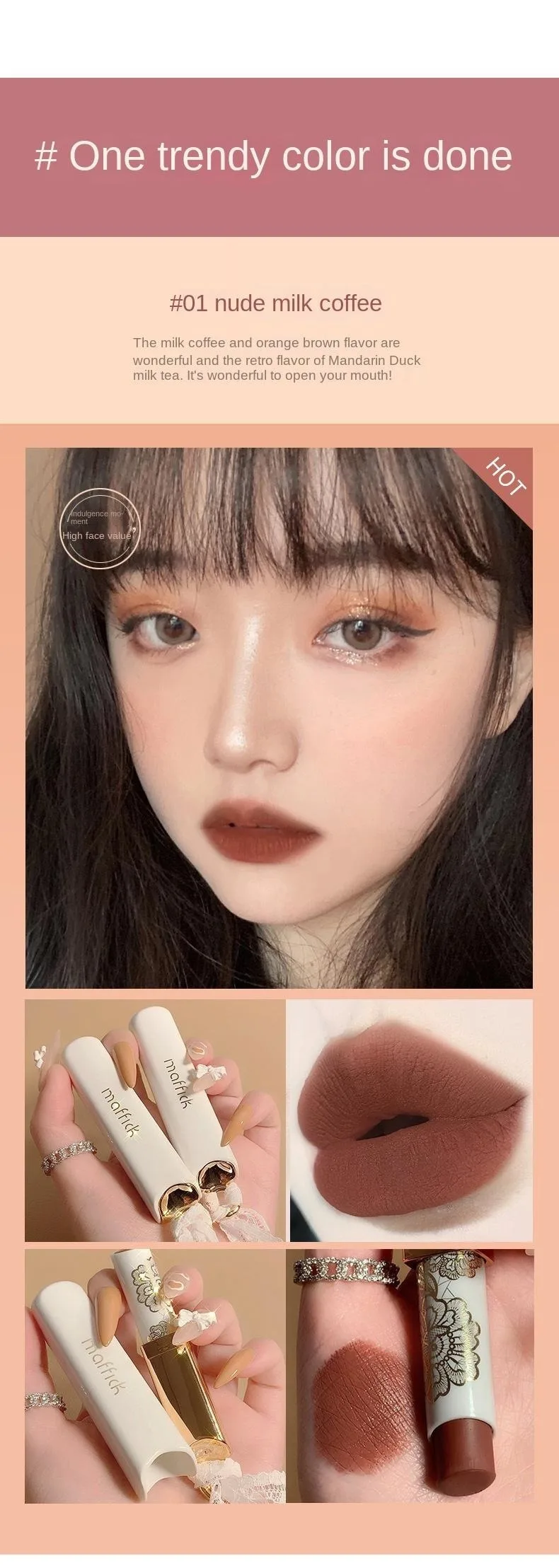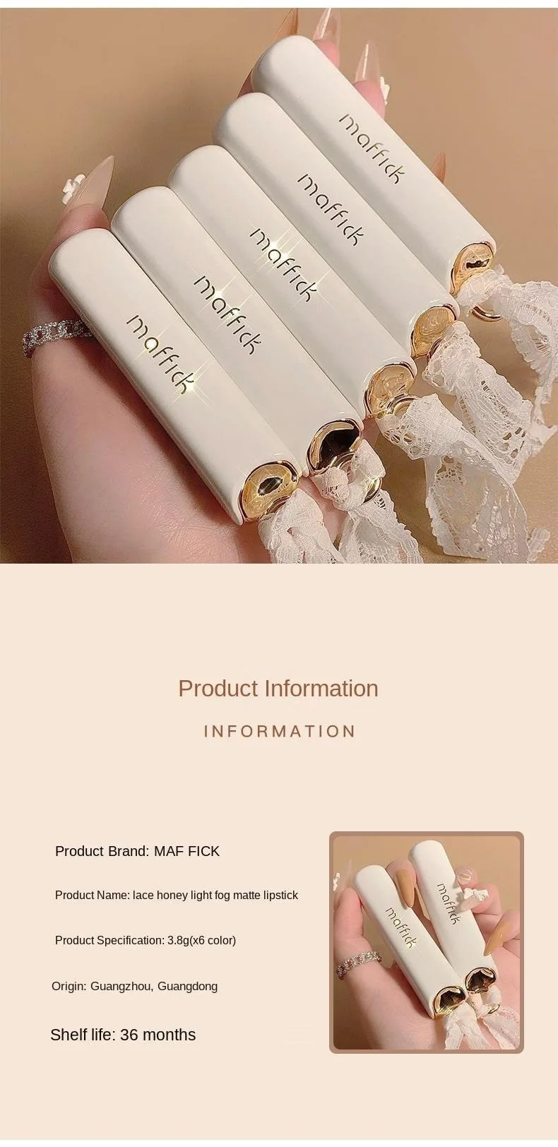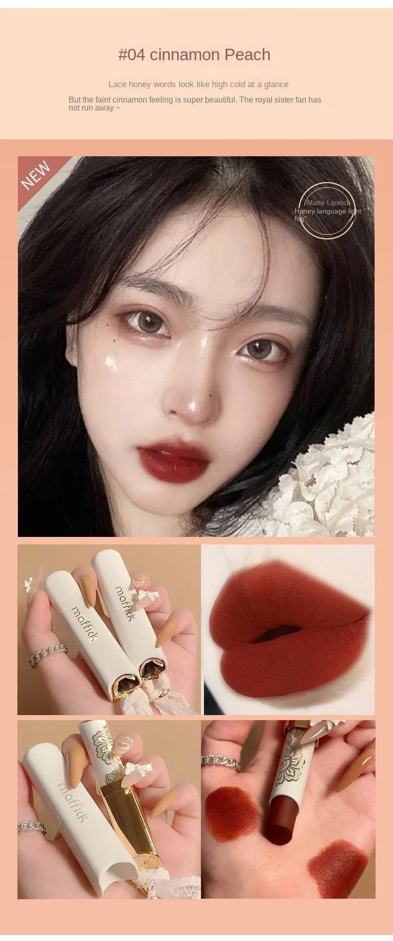 Rouge à Lèvres Lace Mat – Longue Tenue, Anti-Transfert, Velours Mat, Hydratant