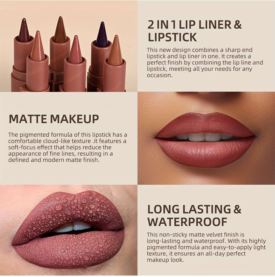 Lakerain 2-in-1 Matte Lip Liner & Lipstick - Waterproof, Sweatproof, Smooth Application for All Skin Types