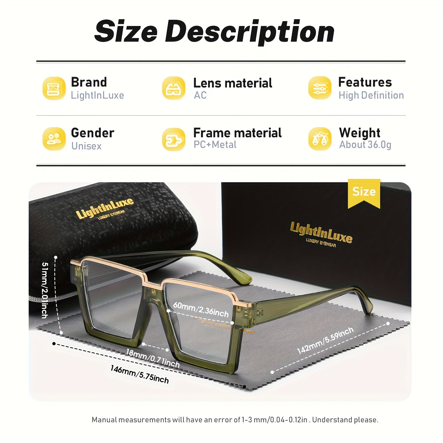 Lightinluxe Unisex Fashion Semi-Rimless Transparent Eyewear, Casual Square Clear Eyeglasses