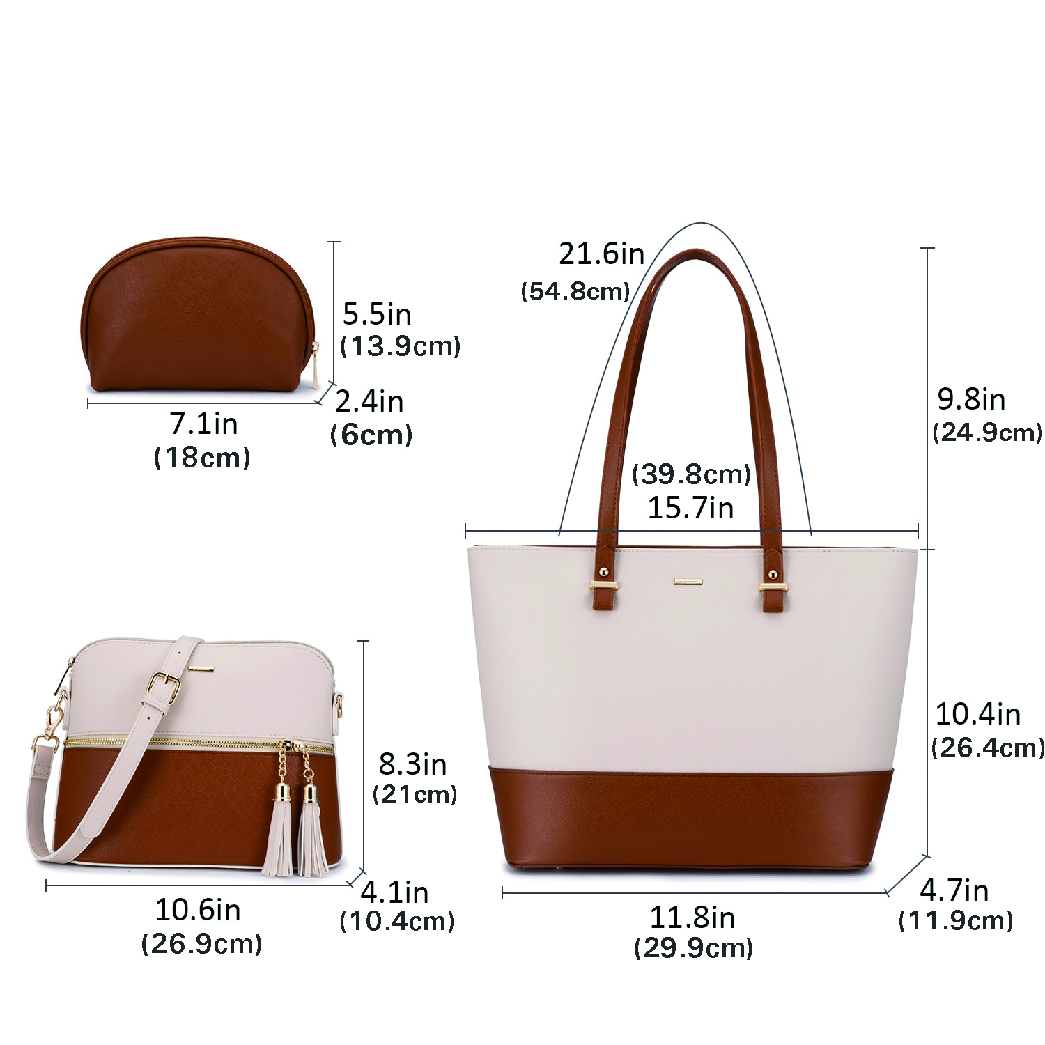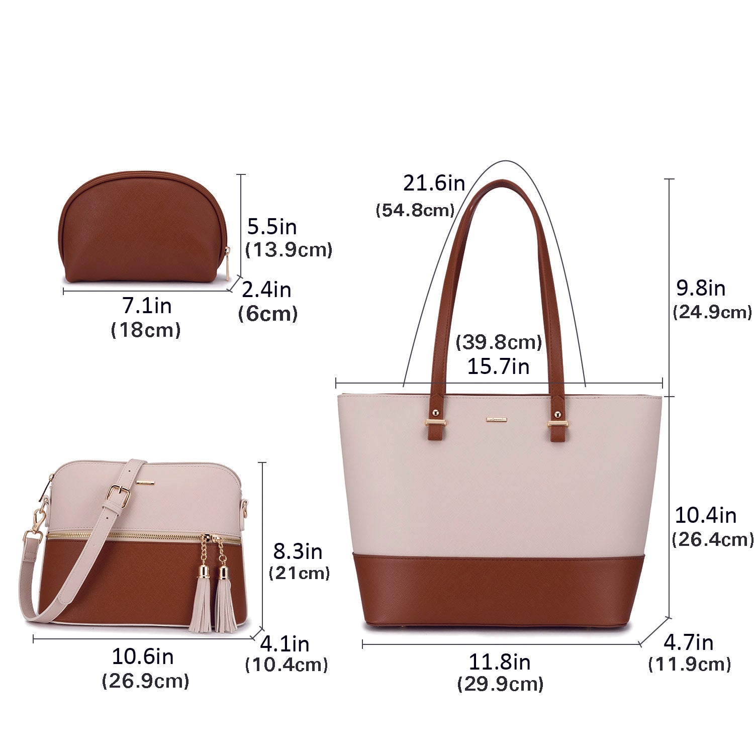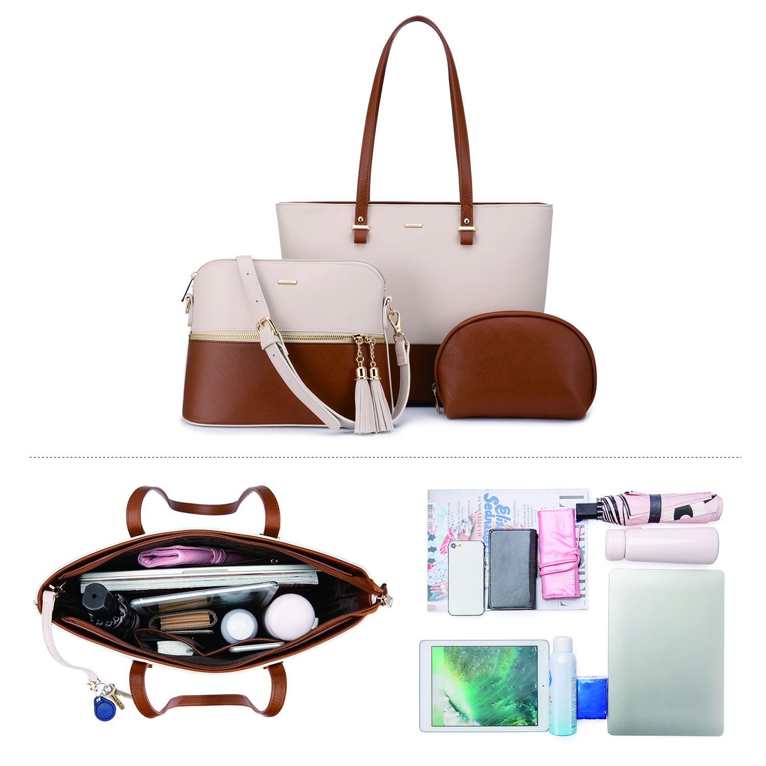 Set de Sacs à Main Femme– Grand Sac à Main Élégant, Sac à Épaule et Shopper, Set de 3 Pièces, Idéal comme Cadeau pour Femme, Bureau, Université ou Voyages