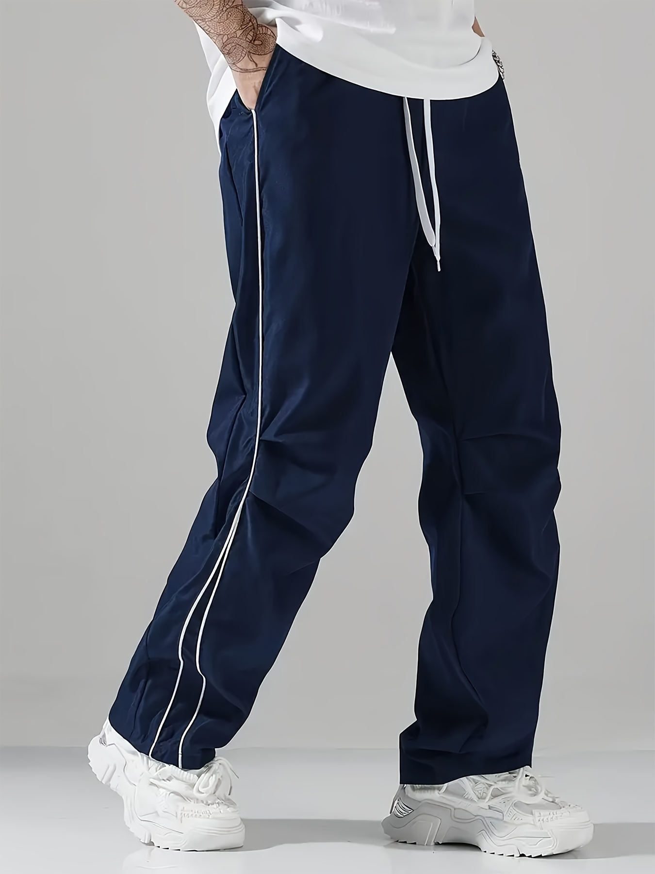 Jogging Homme Toutes Saisons – Coupe Ample, Pantalon Non-Extensible avec Bandes Latérales, Coupe Droite
