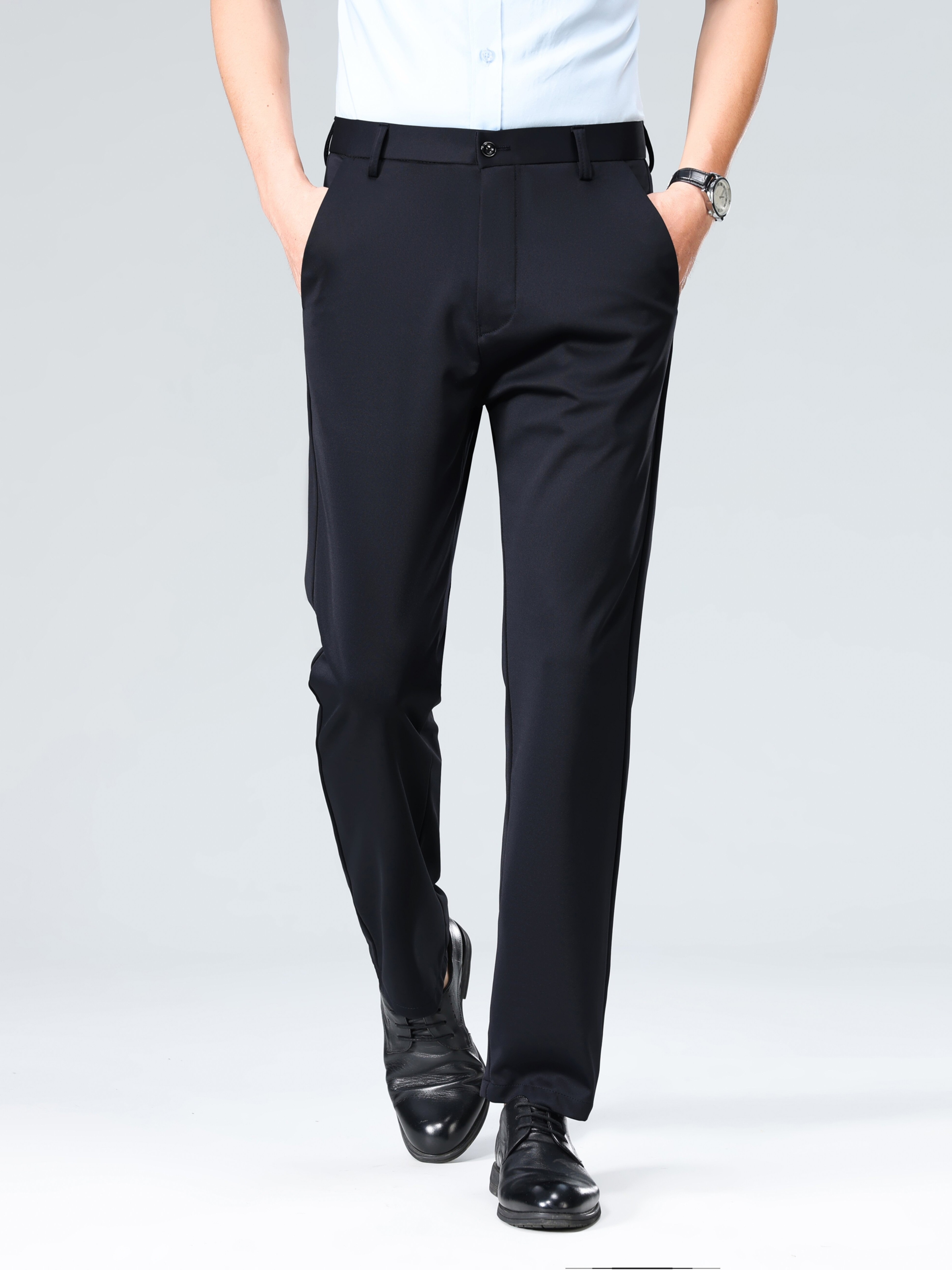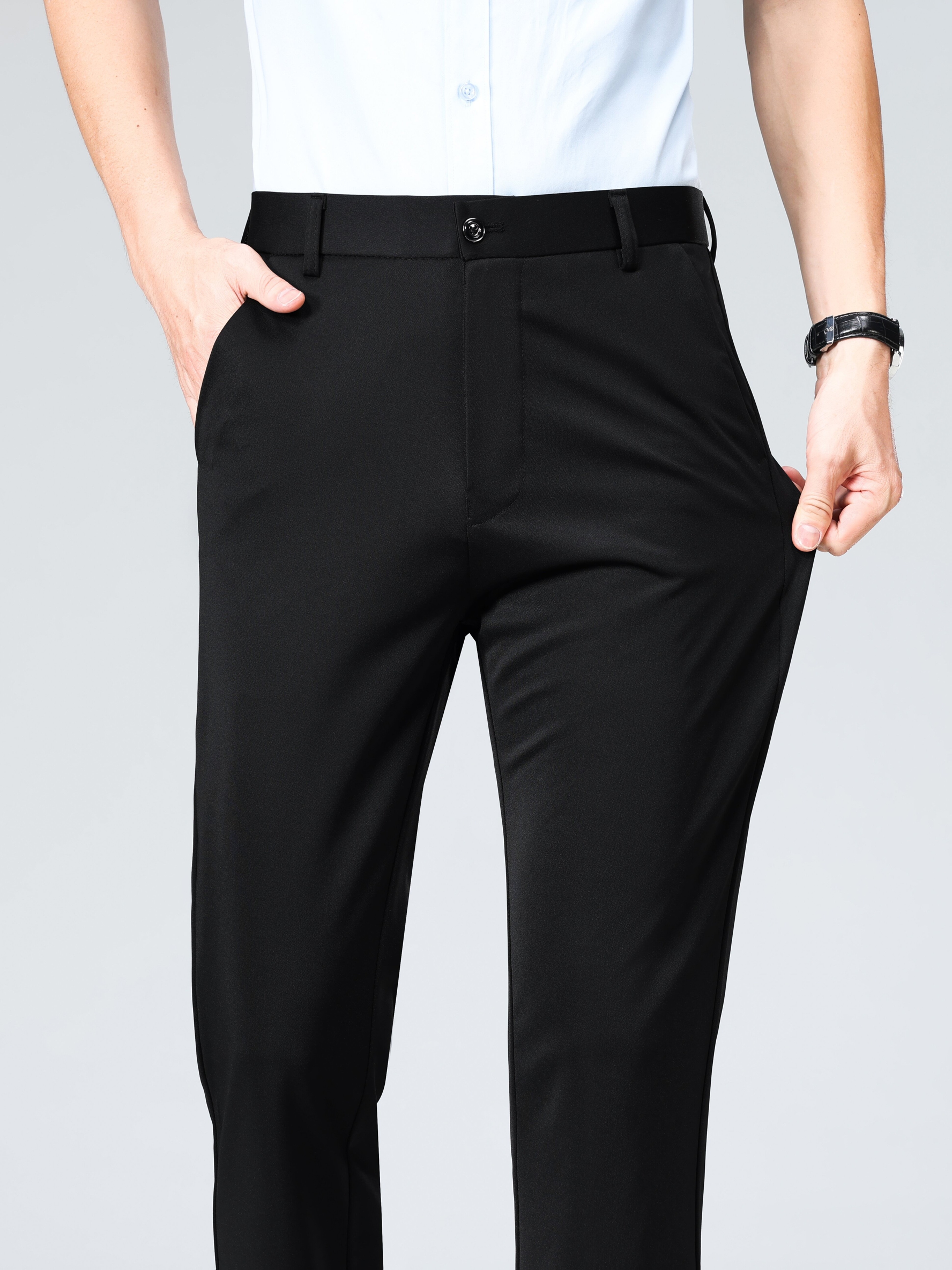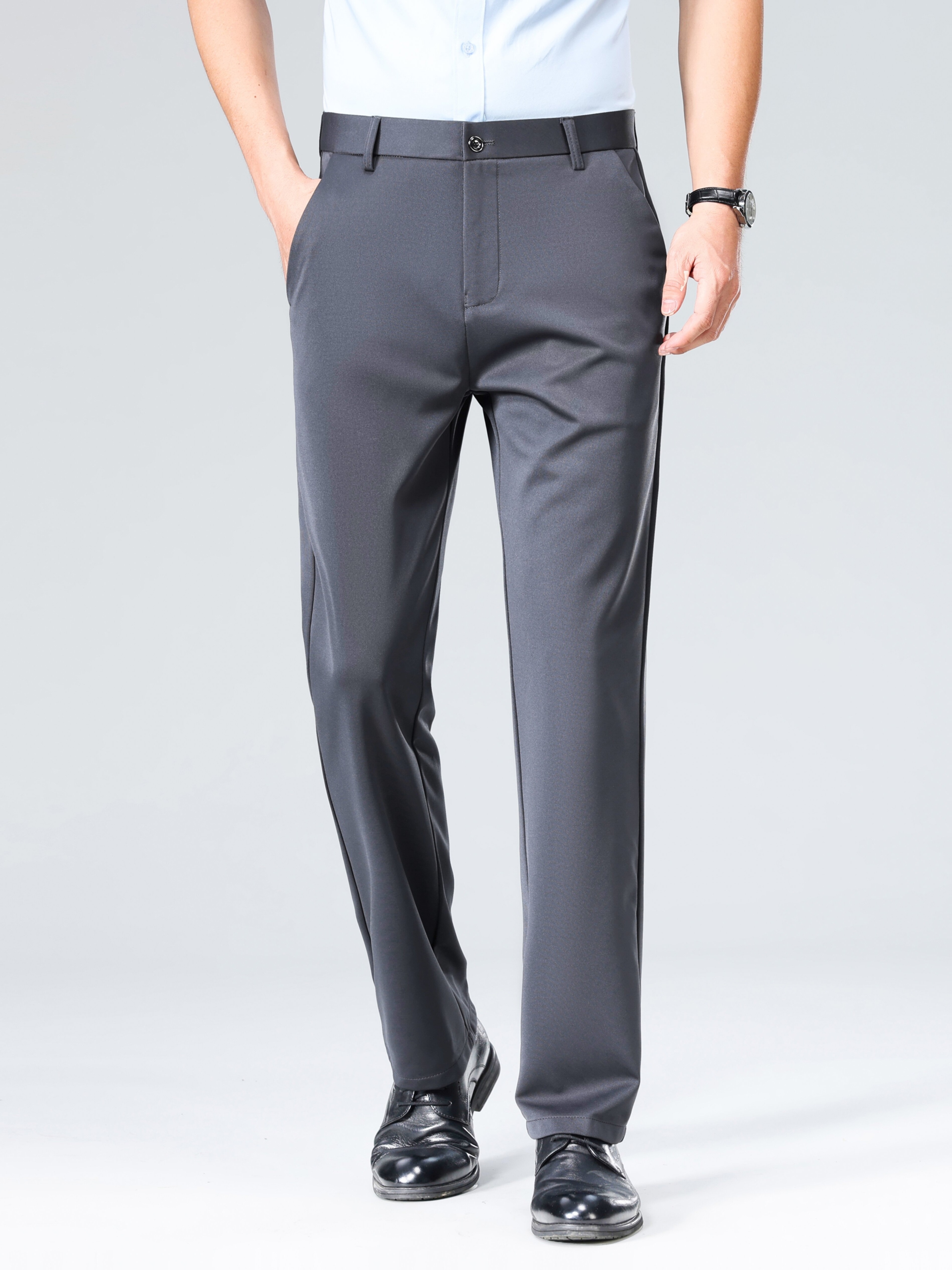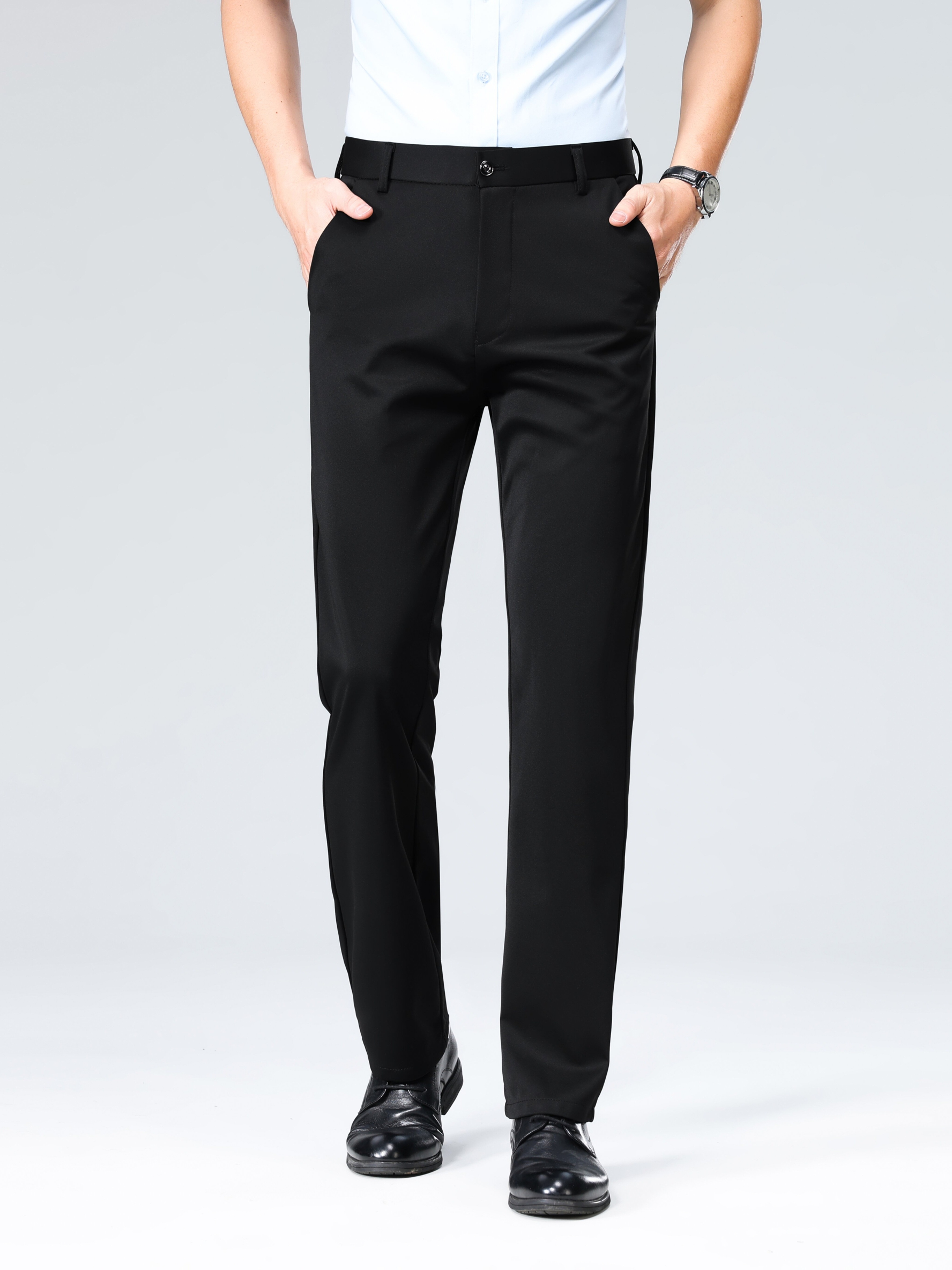 Pantalon habillé business pour homme – taille élastique, coupe droite, lavable en machine, fermeture à boutons, idéal bureau, réunions et événements semi-formels