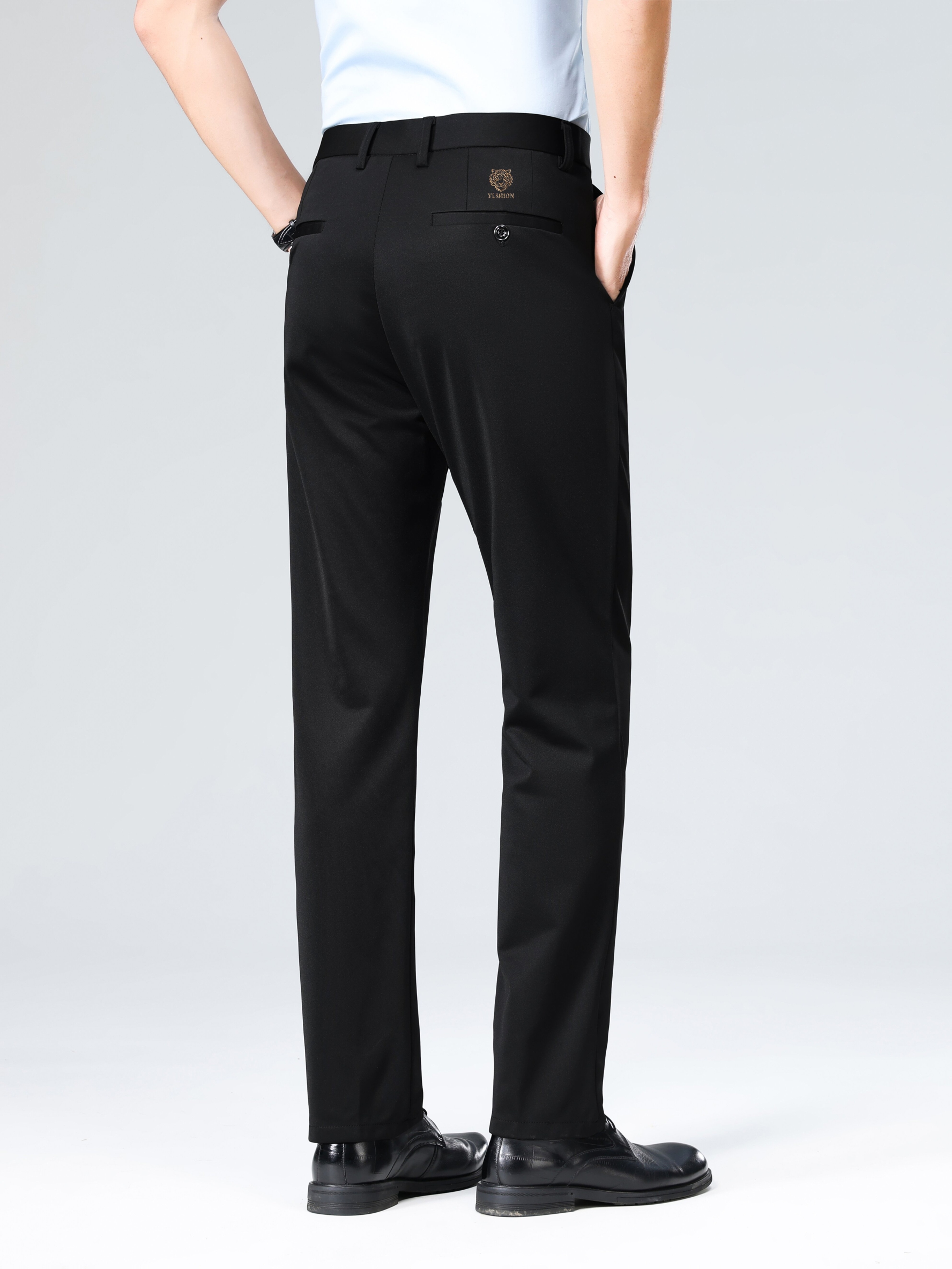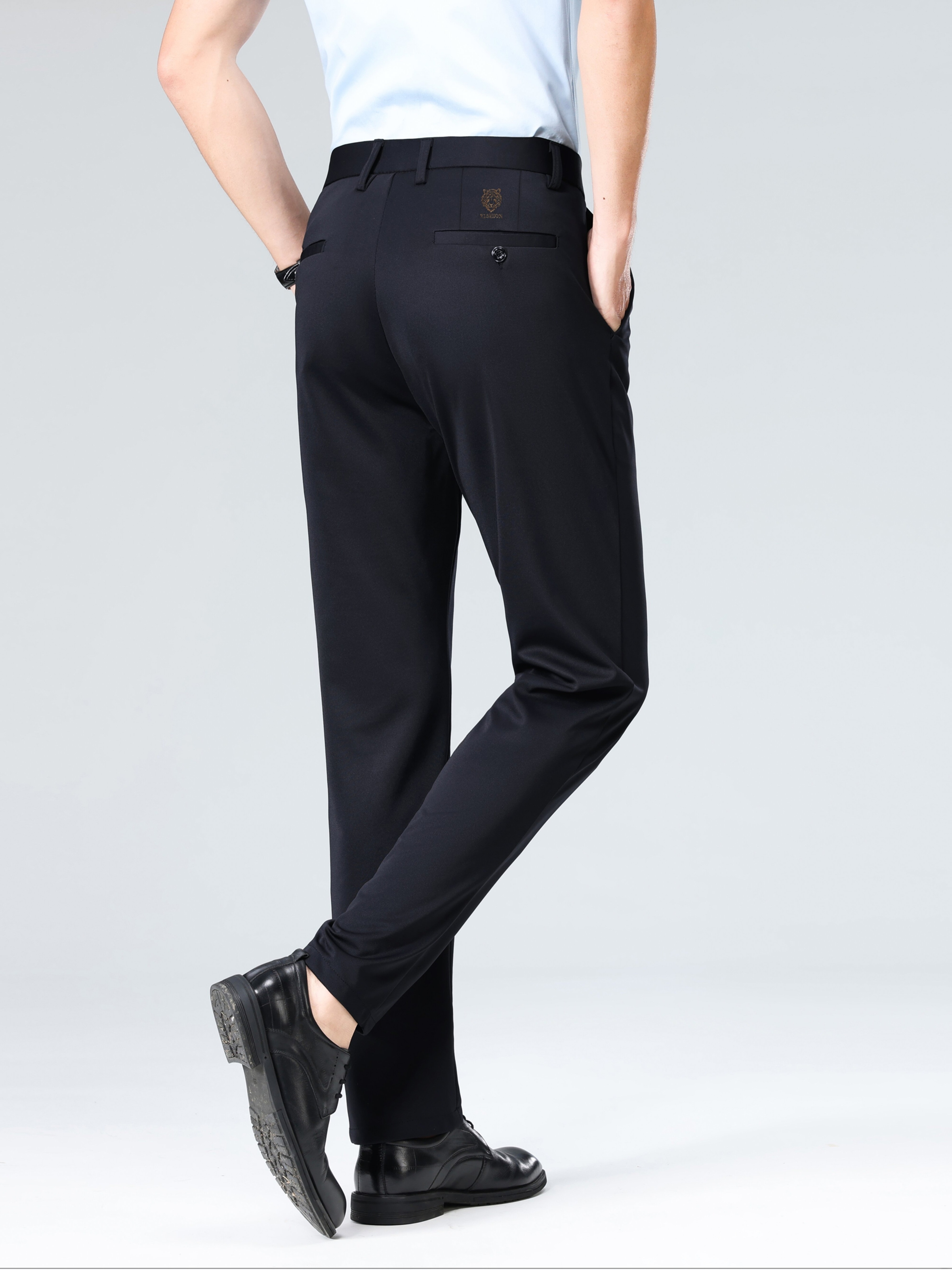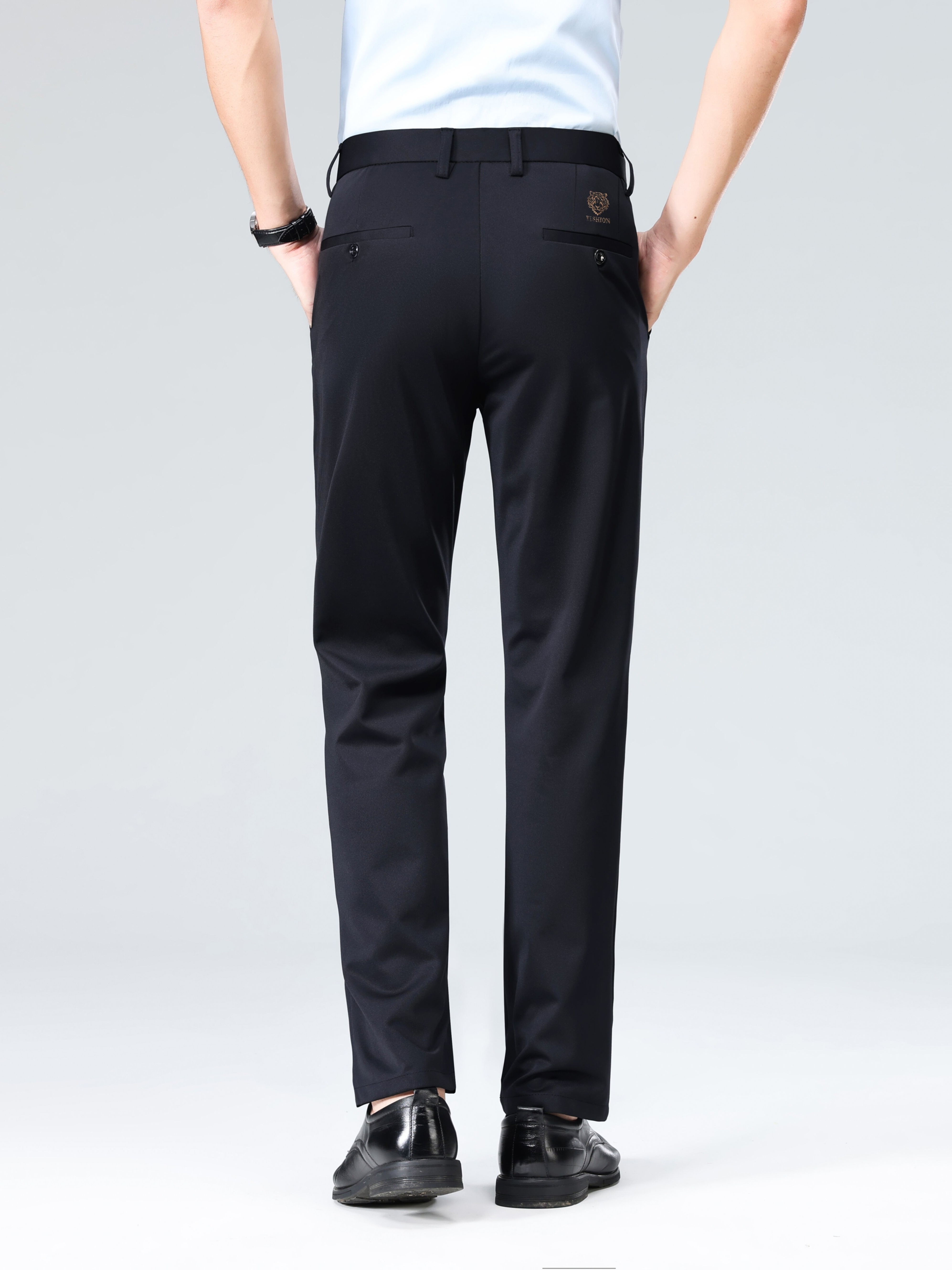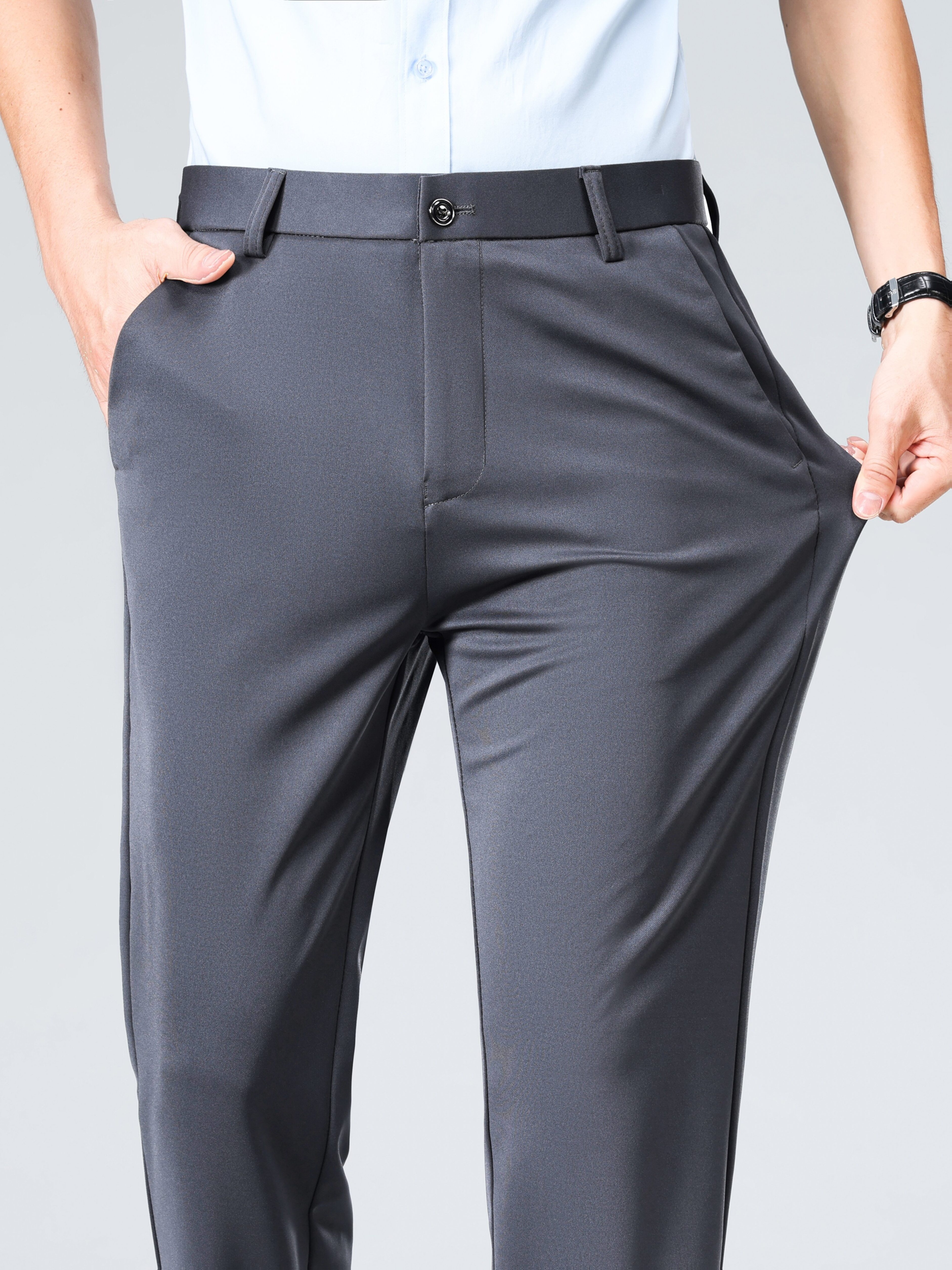 Pantalon habillé business pour homme – taille élastique, coupe droite, lavable en machine, fermeture à boutons, idéal bureau, réunions et événements semi-formels