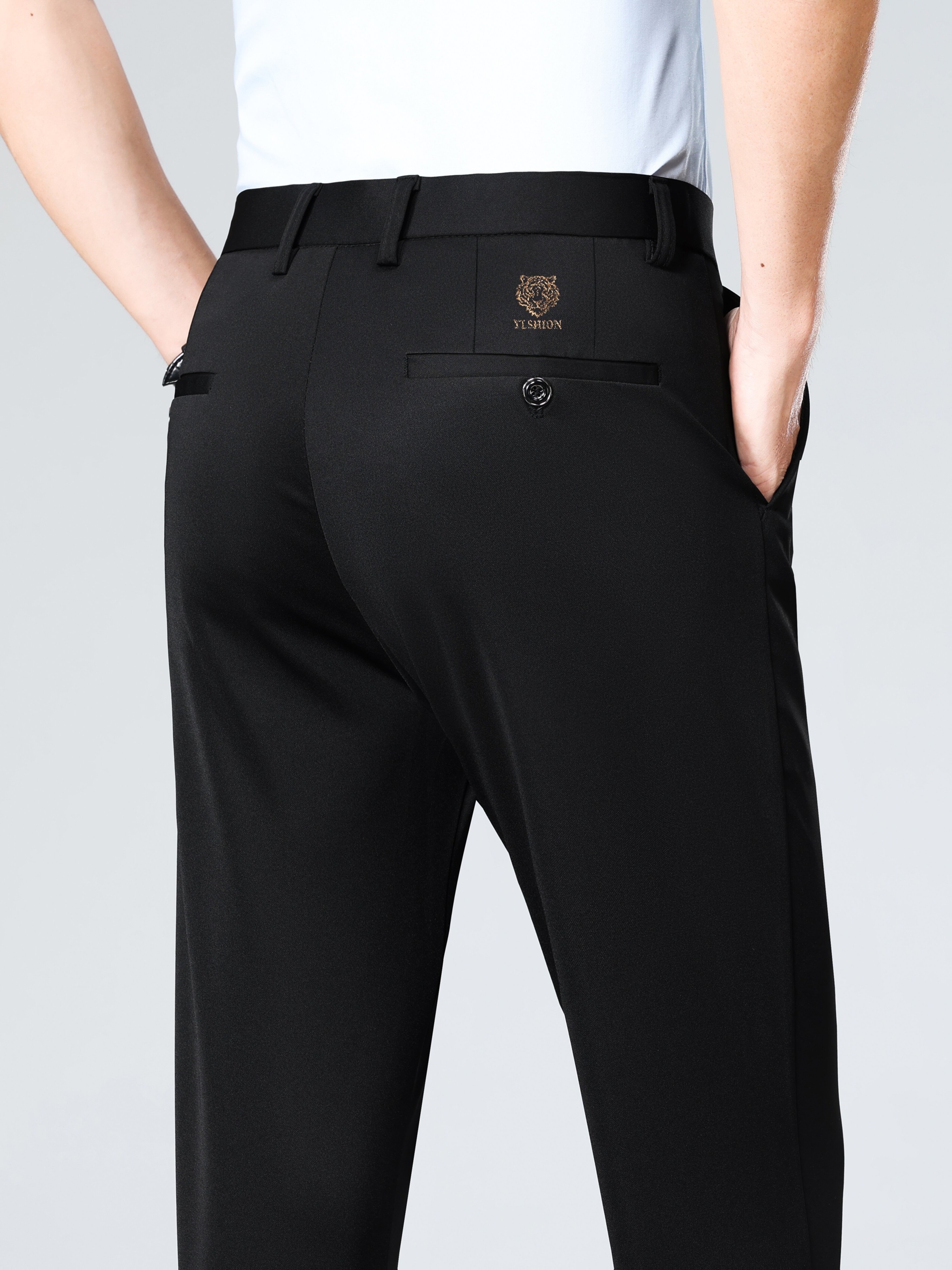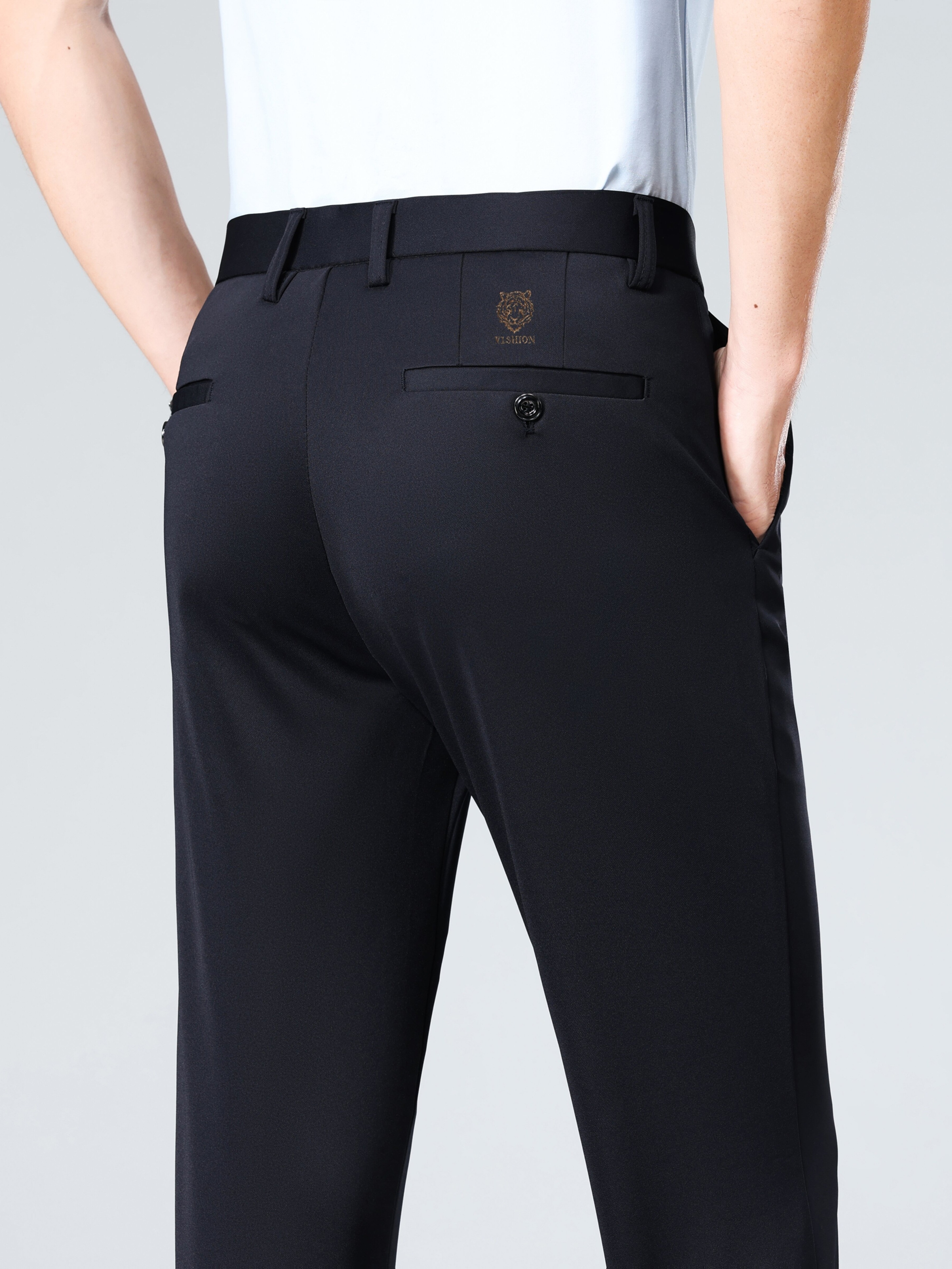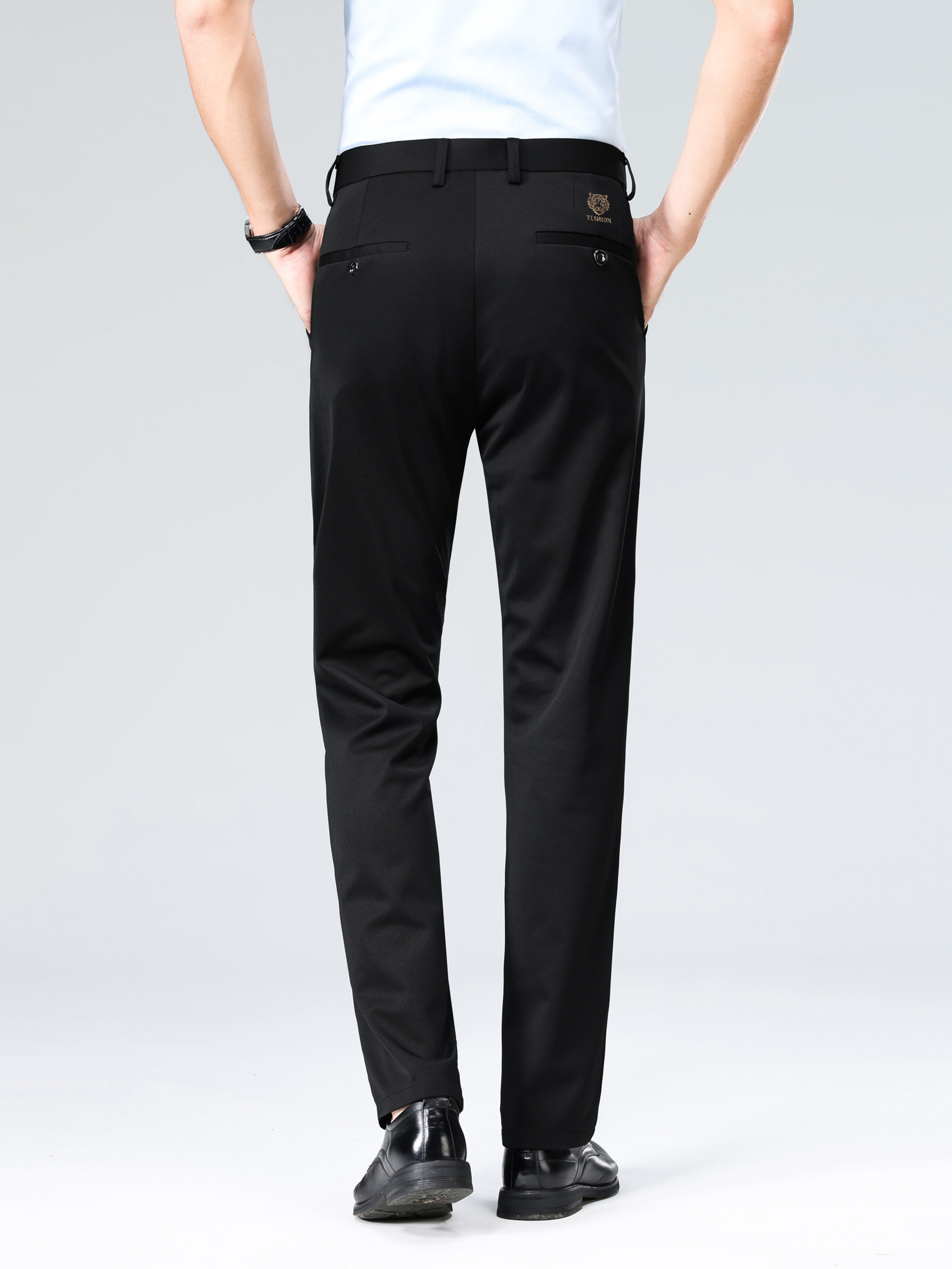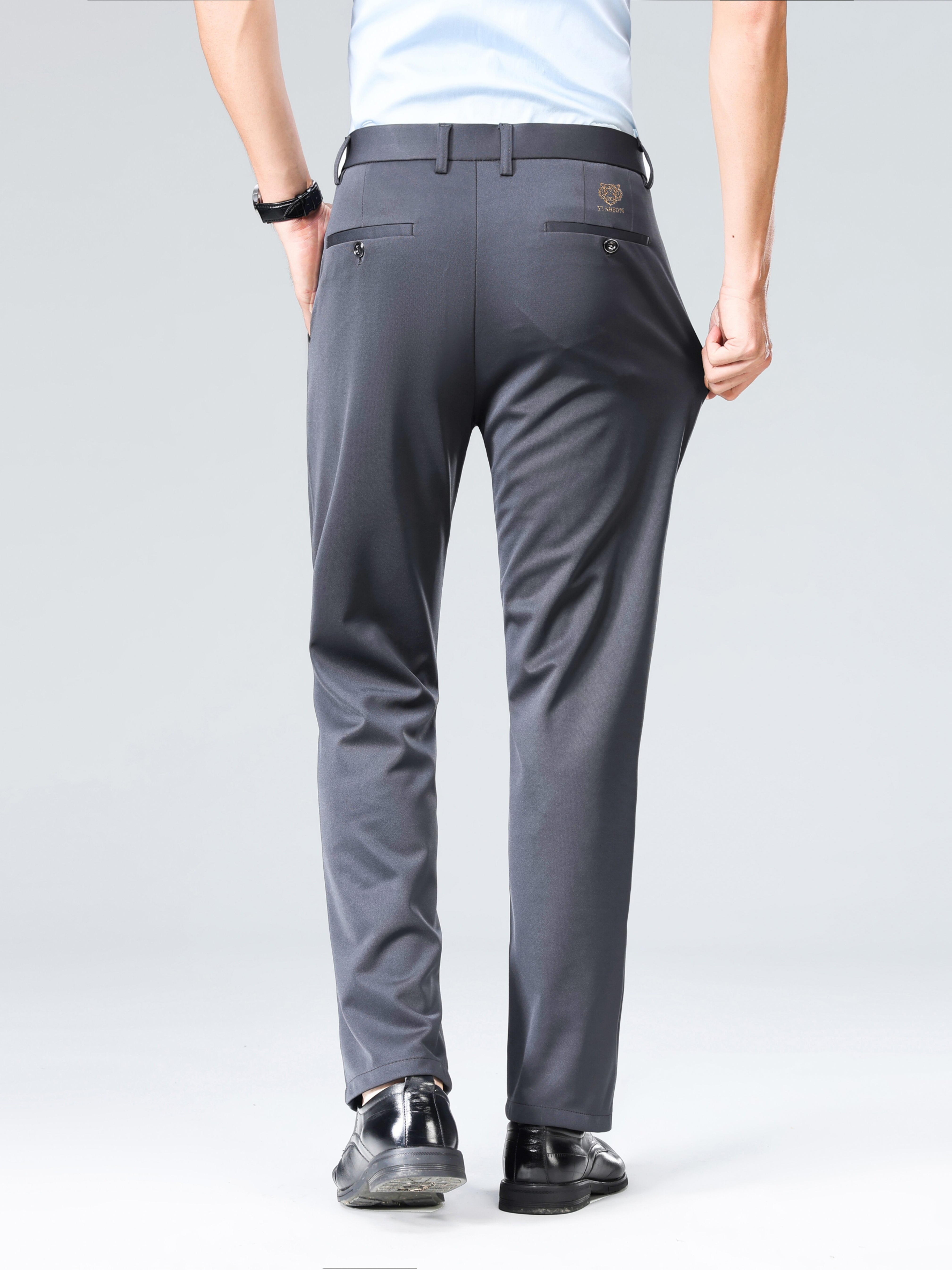 Pantalon habillé business pour homme – taille élastique, coupe droite, lavable en machine, fermeture à boutons, idéal bureau, réunions et événements semi-formels