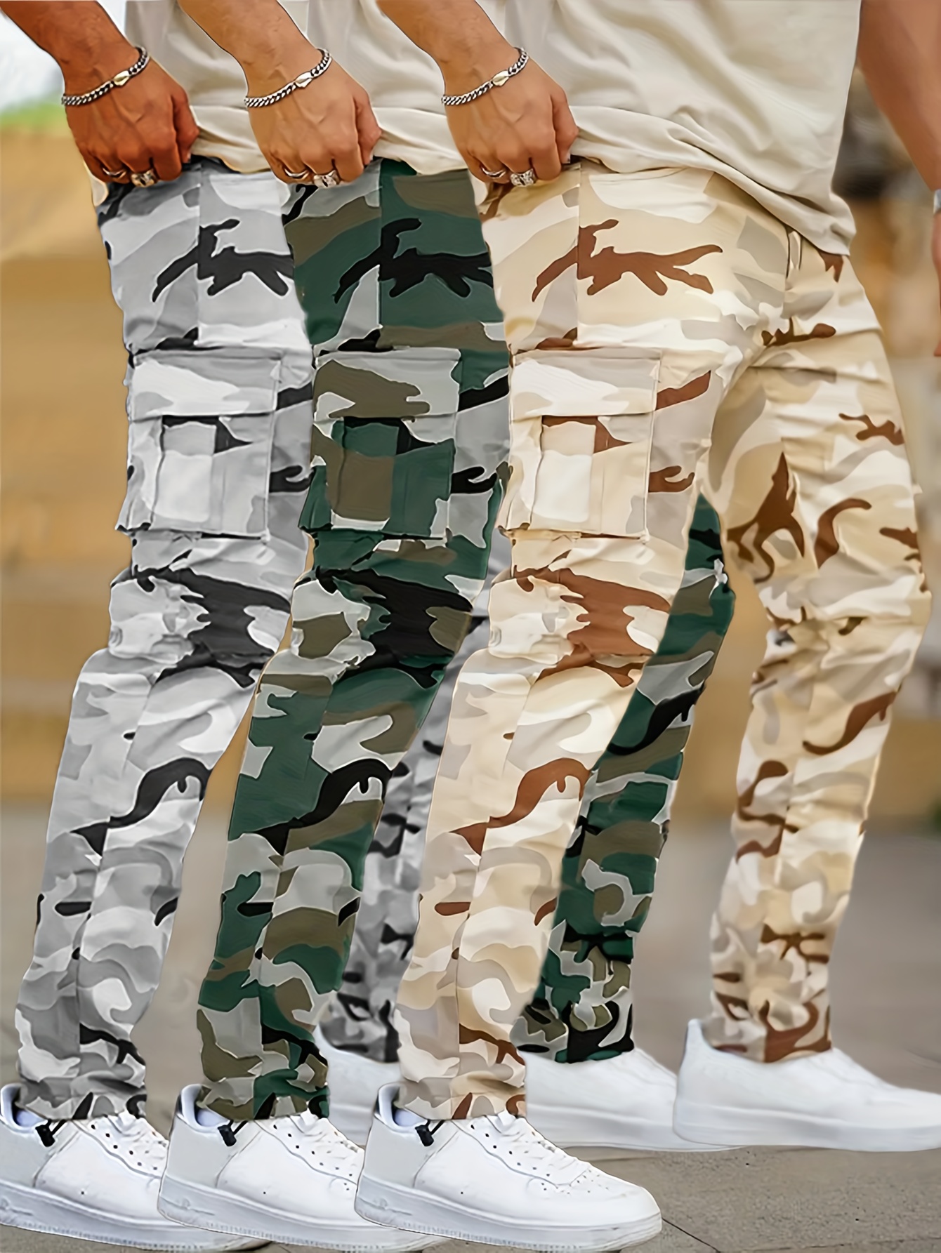 Pantalon cargo camouflage pour homme – poches à rabat, taille à cordon, couleurs vert/marron/beige/gris/noir/blanc, idéal chasse, militaire et tenue décontractée