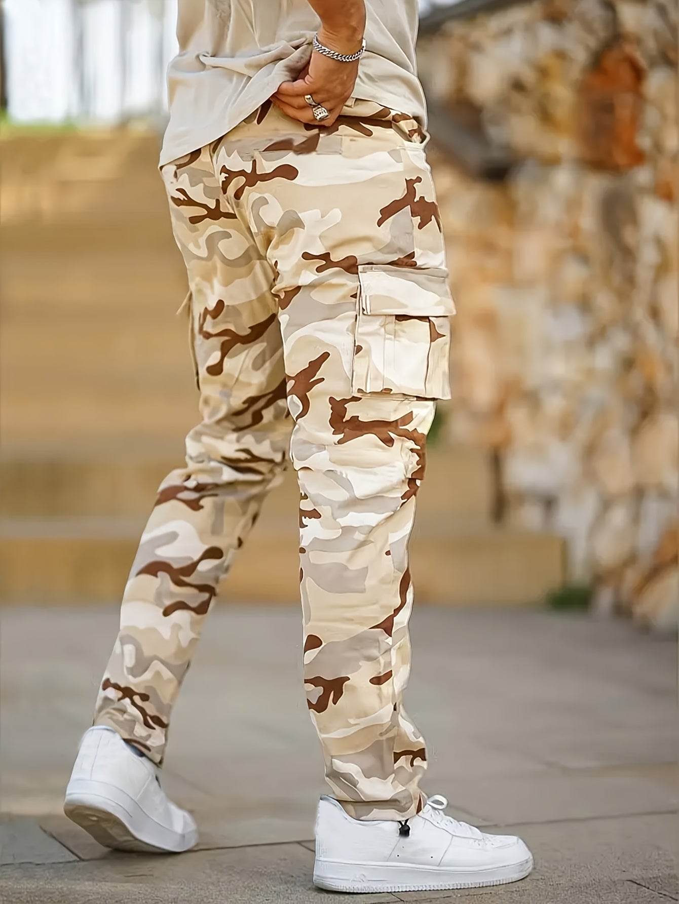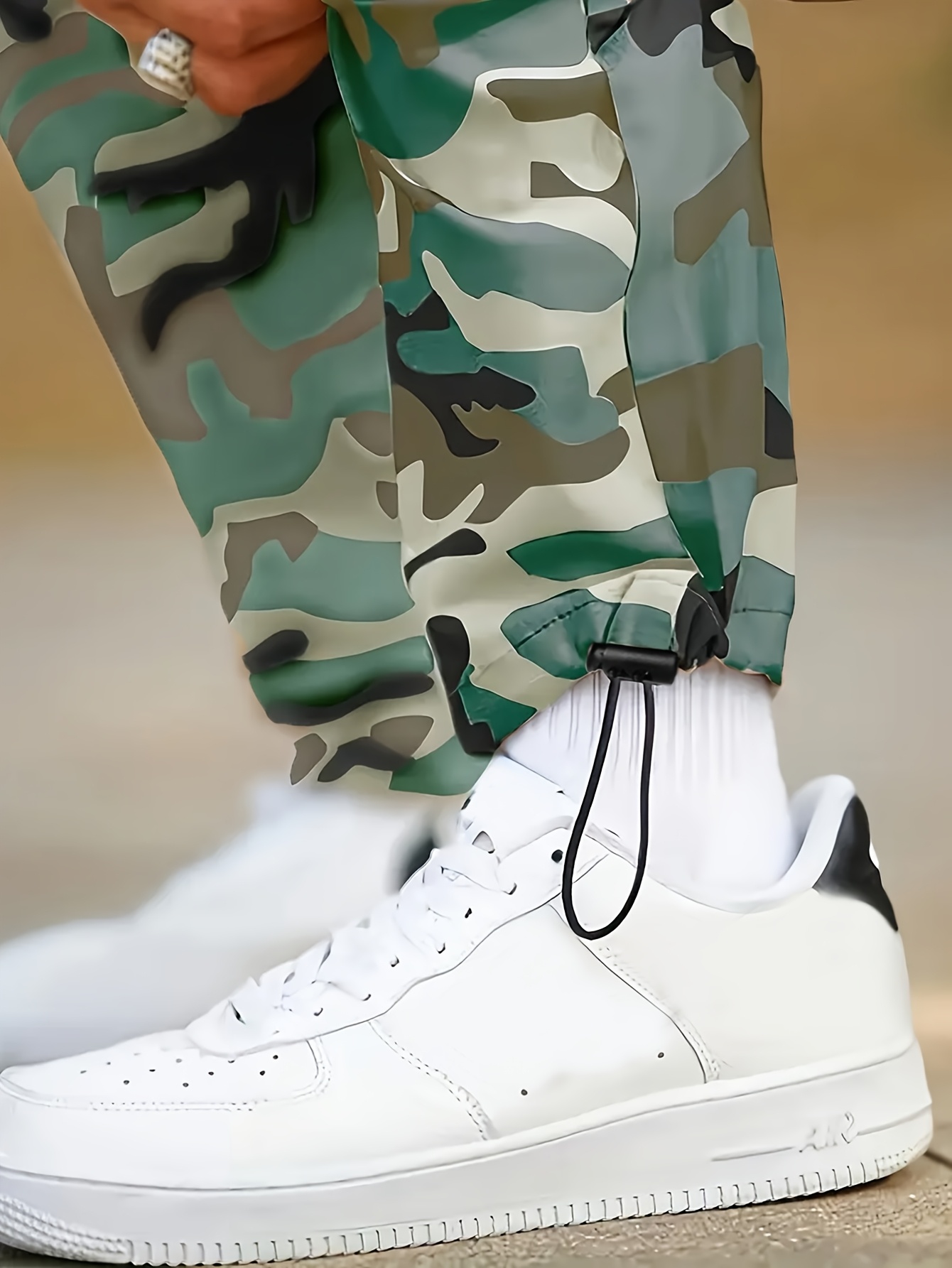 Pantalon Cargo Homme Camouflage – Coupe Ample, Multi-Poches, Taille à Cordon, Vert/Noir/Blanc