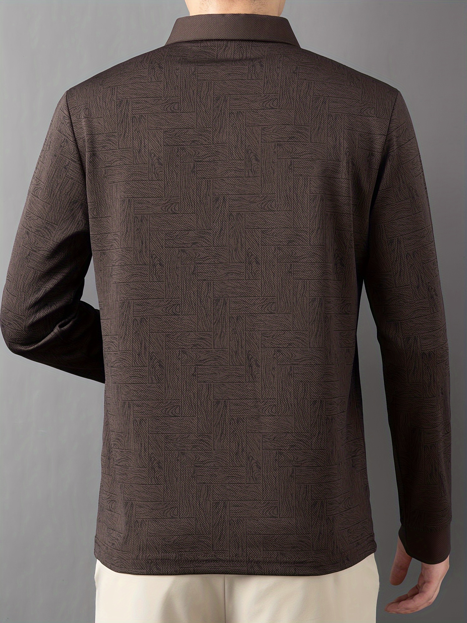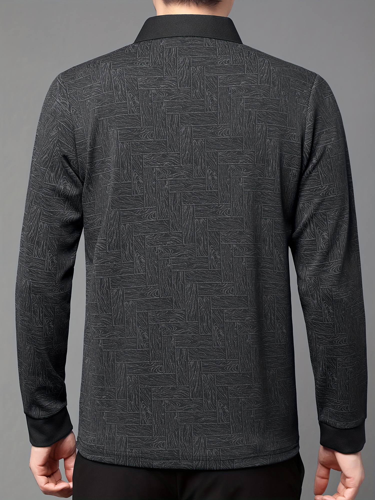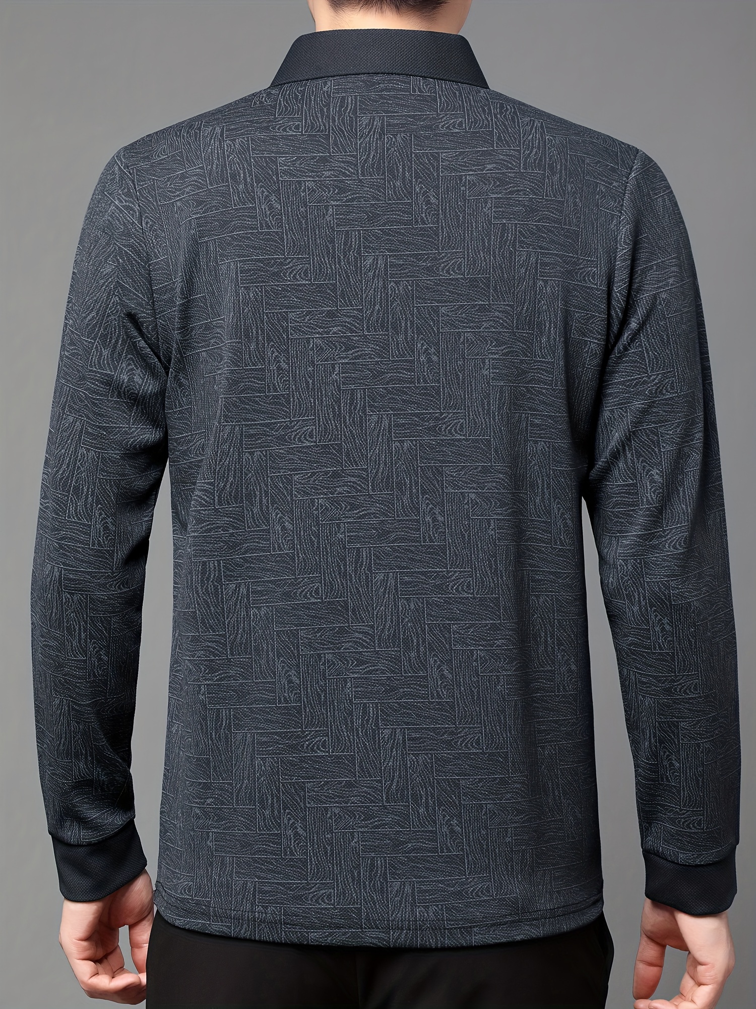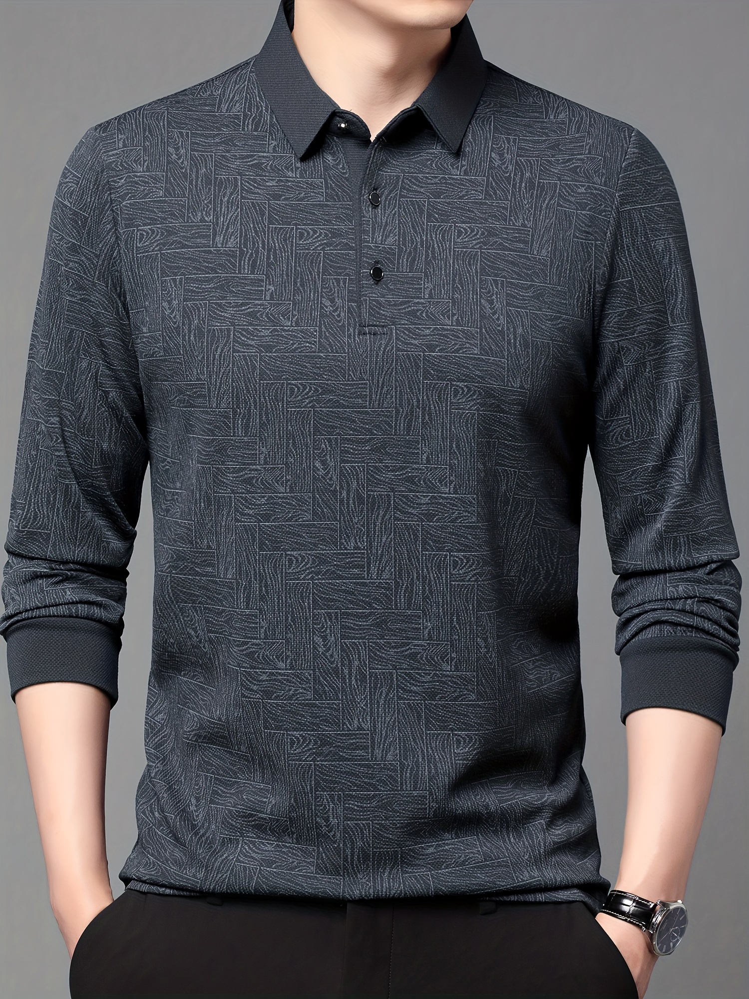 Men'S Geometric Mahjong Block Long Sleeve Polo Shirt - Casual & Stylish Business-Casual Lapel Collar, Polyester Blend, Perfect for Spring/Fall