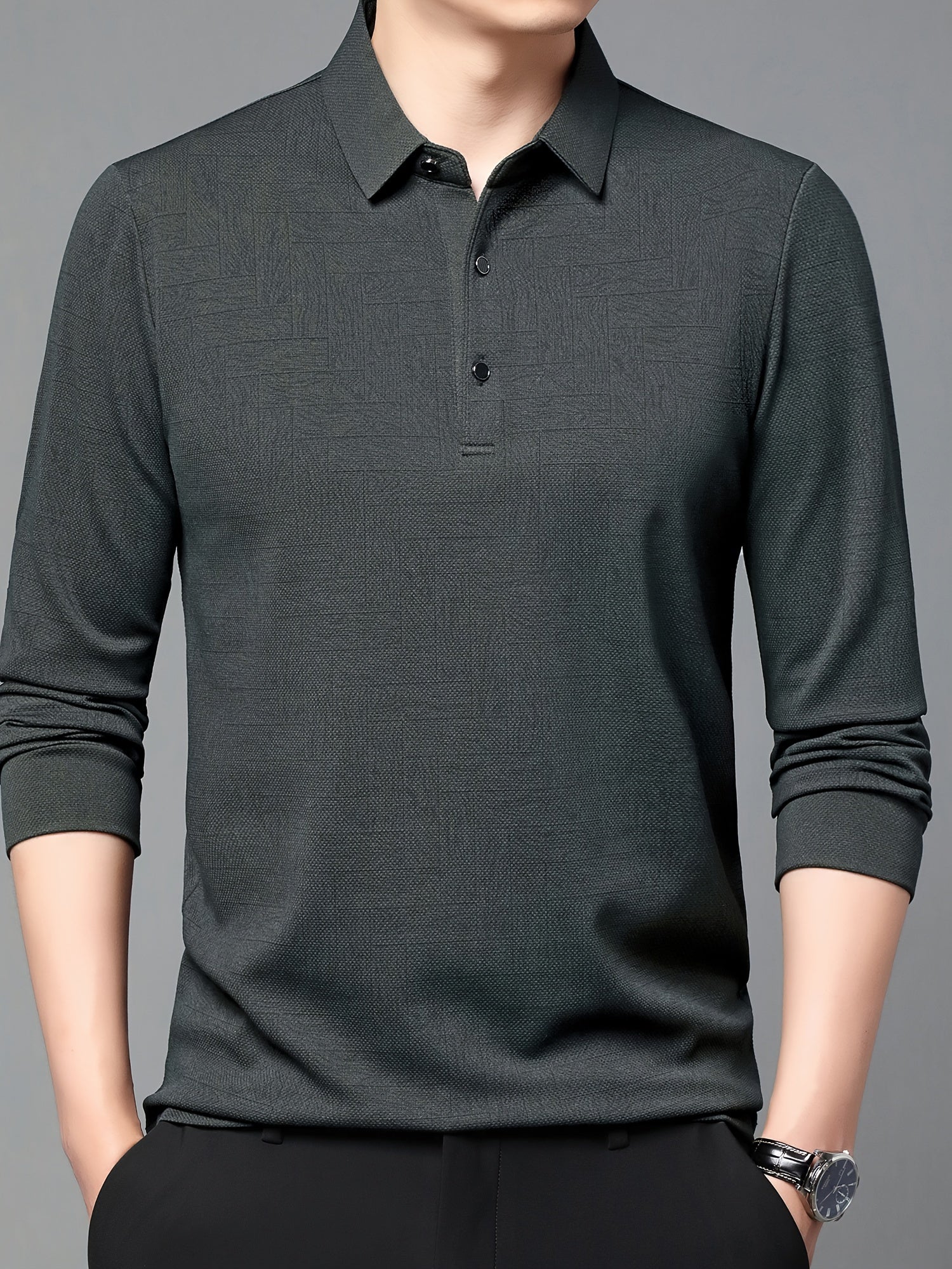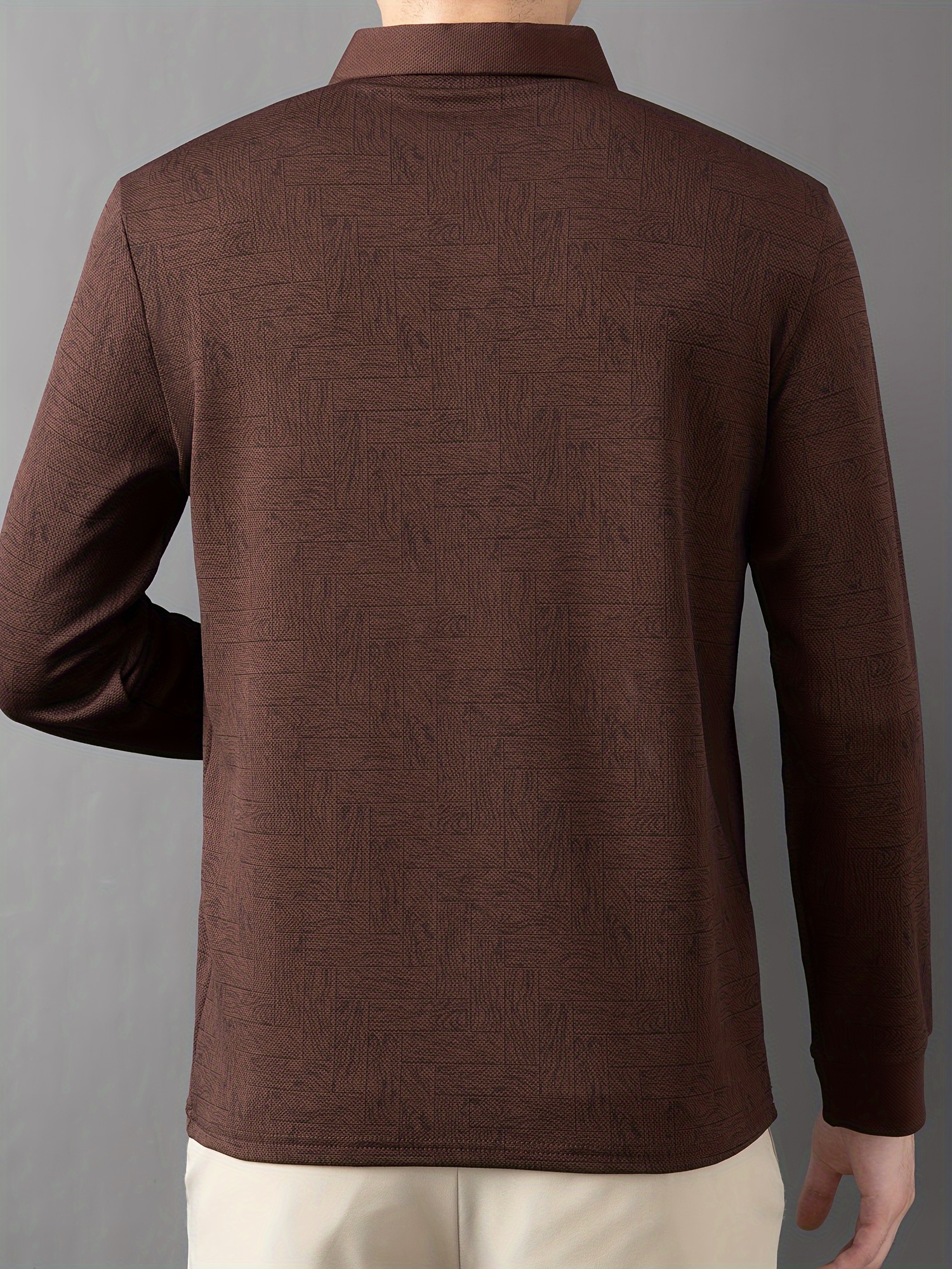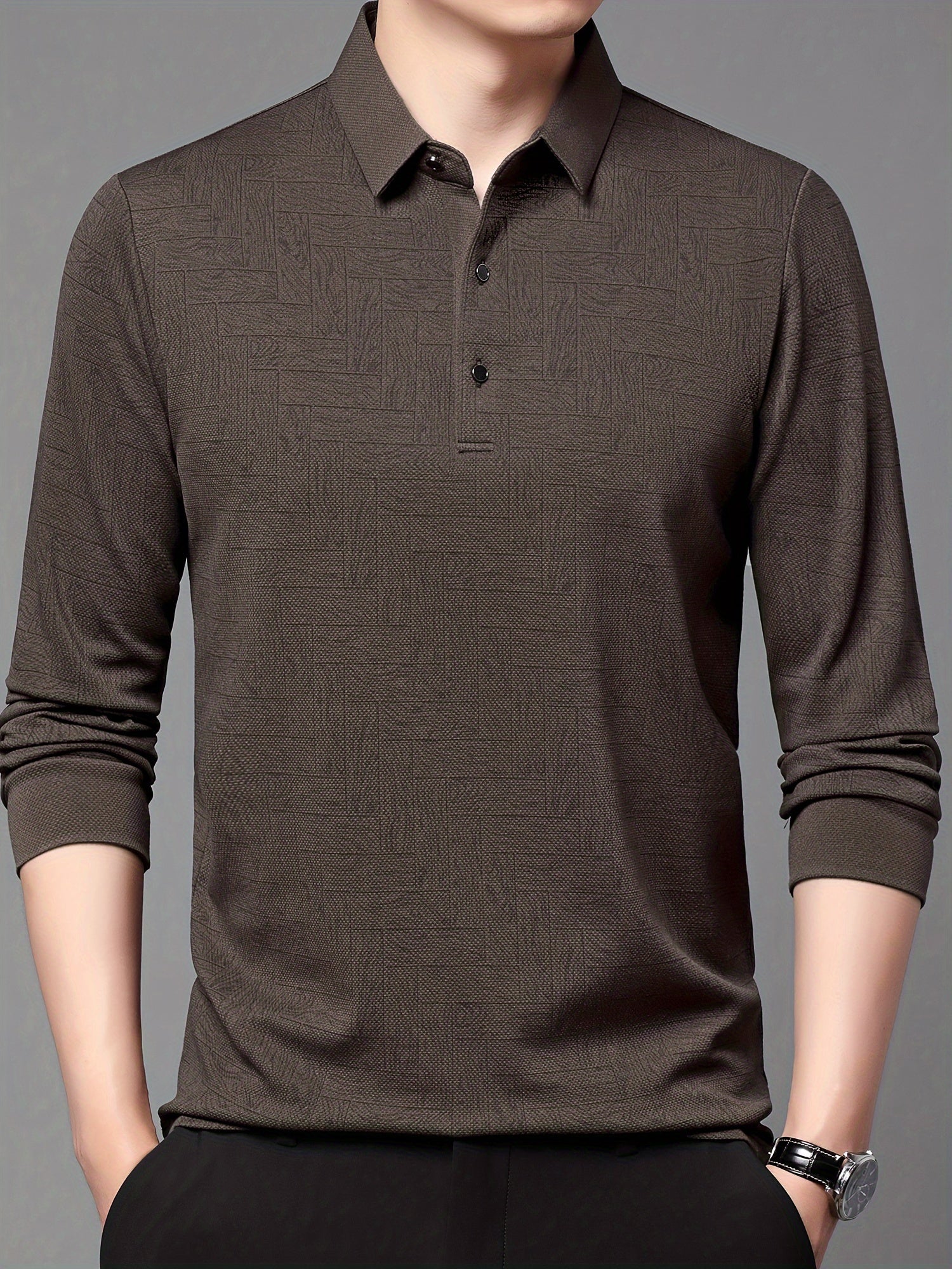 Men'S Geometric Mahjong Block Long Sleeve Polo Shirt - Casual & Stylish Business-Casual Lapel Collar, Polyester Blend, Perfect for Spring/Fall