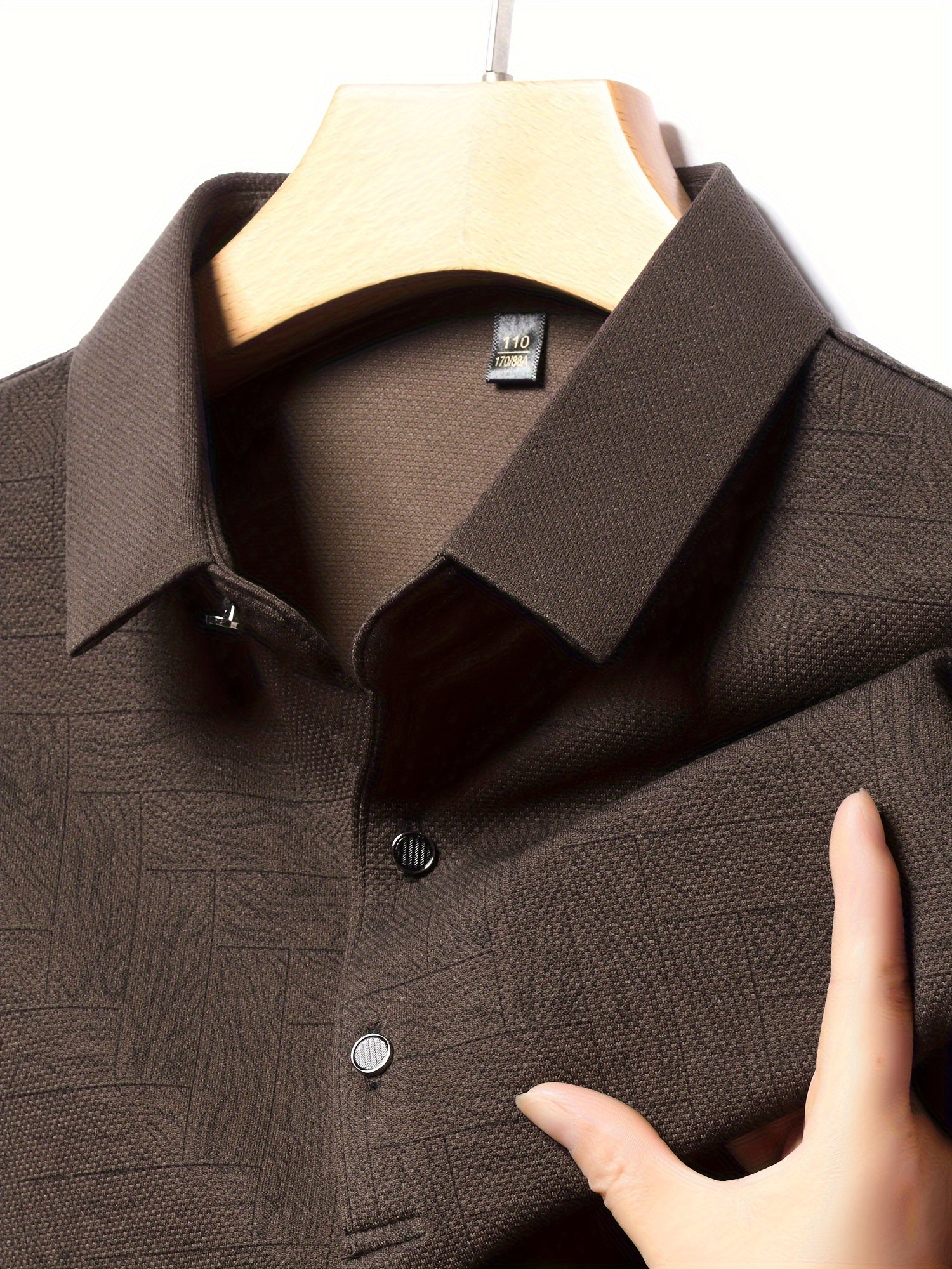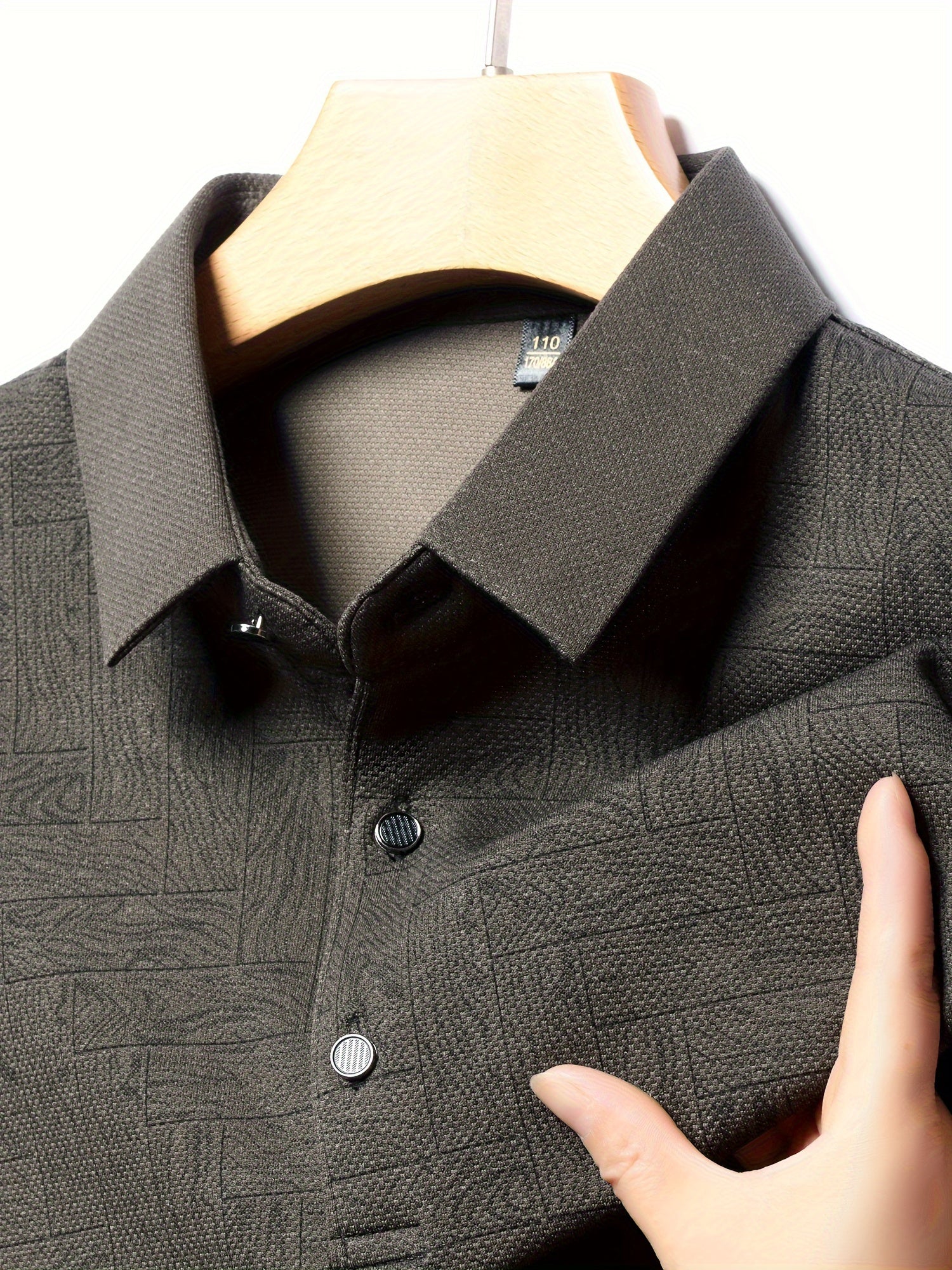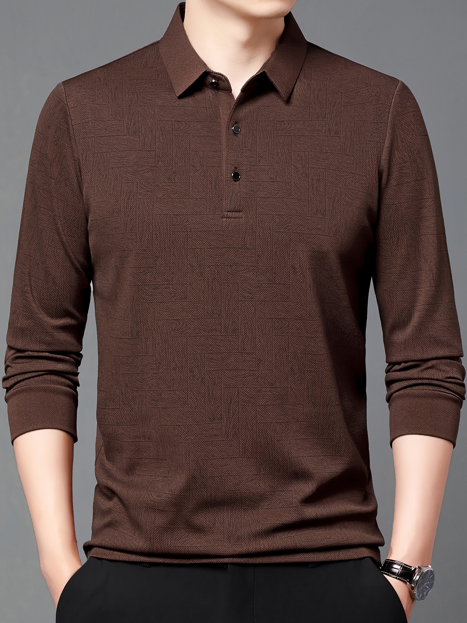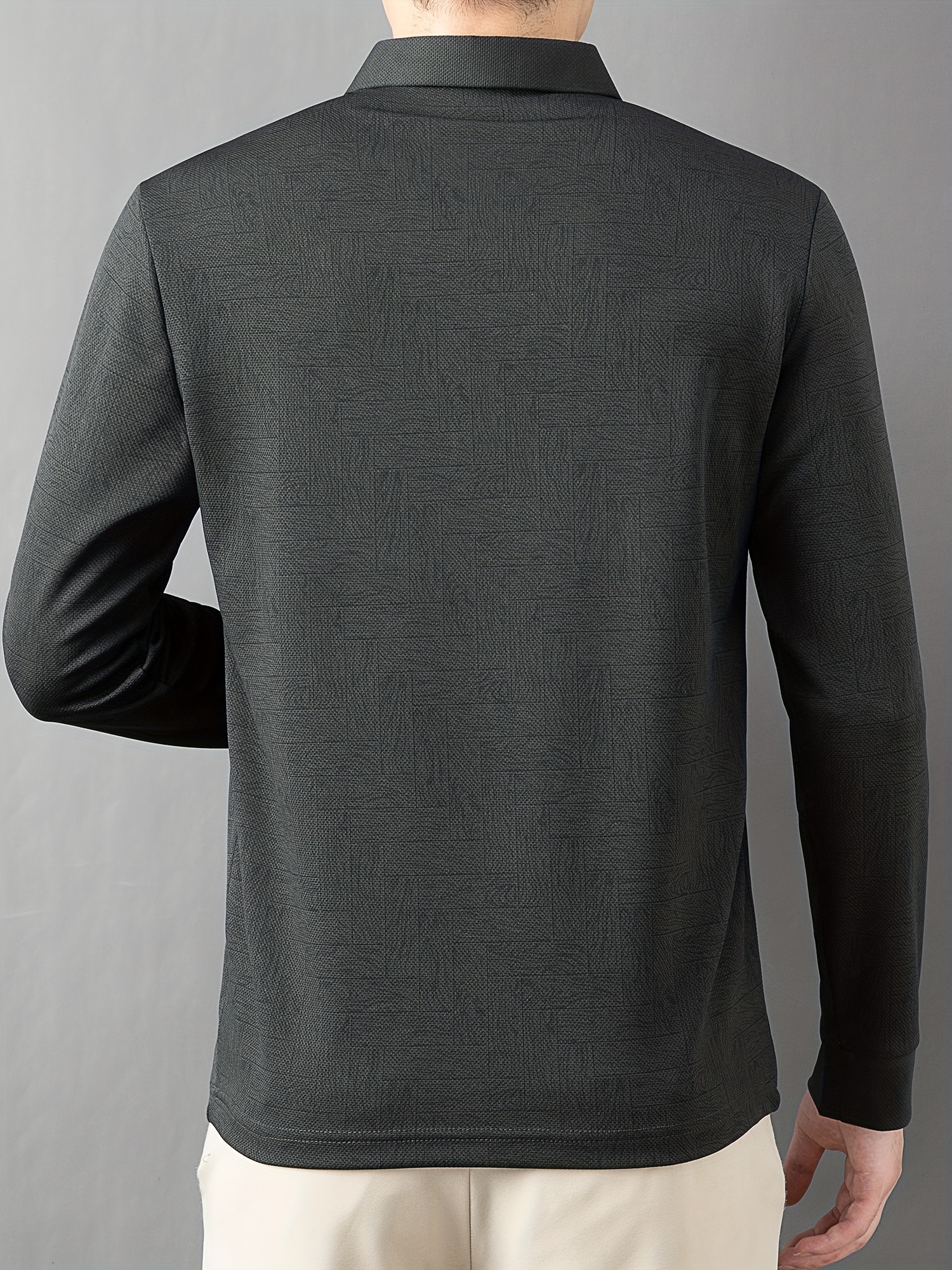 Men'S Geometric Mahjong Block Long Sleeve Polo Shirt - Casual & Stylish Business-Casual Lapel Collar, Polyester Blend, Perfect for Spring/Fall