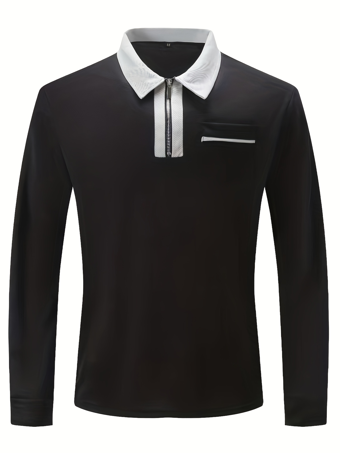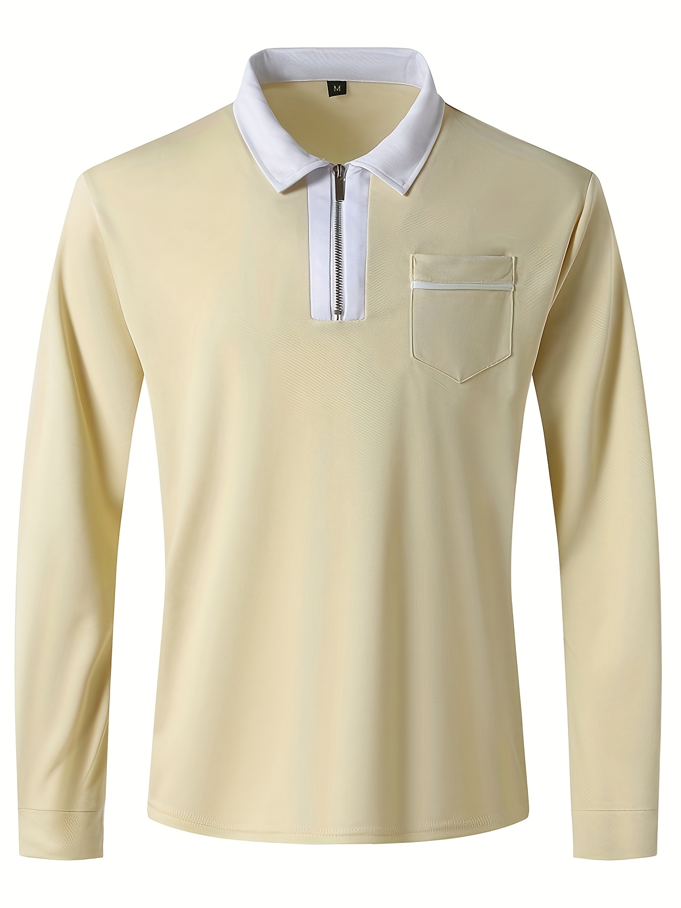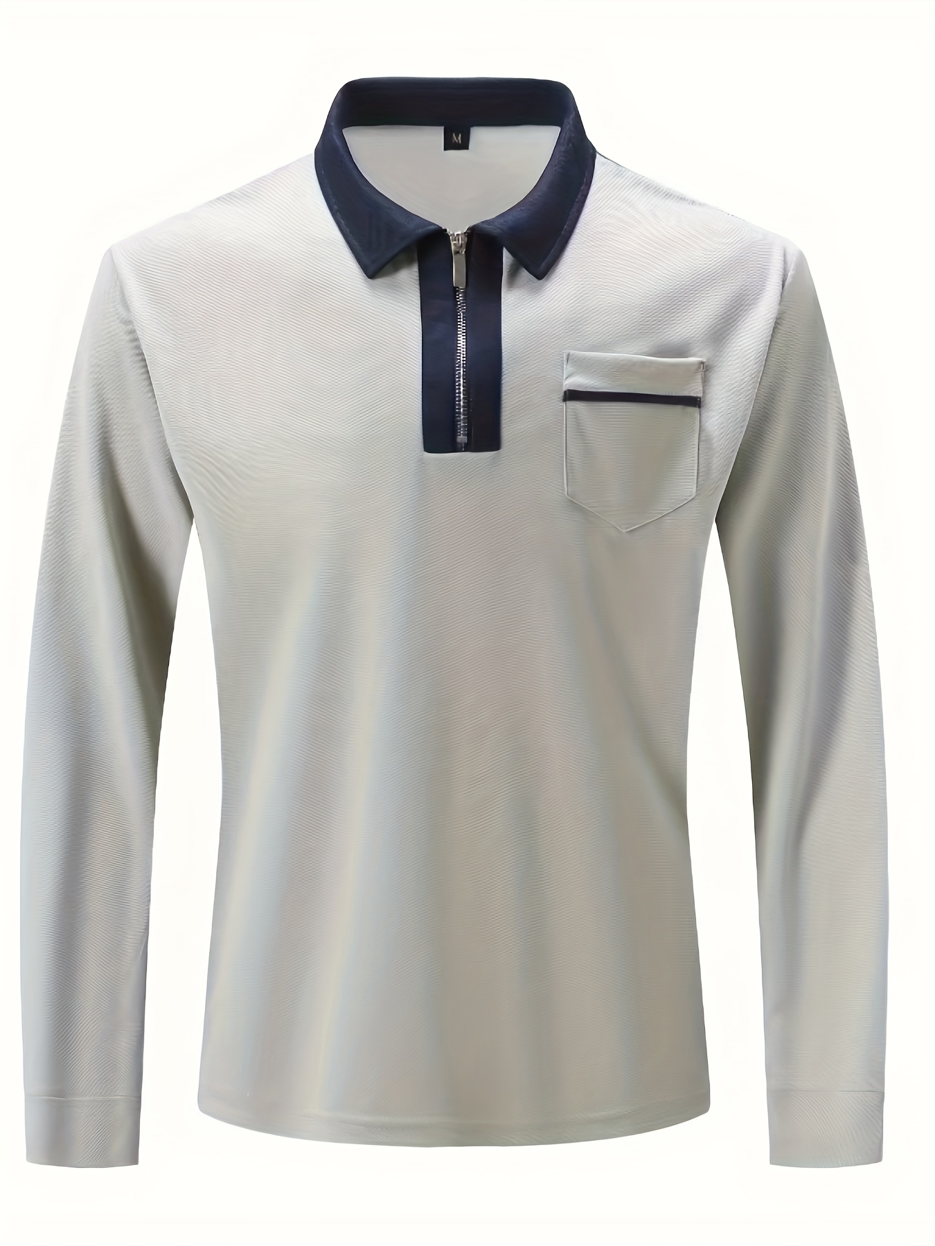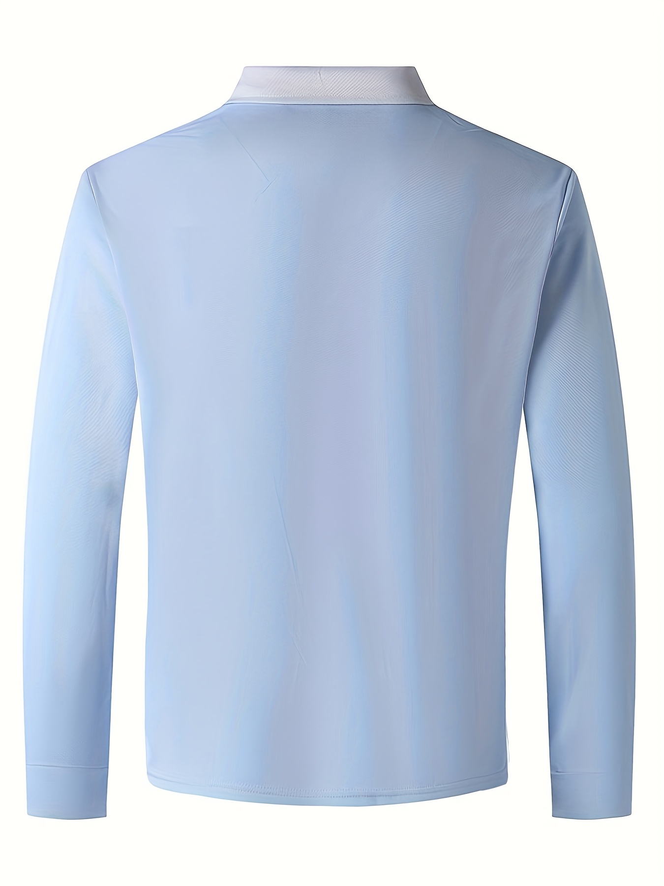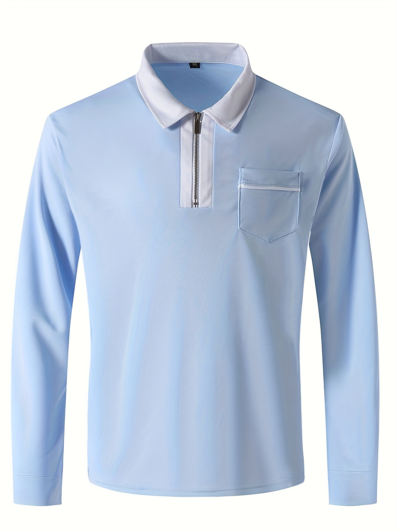 Men'S Light Blue Long Sleeve Polo Shirt with Zipper Collar & Chest Pocket - Casual Button-Up Shirt for Spring/Fall, Regular Fit, Solid Color, Spring Fall Apparel | Zipper Collar Shirt | Slight Stretch Fabric
