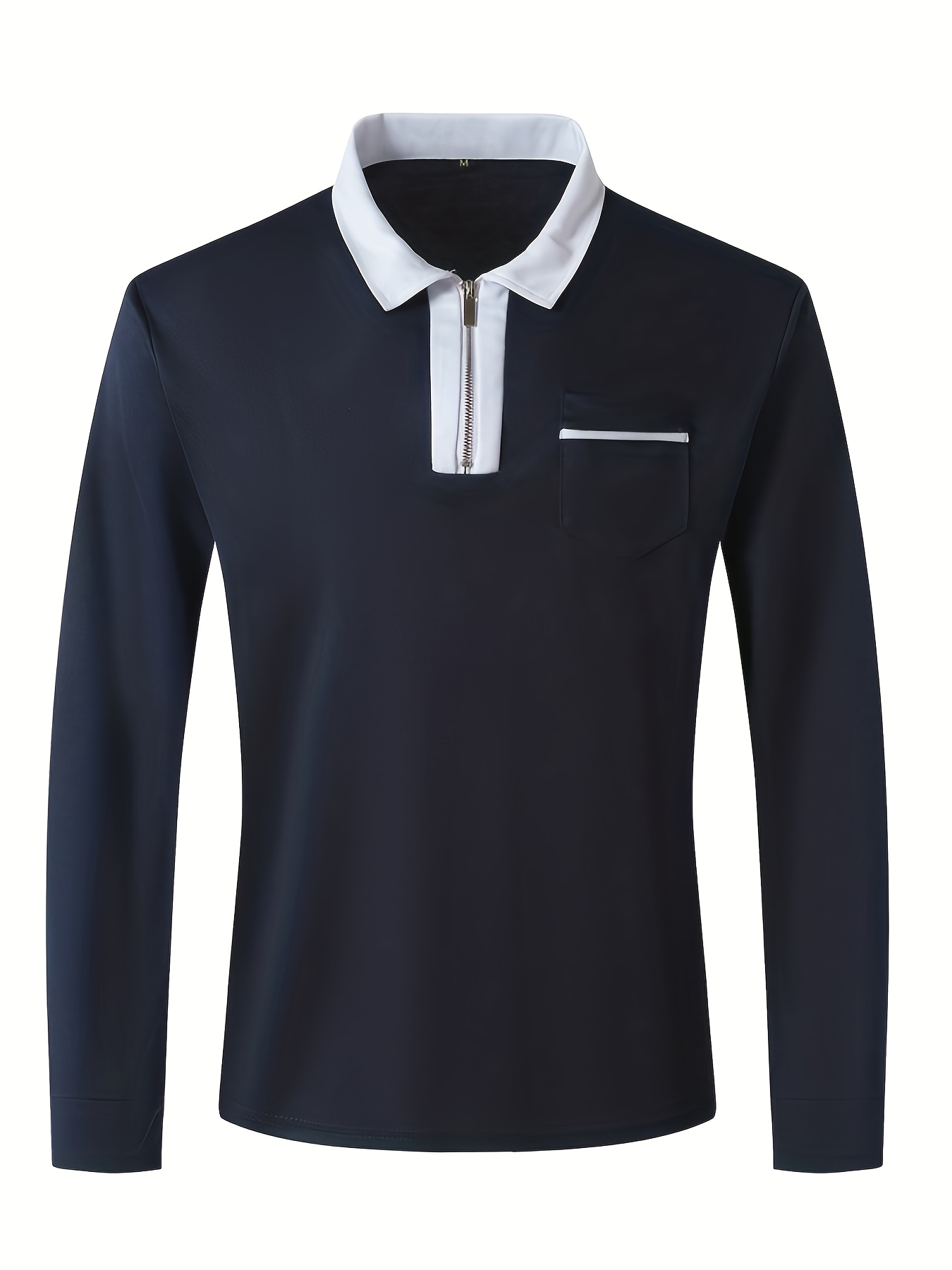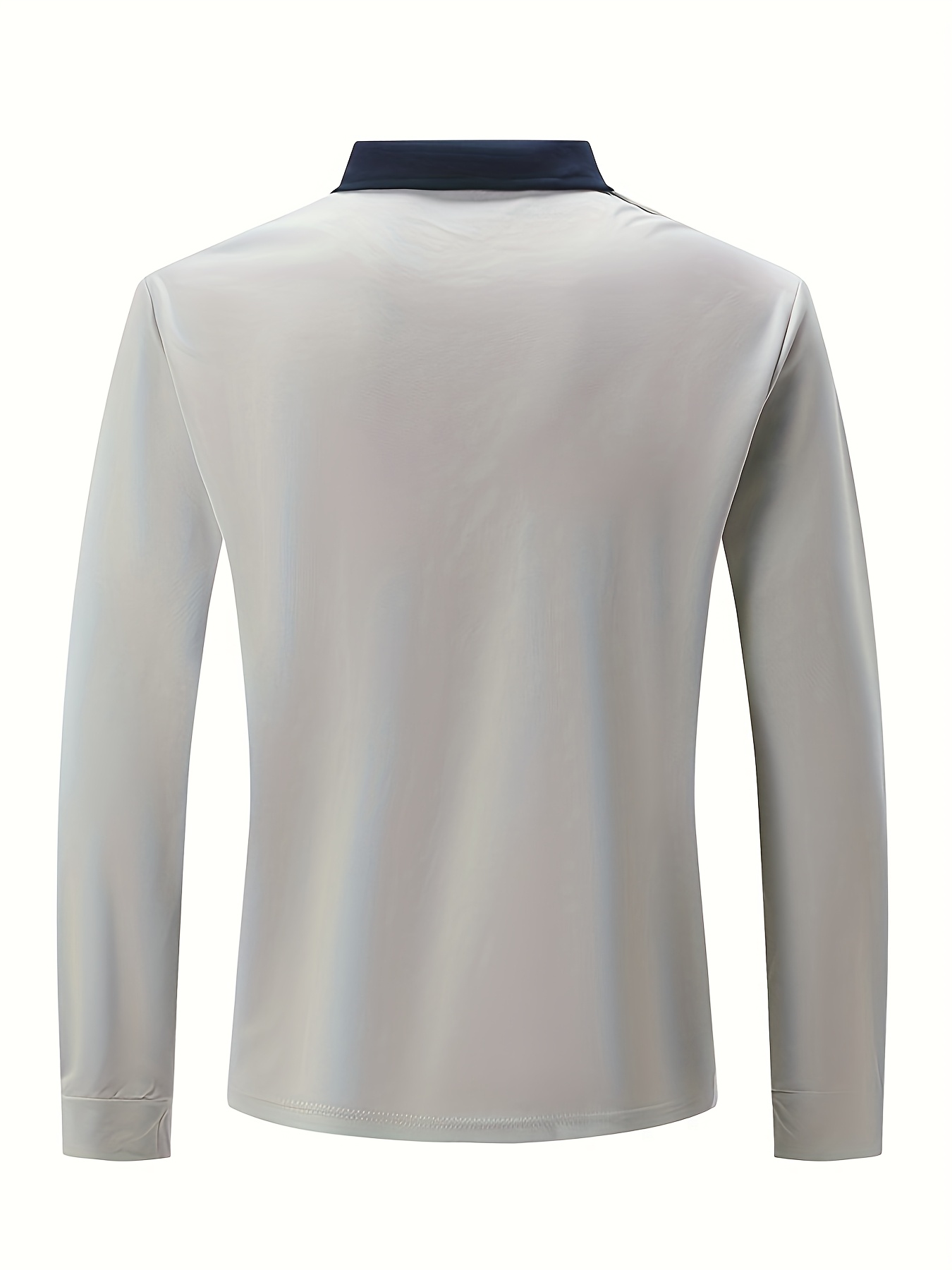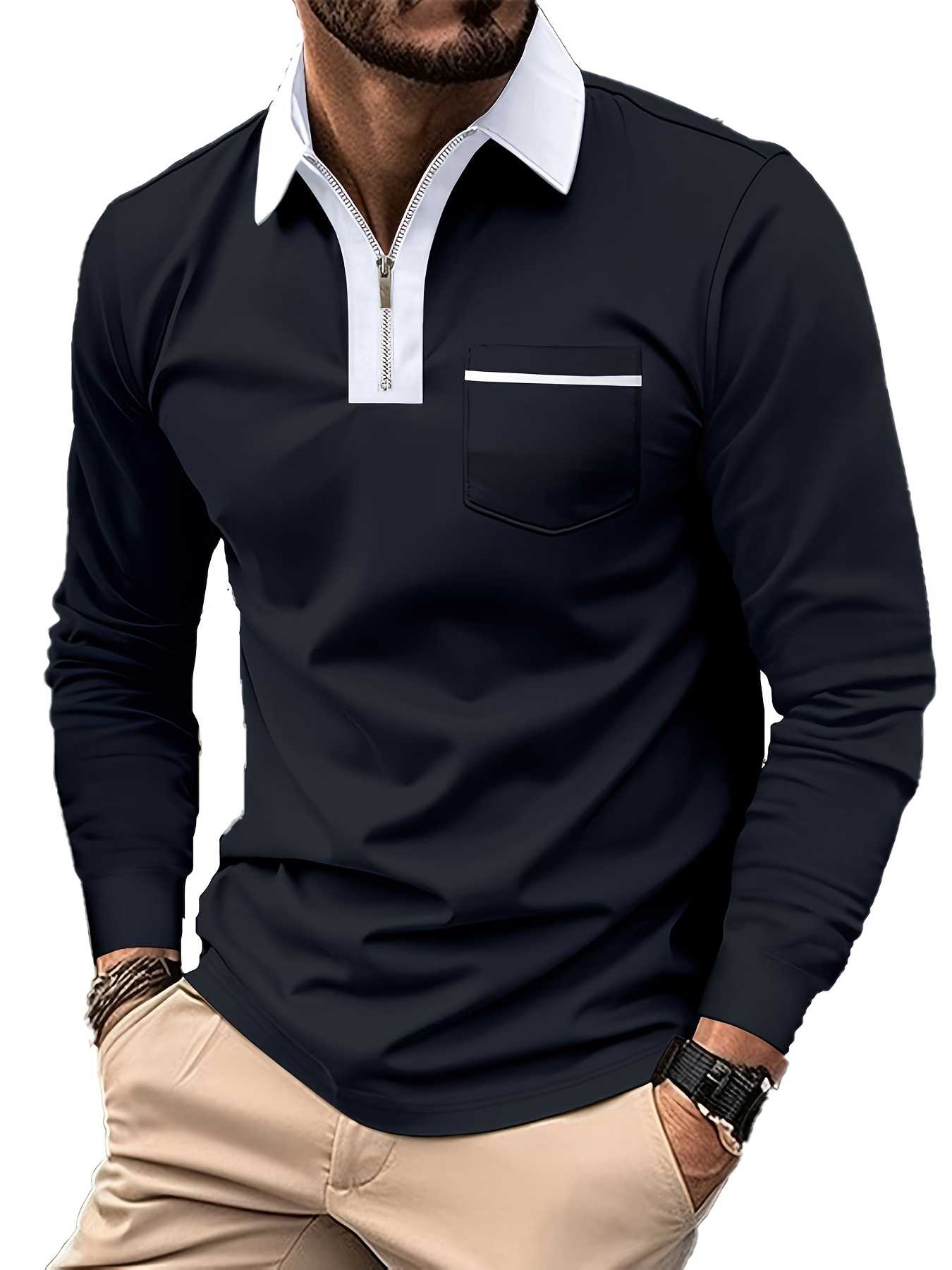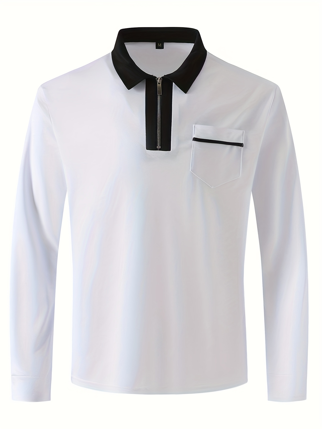 Men'S Light Blue Long Sleeve Polo Shirt with Zipper Collar & Chest Pocket - Casual Button-Up Shirt for Spring/Fall, Regular Fit, Solid Color, Spring Fall Apparel | Zipper Collar Shirt | Slight Stretch Fabric