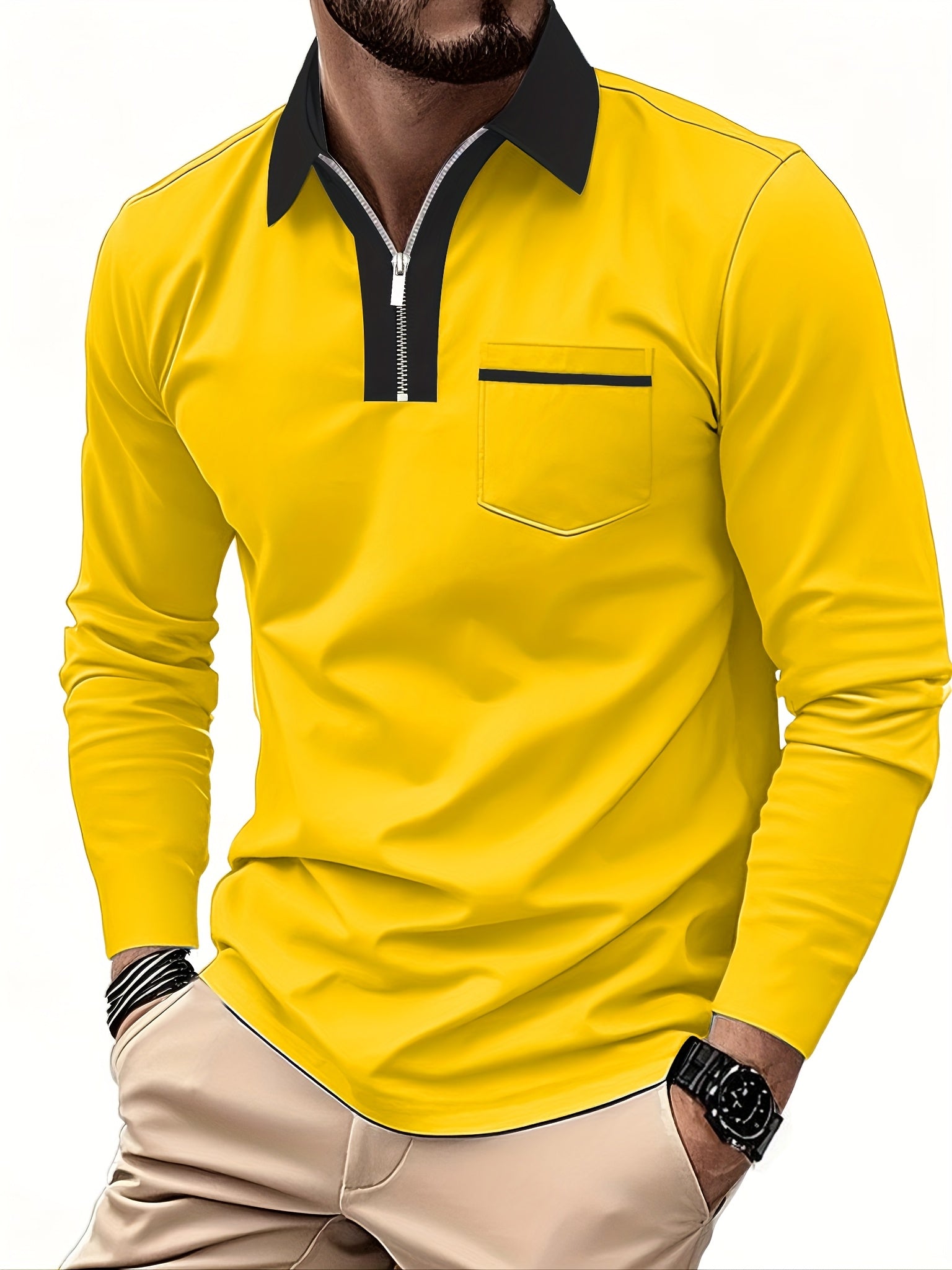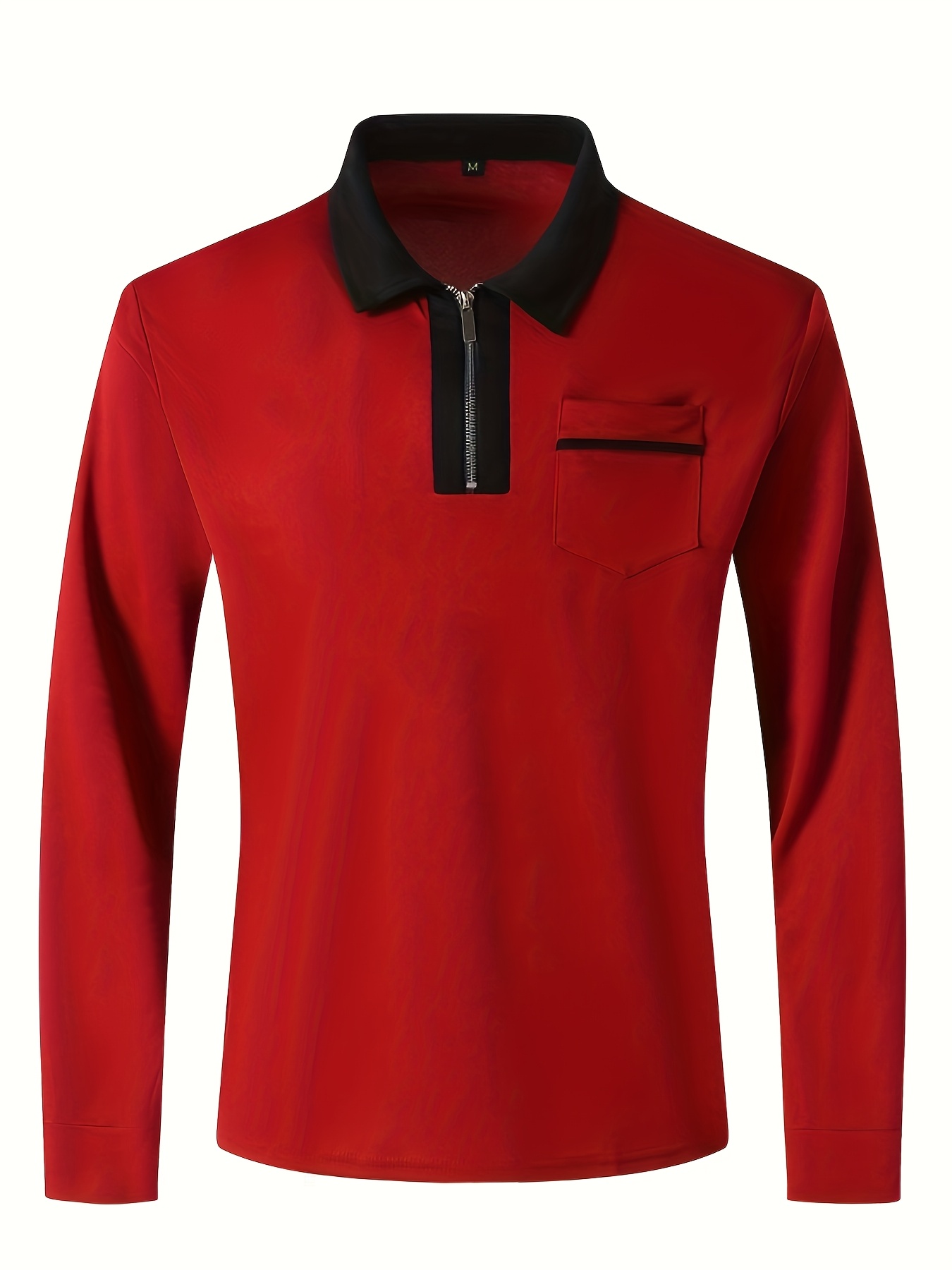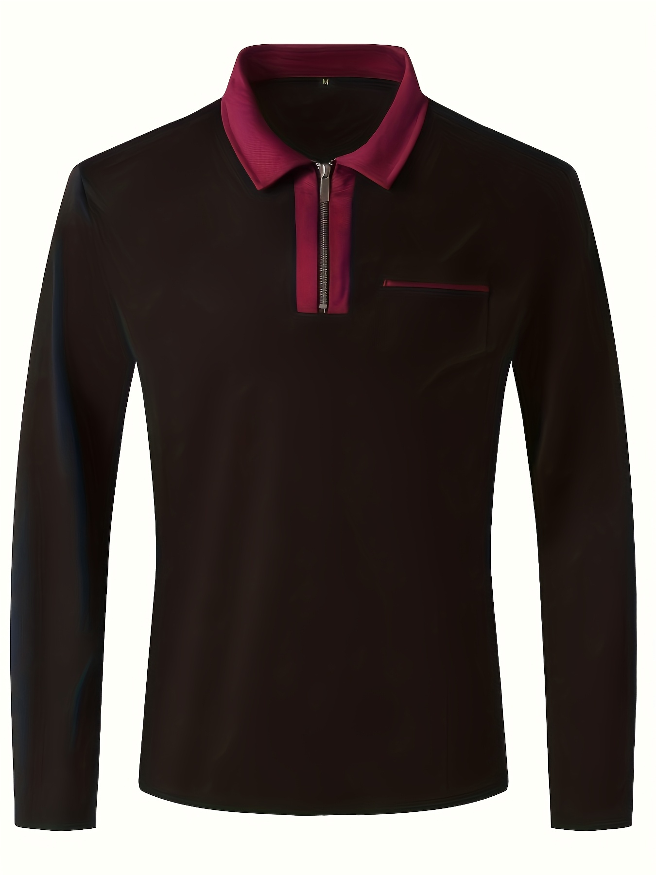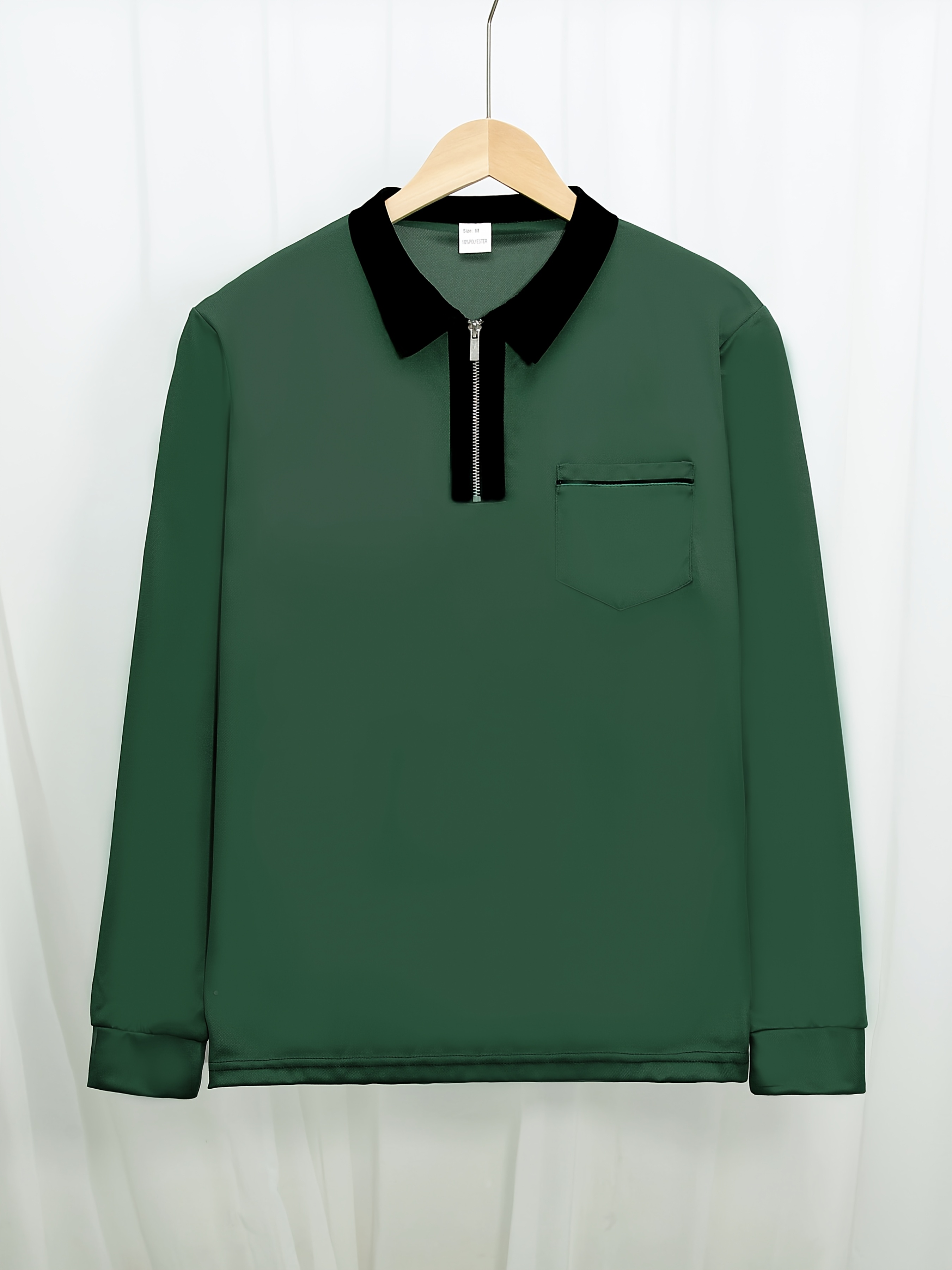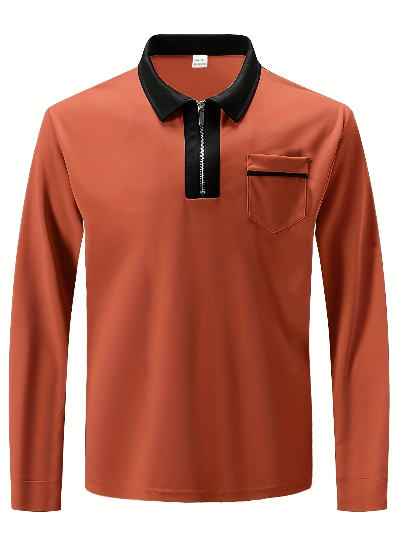 Men'S Light Blue Long Sleeve Polo Shirt with Zipper Collar & Chest Pocket - Casual Button-Up Shirt for Spring/Fall, Regular Fit, Solid Color, Spring Fall Apparel | Zipper Collar Shirt | Slight Stretch Fabric