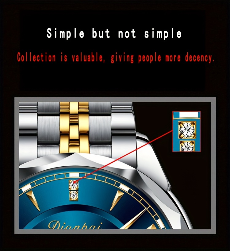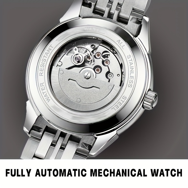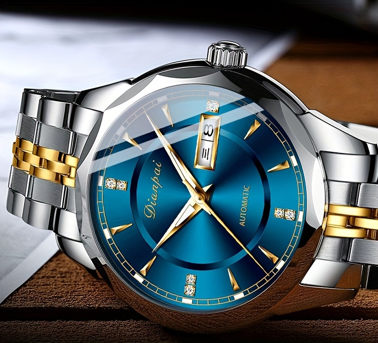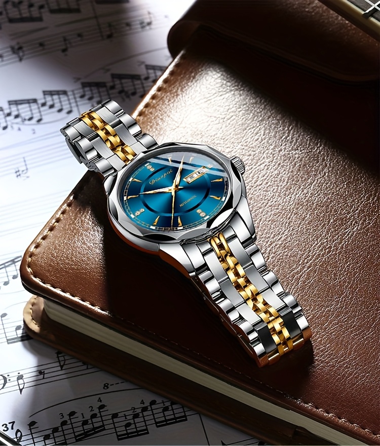 Montre Mécanique Automatique Homme – Acier Inoxydable, Grand Cadran avec Aiguilles Dorées, Chronographe de Luxe avec Calendrier & Affichage de la Semaine, Marqueurs Lumineux, Étanche 30 m – Idée Cadeau pour Homme (Fête des Pères, Anniversaire)
