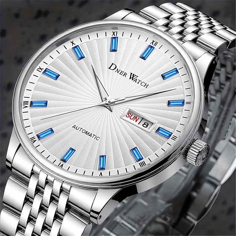 Men'S Stainless Steel Mechanical Watch with Sapphire Crystal Round Dial - Automatic Winding Movement, Date/Day/24H Indicator, Chronograph-Free Luxury Analog Watch for Casual & Formal Occasions, Durable Elegant Timepiece for C