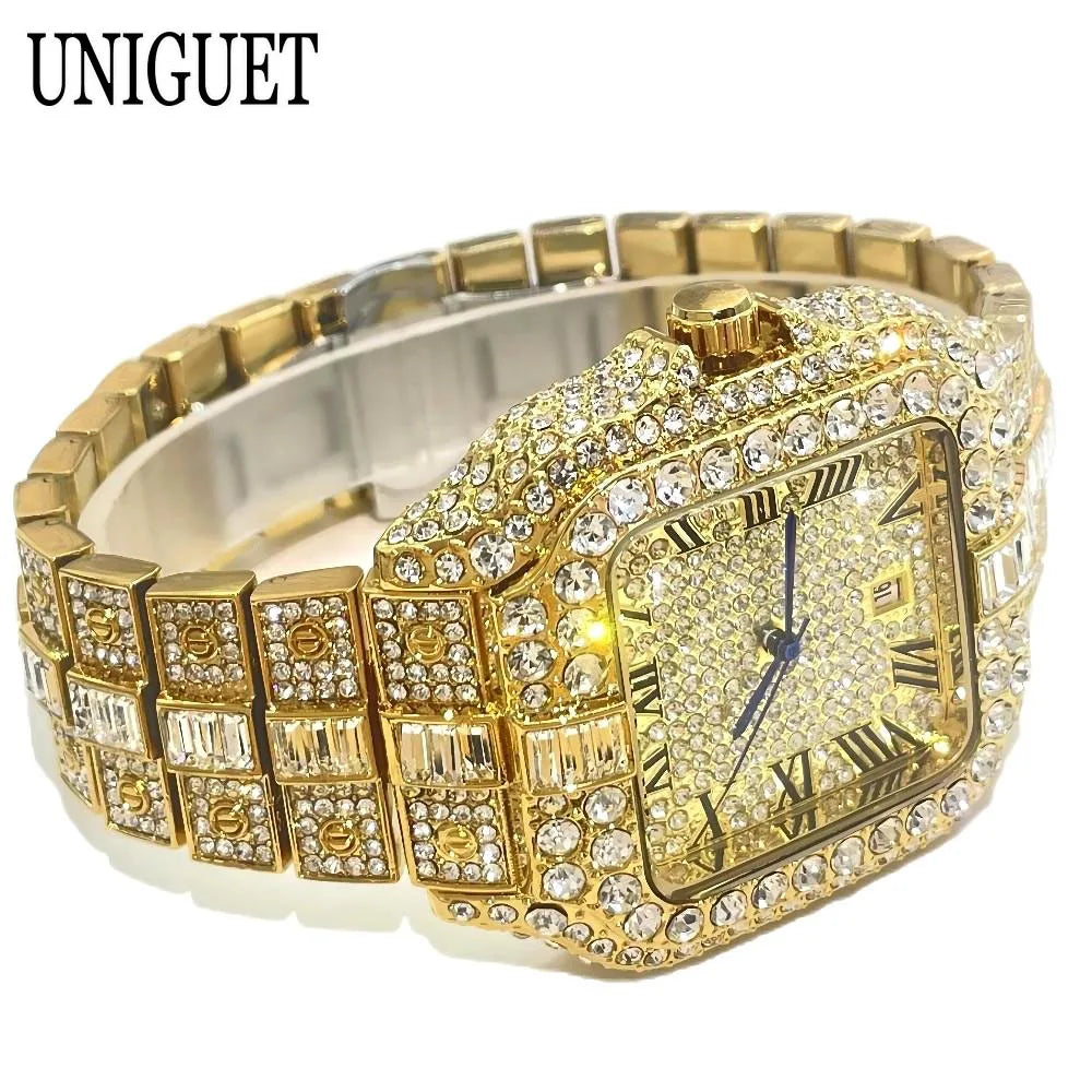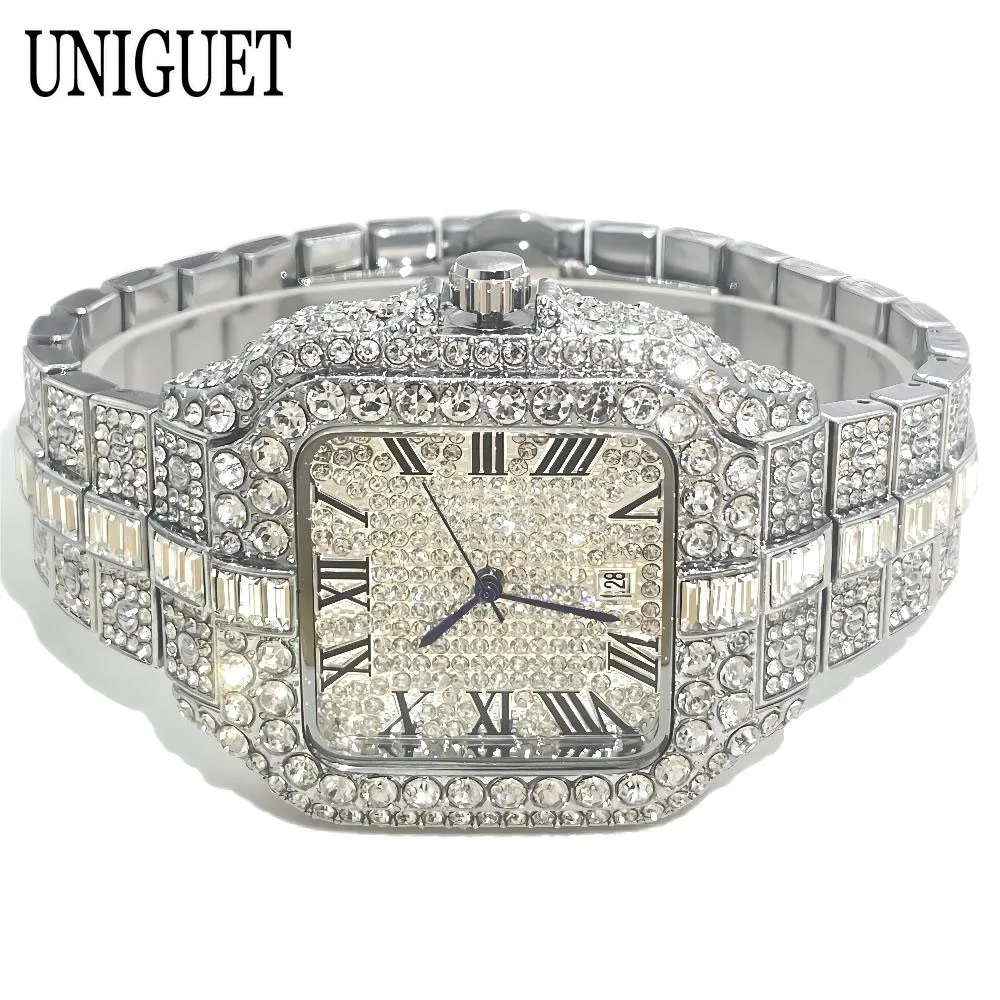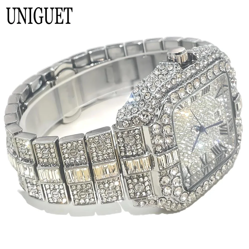Mode chaude glacé montres hommes marque de luxe MISSFOX carré montres à Quartz Unique Hip Hop plein diamant montre-bracelet homme cadeaux
