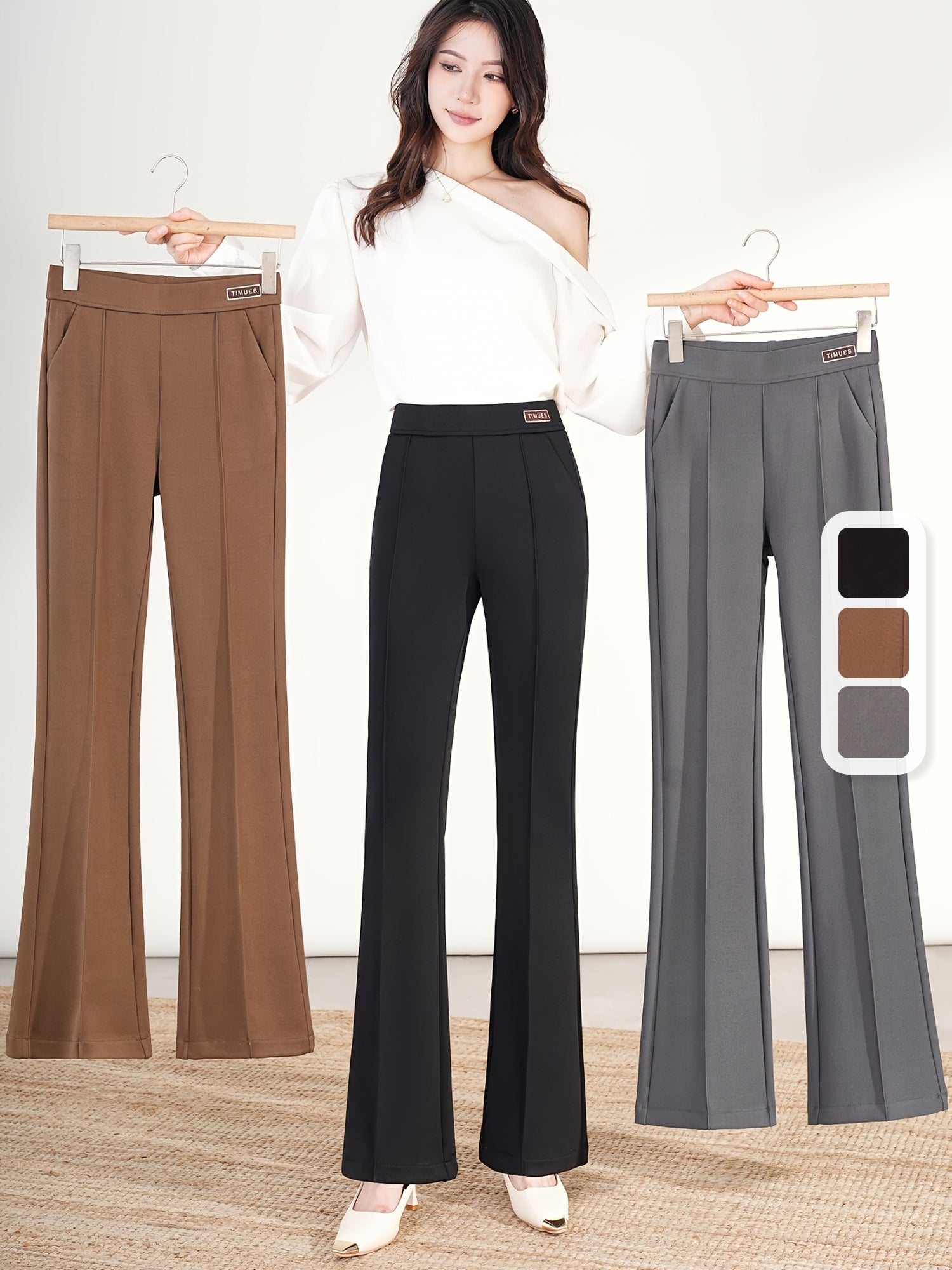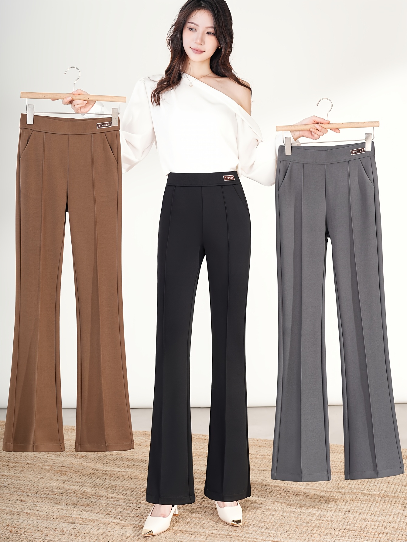 Pantalon Femme Évasé – Taille Élastique, Printemps/Automne