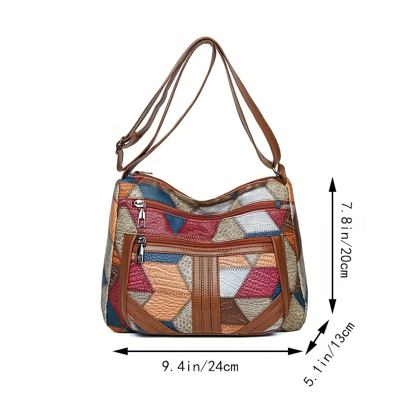 Sac femme – Sac bandoulière casual, design patchwork, style simple et tendance, fermeture éclair aléatoire