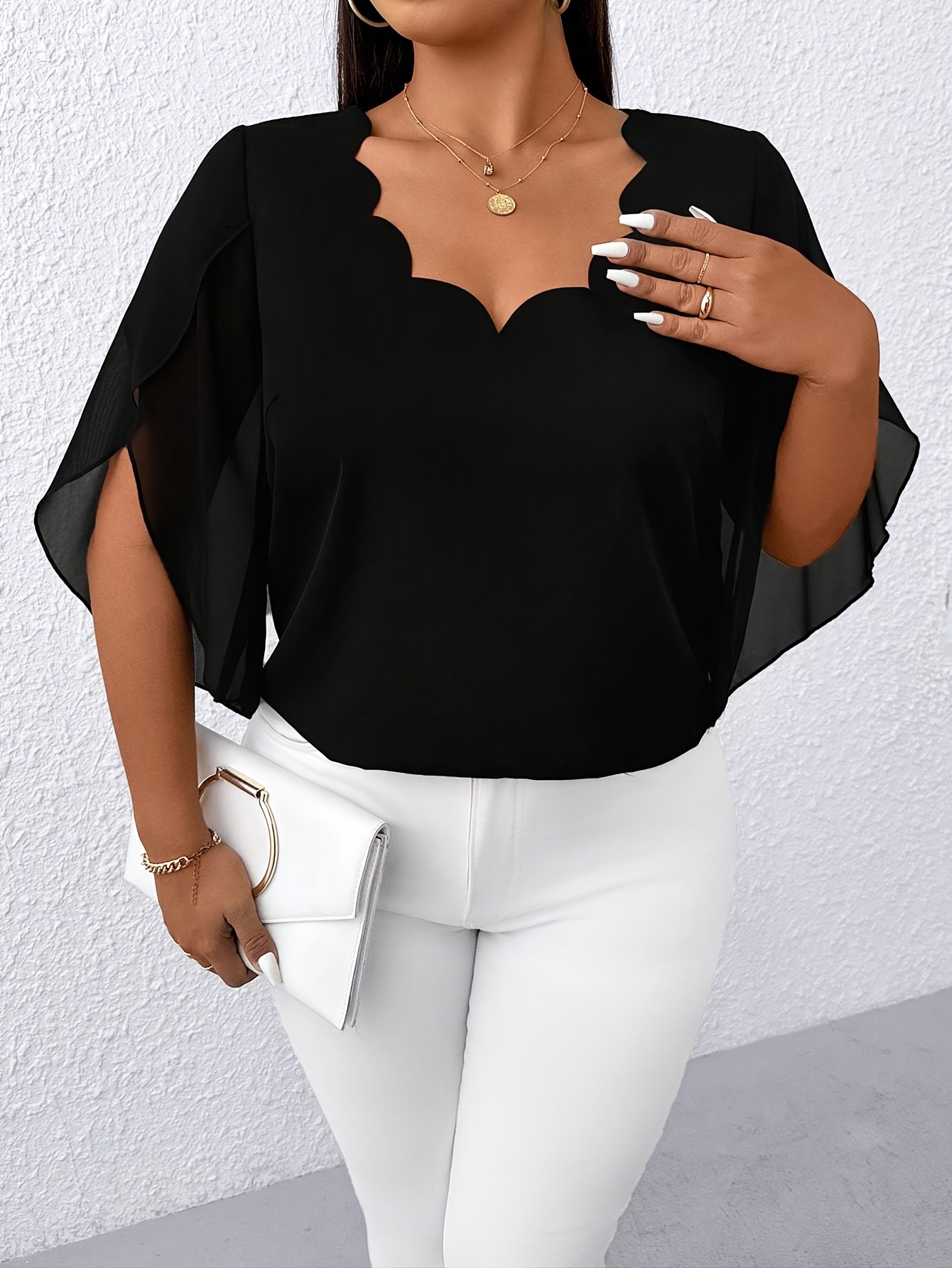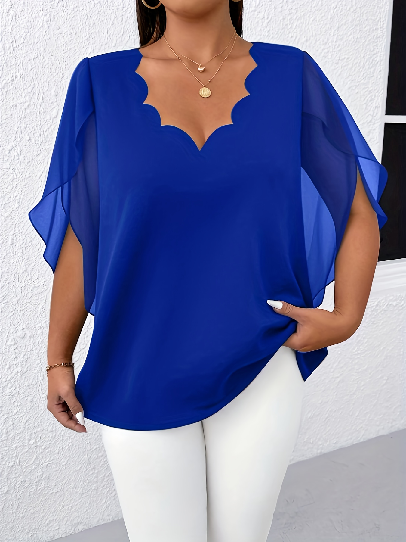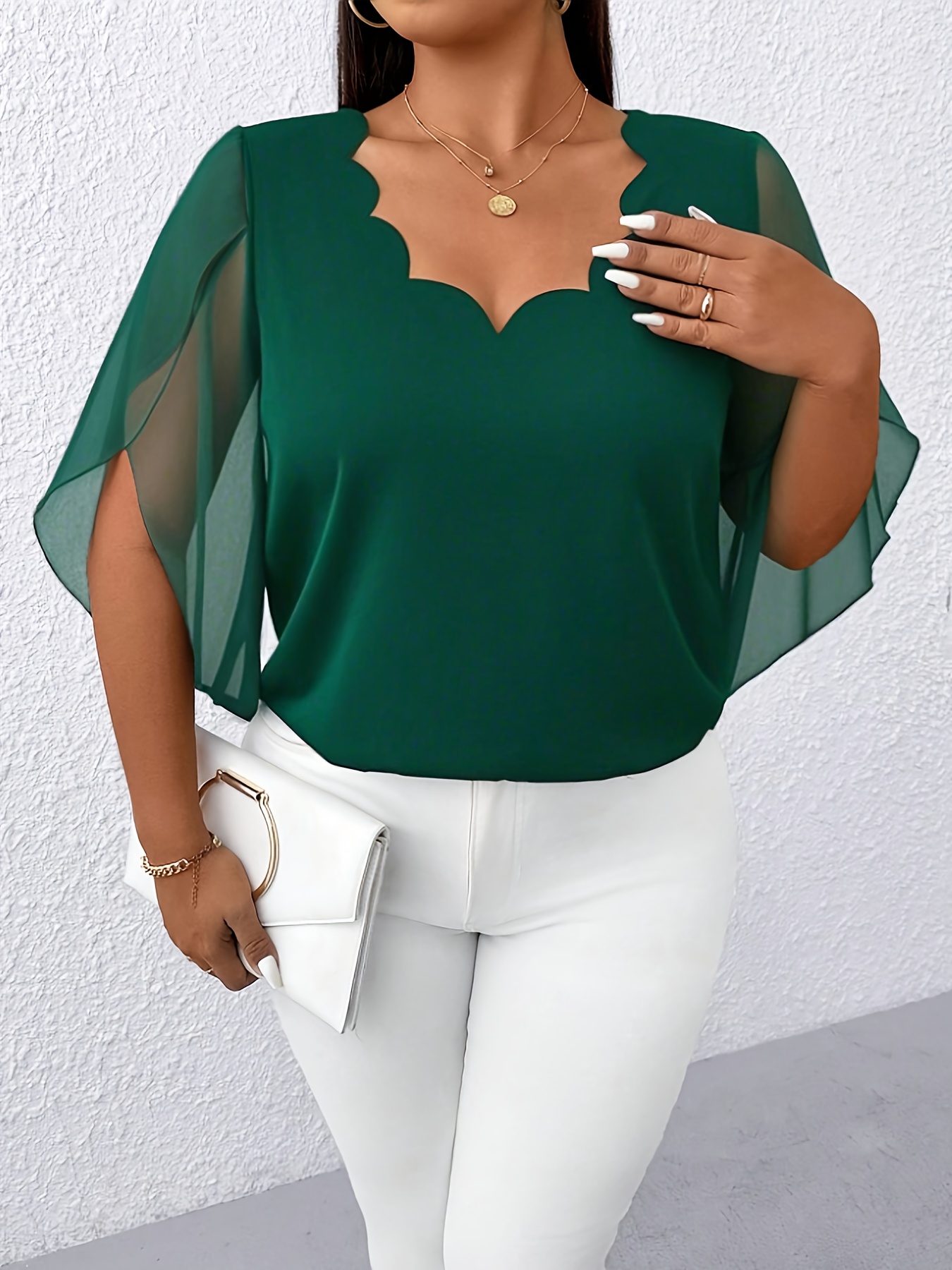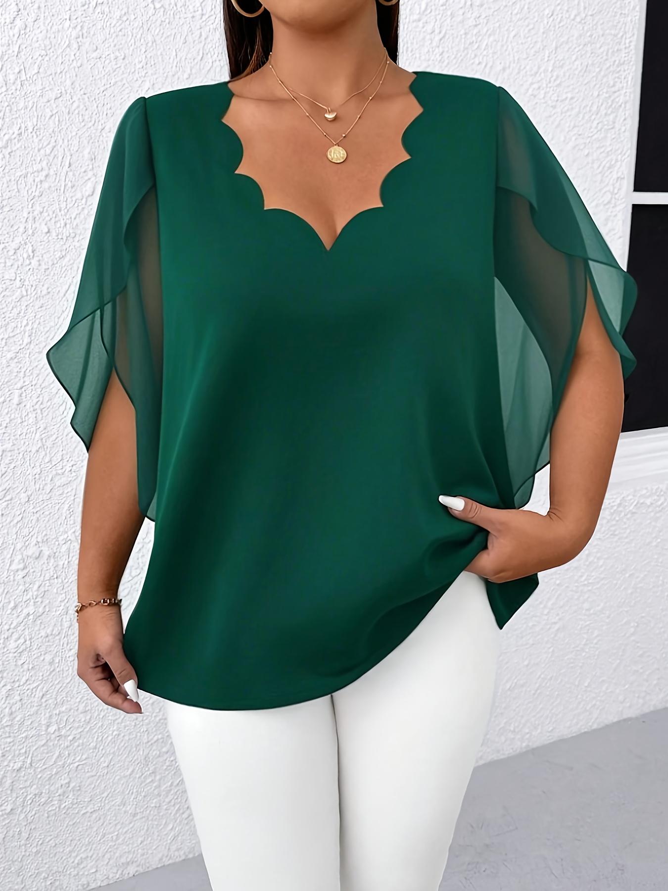Blouse Femme Grande Taille Élégante – Manches Mi-Longues, Col Classique, Tissu Non Extensible, Tous Saisons