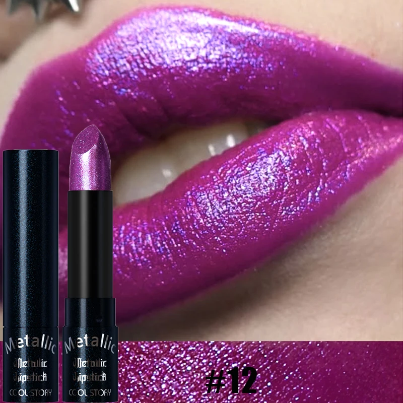 Rouge à lèvres rose diamant, paillettes métalliques, imperméable, brillant, nacré, bleu foncé, rouge, mat, brillant à lèvres, maquillage pour Halloween