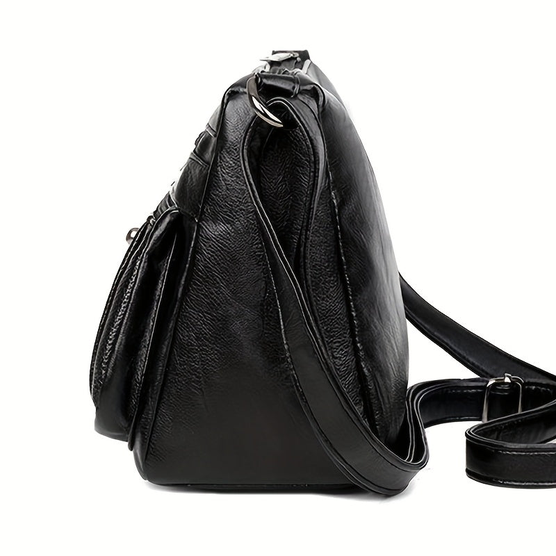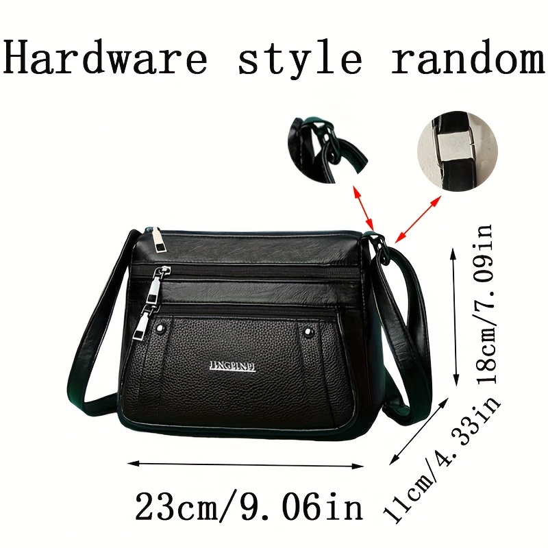 Sac Bandoulière Rétro Carré – Sangle Ajustable, Multiples Poches, Fermeture Éclair, Doublure Polyester Durable, Sac Décontracté pour Déplacements Quotidiens et Voyages, Noir, Pour Adolescent