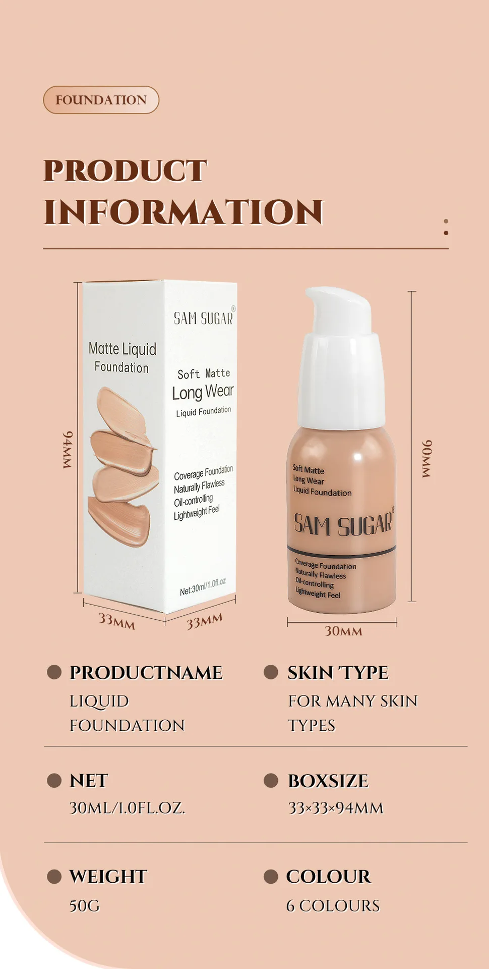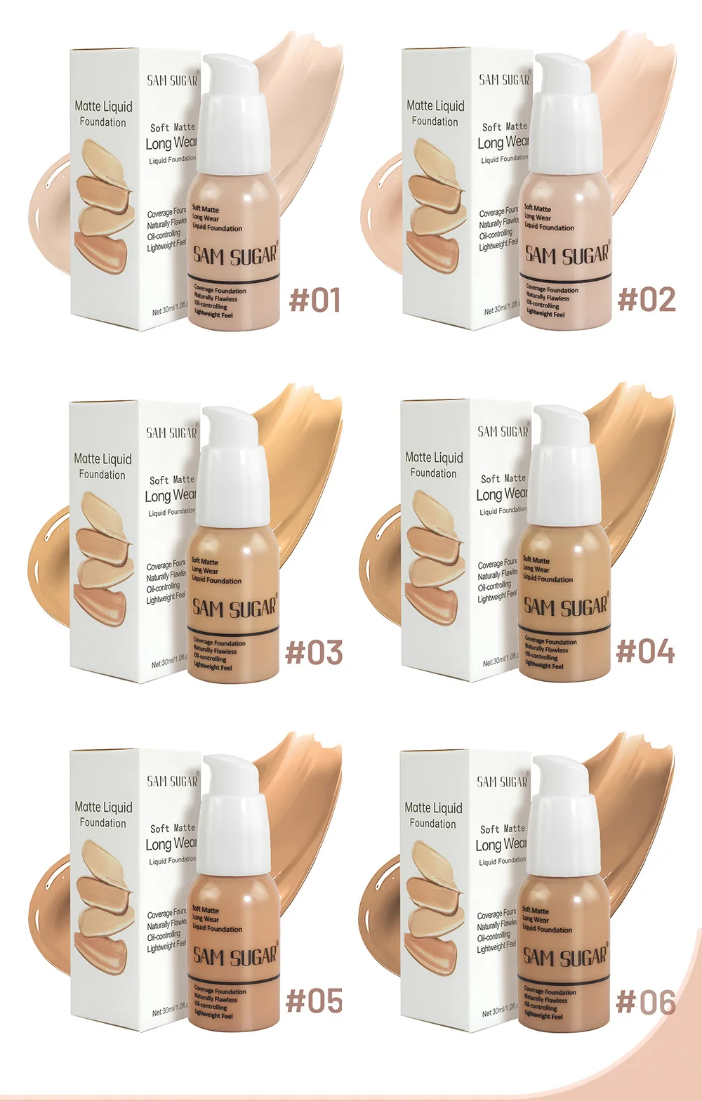 Correcteur 6 Couleurs & Fond de Teint Liquide – Longue Tenue, Contrôle du Sébum, Texture Douce et Naturelle, Hydratant, Waterproof