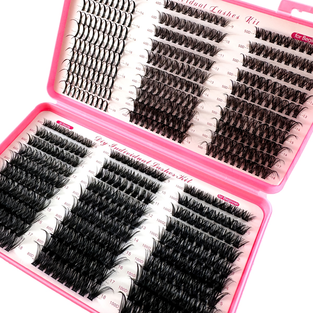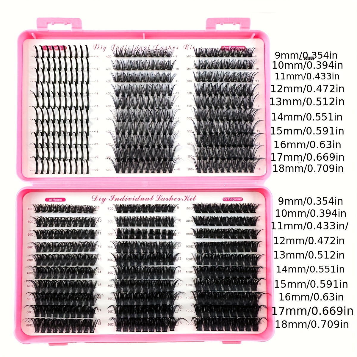 Lot de 580 faux cils volume effet vison, volume léger, courbure D, longueur mixte 9-18 mm, extensions naturelles et douces, idéales pour le maquillage