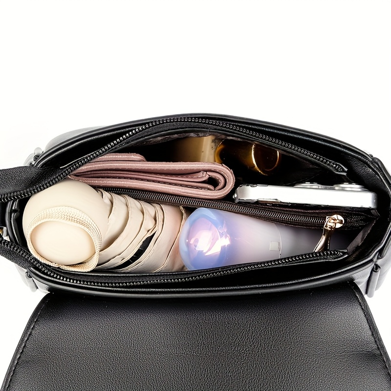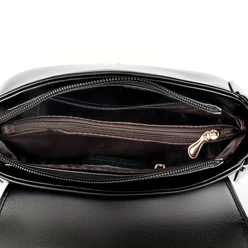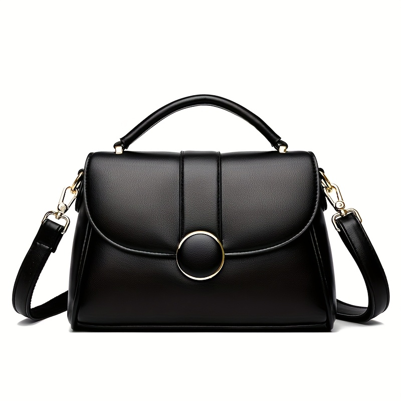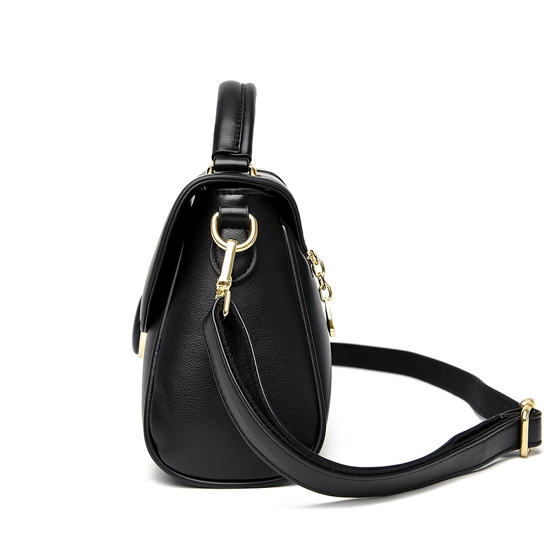Sac bandoulière noir élégant femme poignée ronde réglable zip polyester