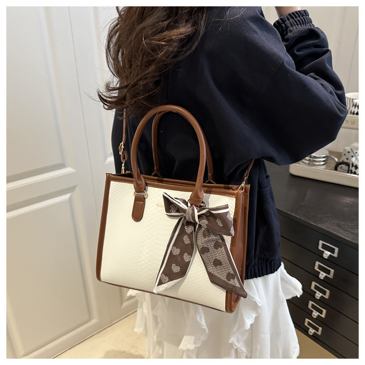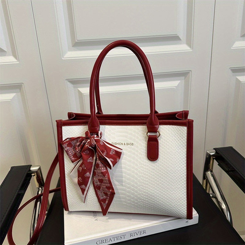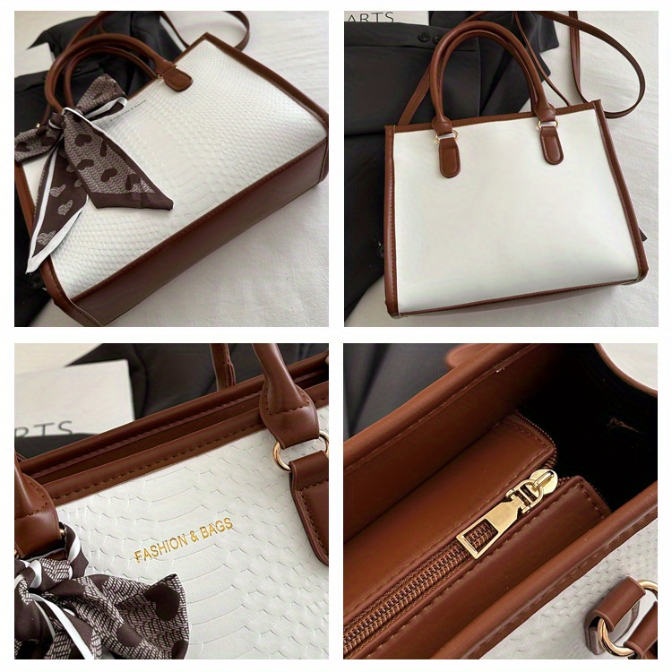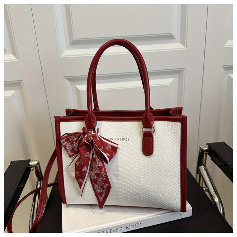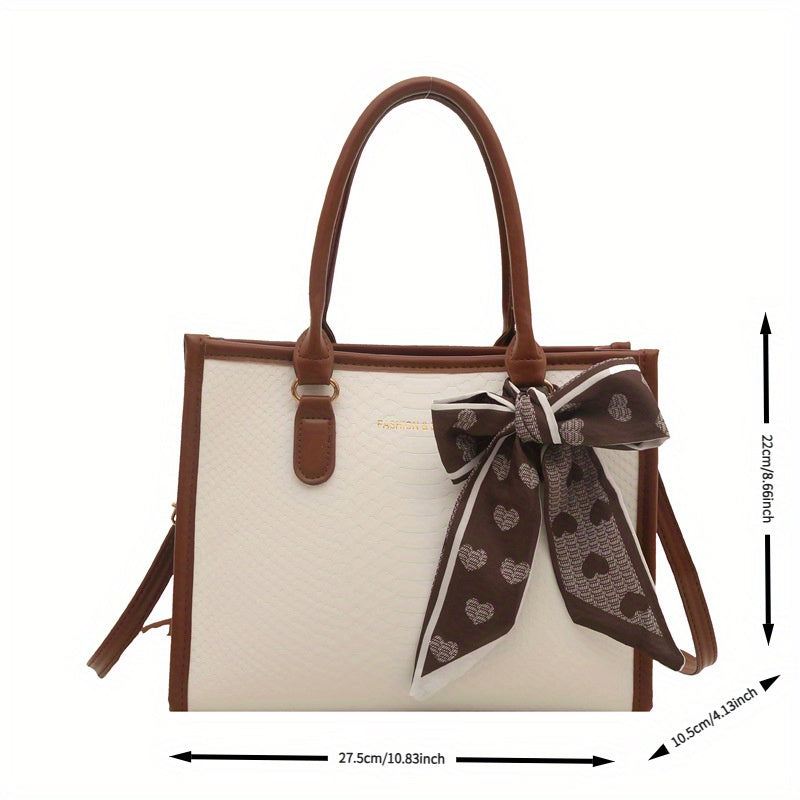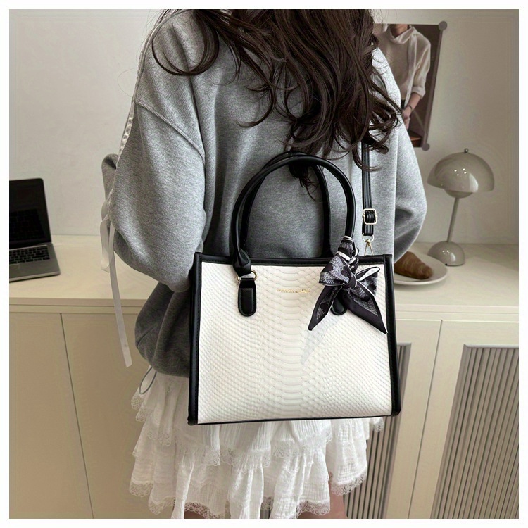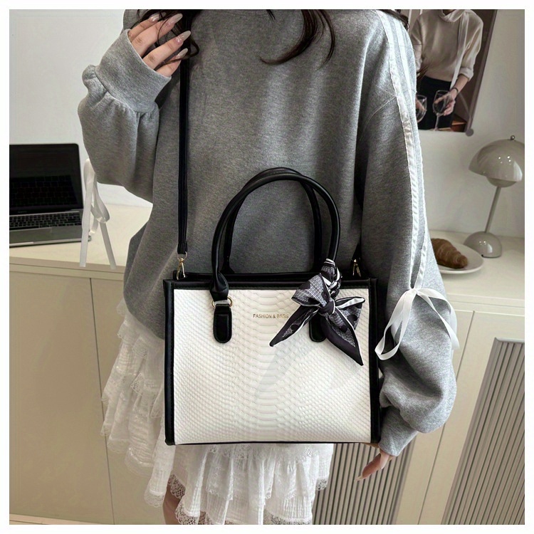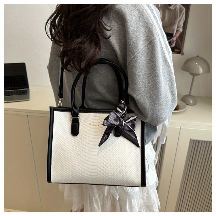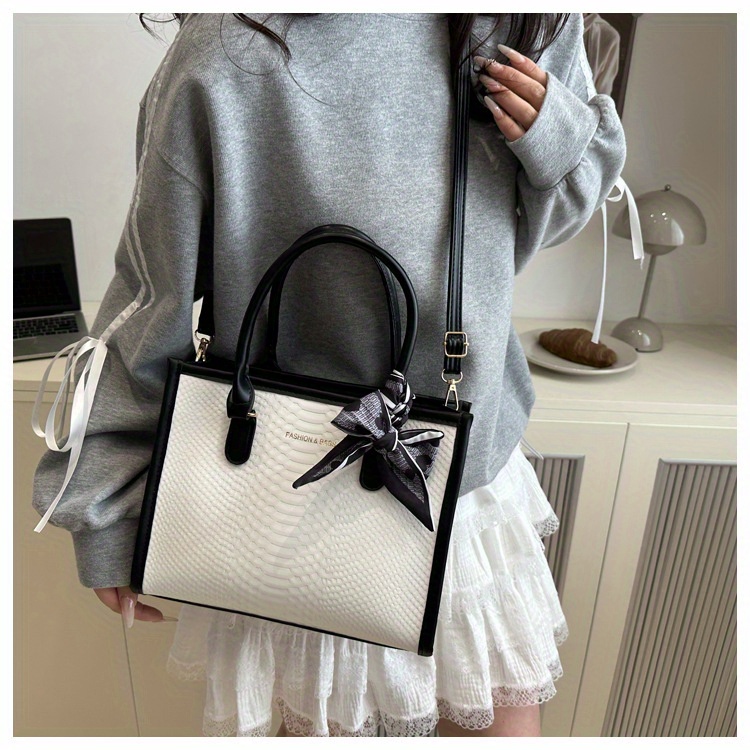Sac à main grande capacité pour femmes – design bicolore noir et blanc, détails en chaîne et nœud