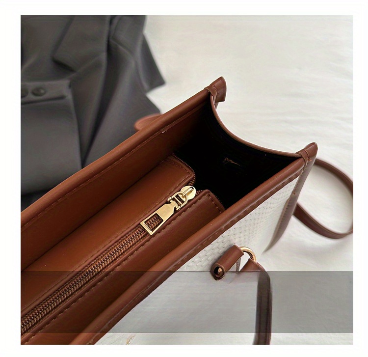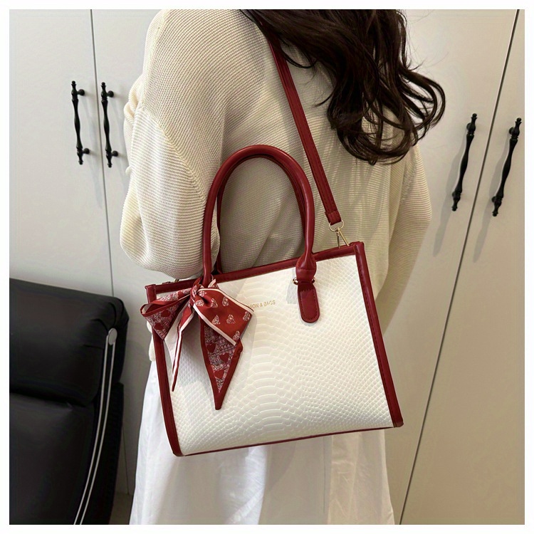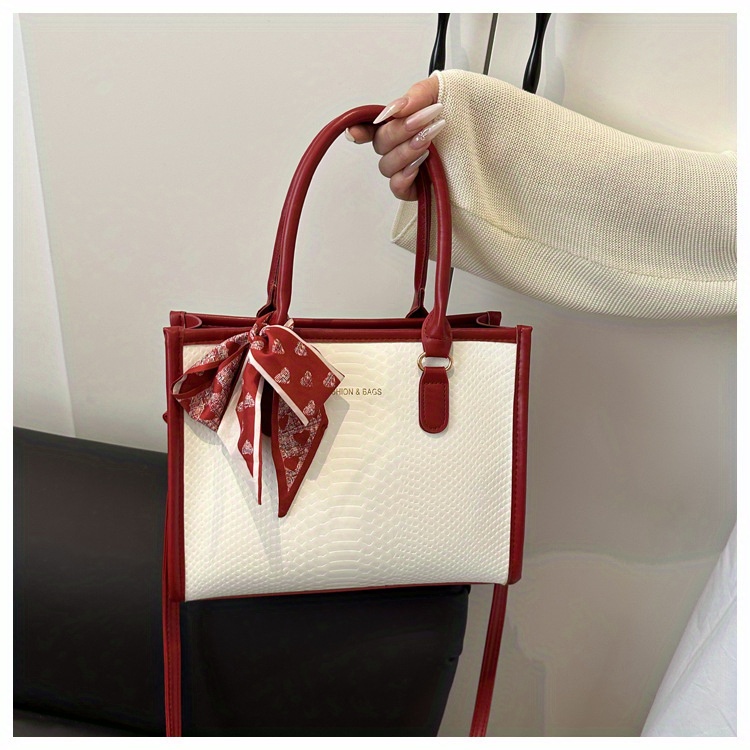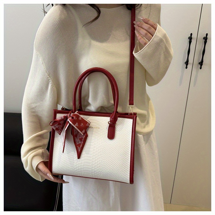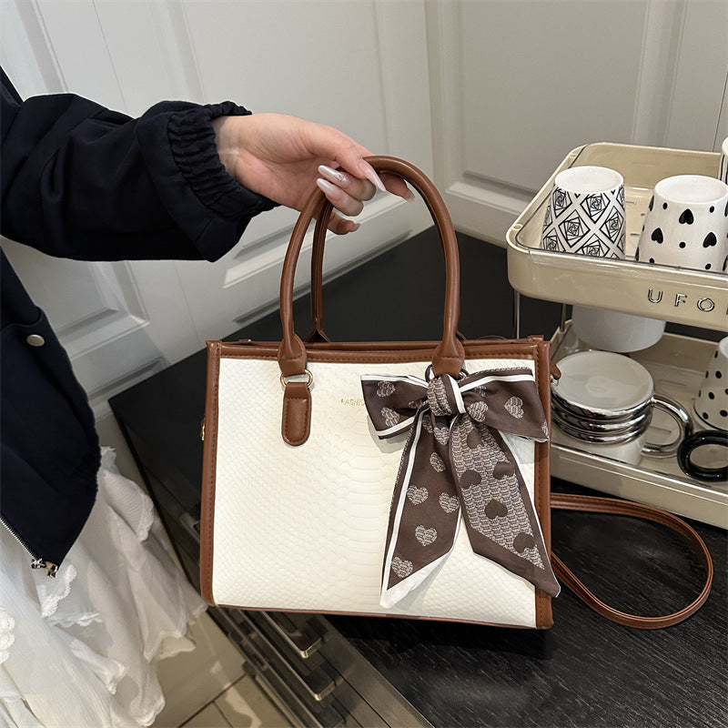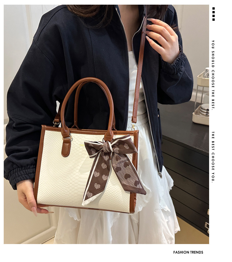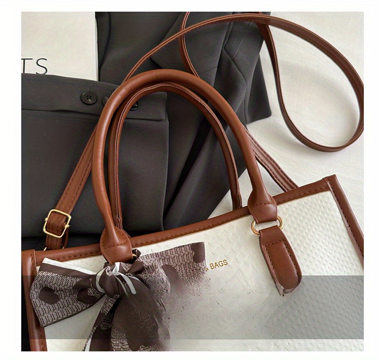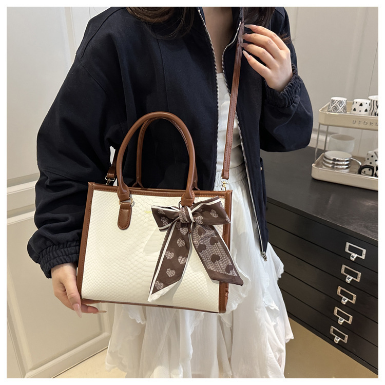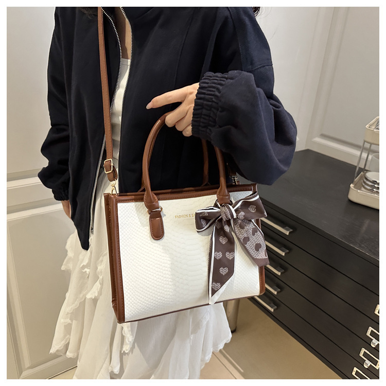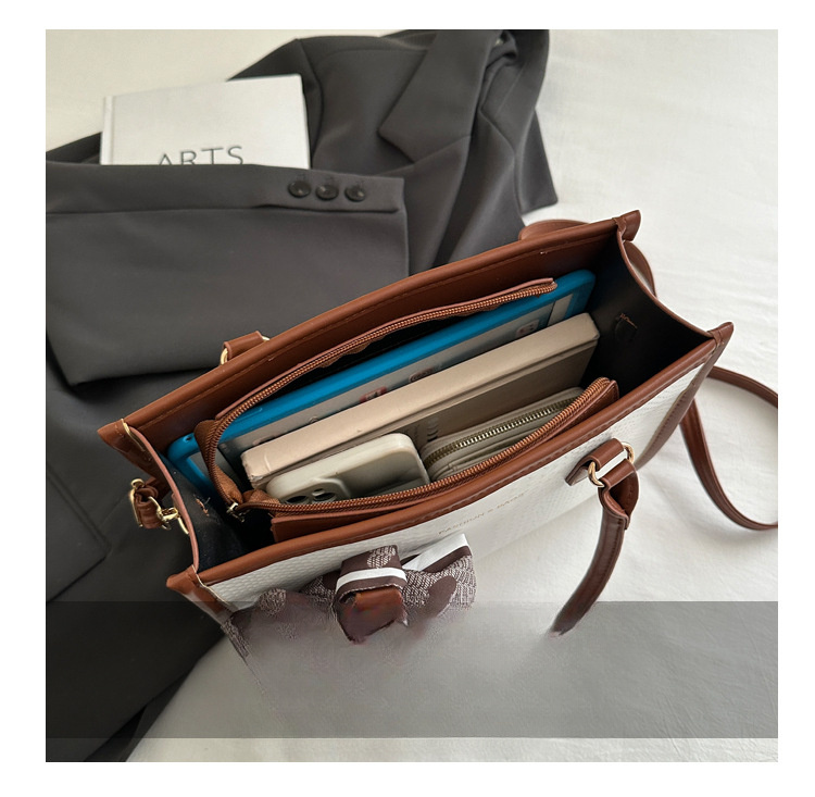 Sac à main grande capacité pour femmes – design bicolore noir et blanc, détails en chaîne et nœud