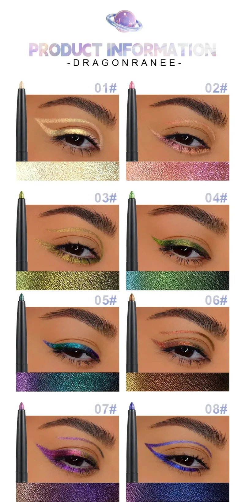 Stylo Gel Eyeliner caméléon, imperméable, brillant, chromé, ombre à paupières, crayon à paillettes, perle, vert, or, couché, ver à soie, maquillage pour les yeux