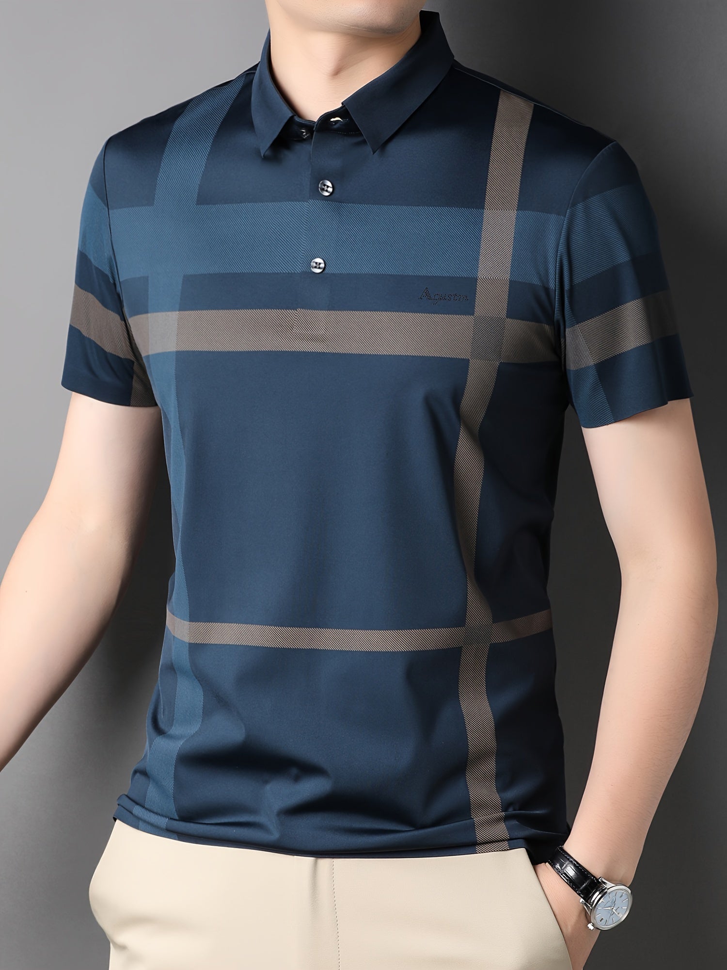 Summer New Men's Short Sleeve T-Shirt with Plaid Collar