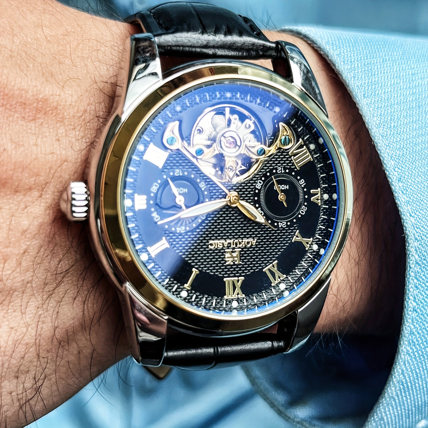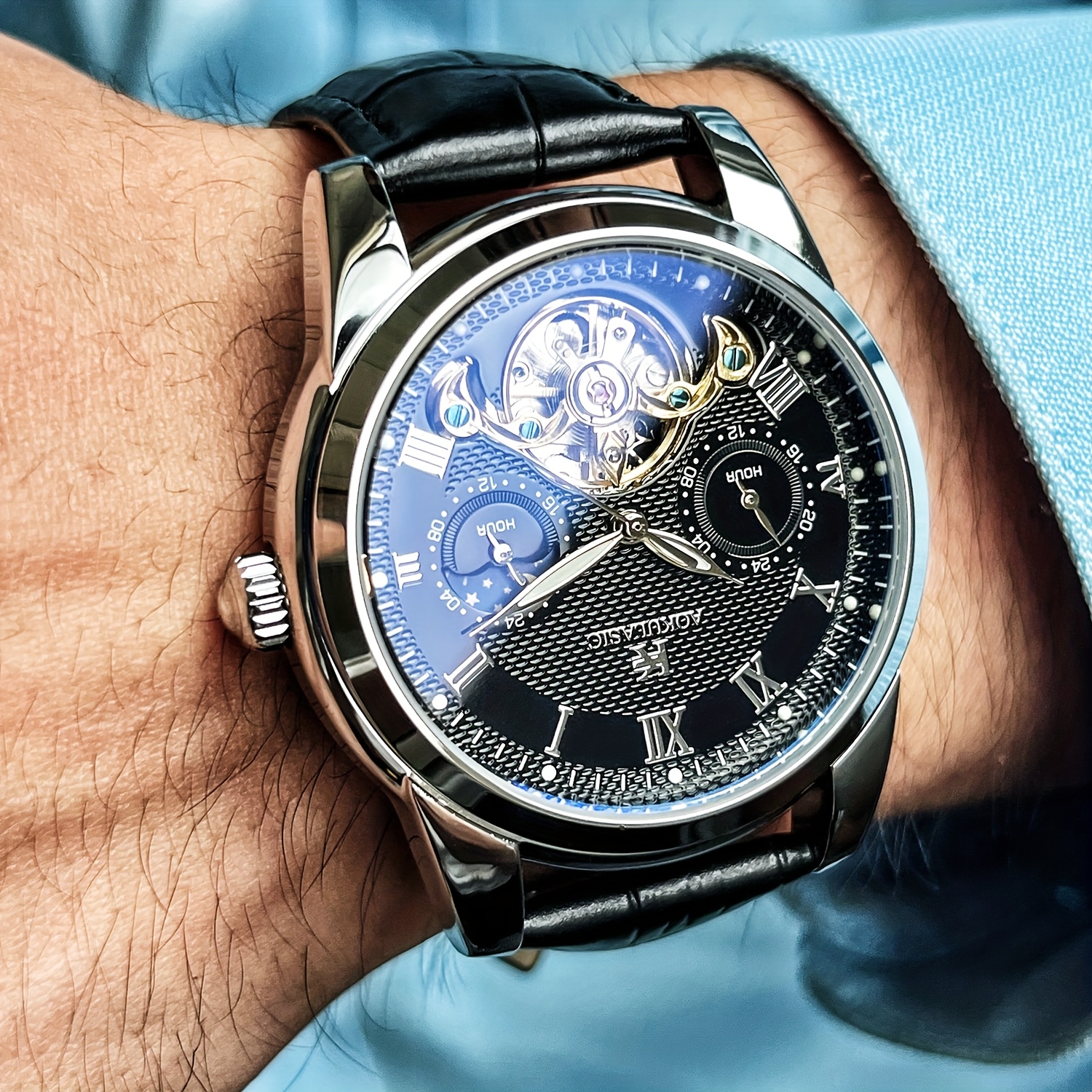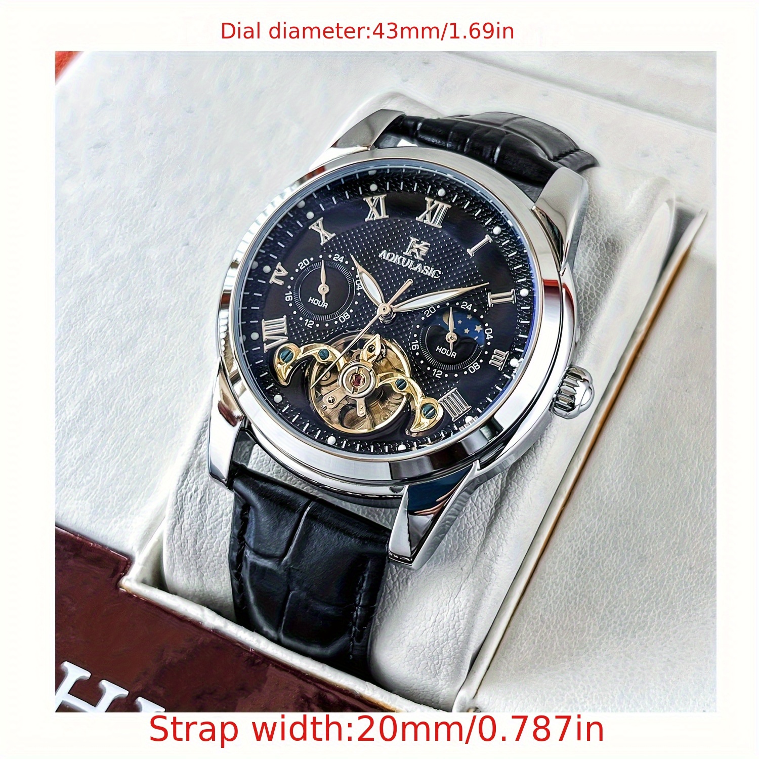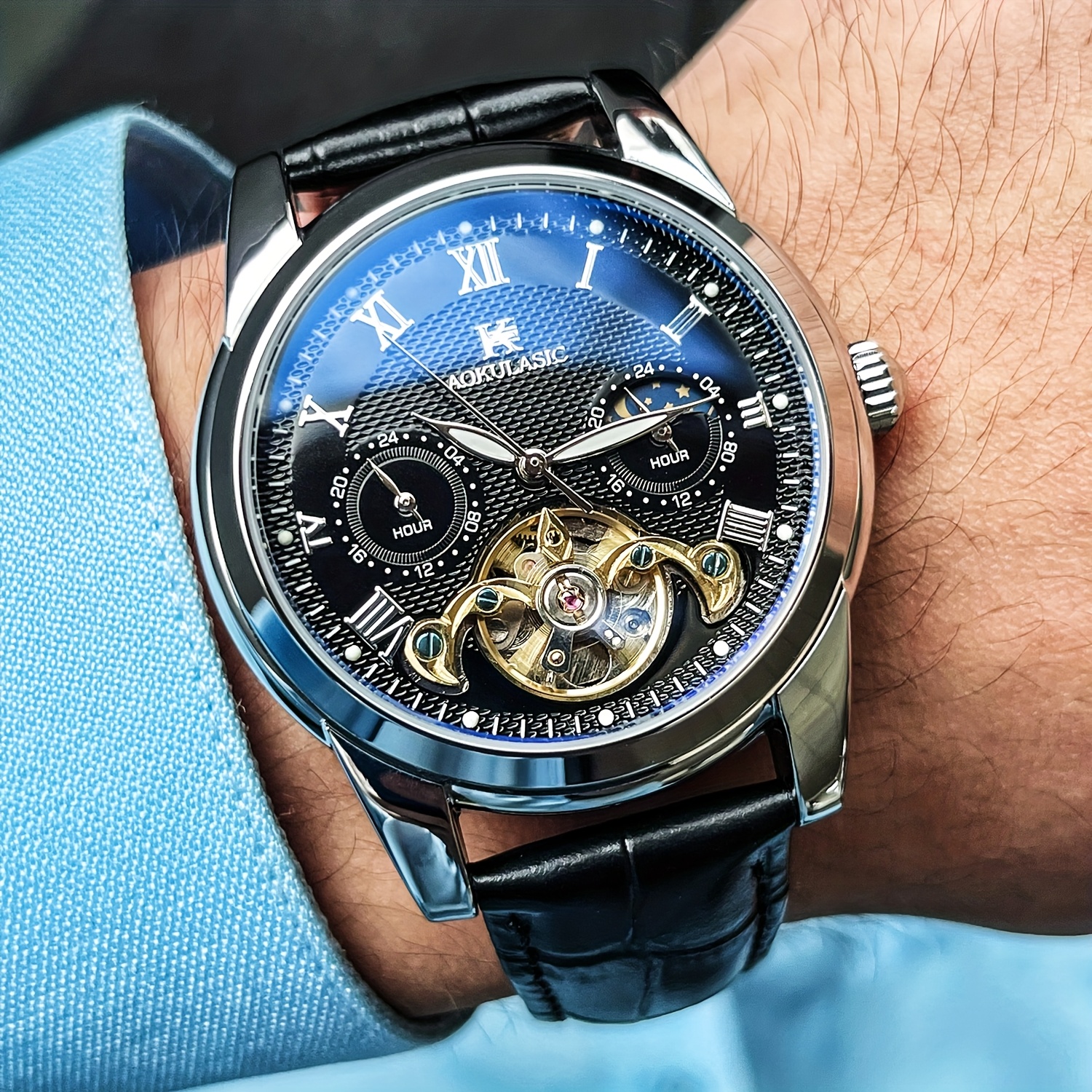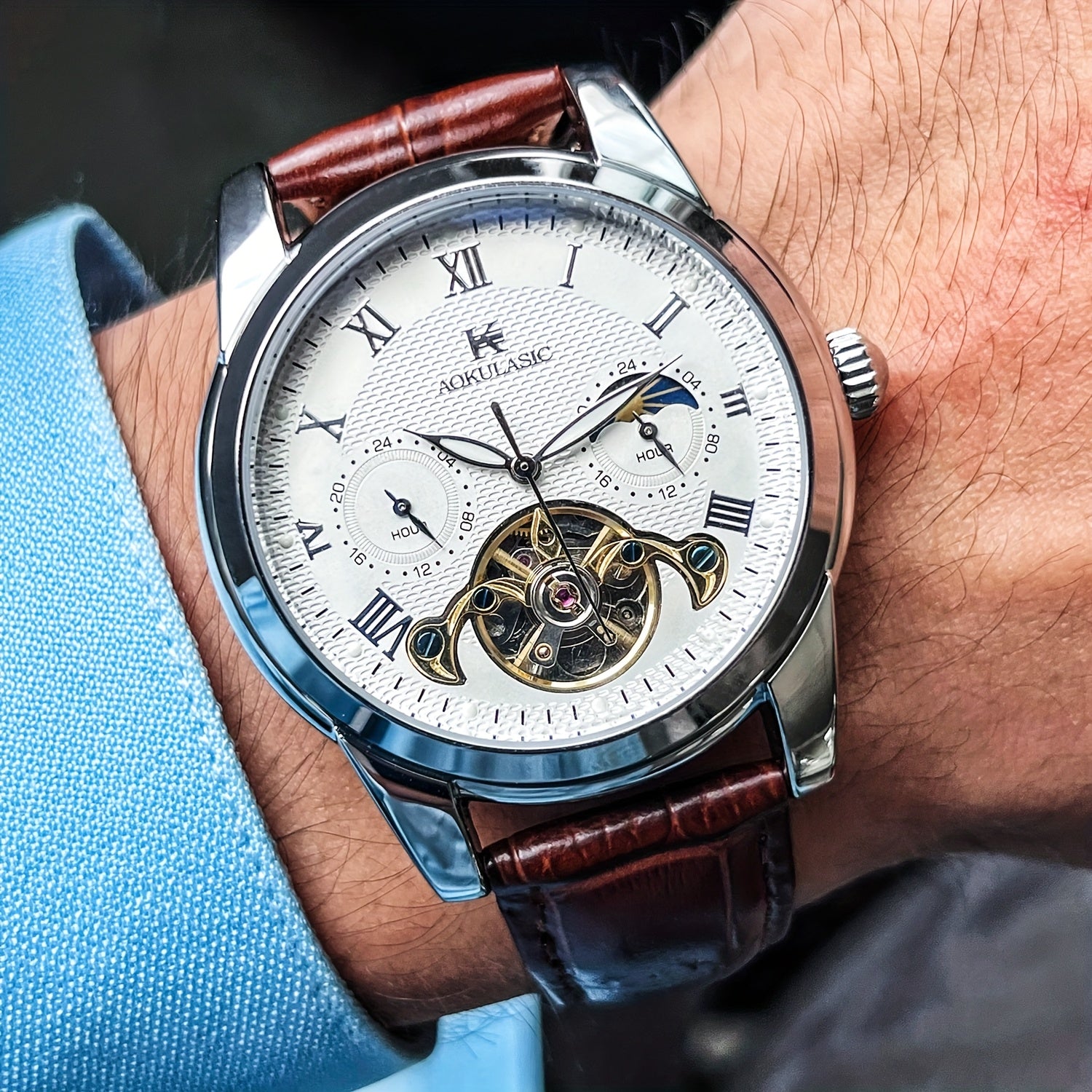Luxury Automatic Mechanical Watch for Men - Fashionable and Versatile Casual Style - Light Luxury High-end Sun, Moon, Stars 24-Hour Function - Automatic Winding Luminous Hands - Business Demeanor Style - Gift for V