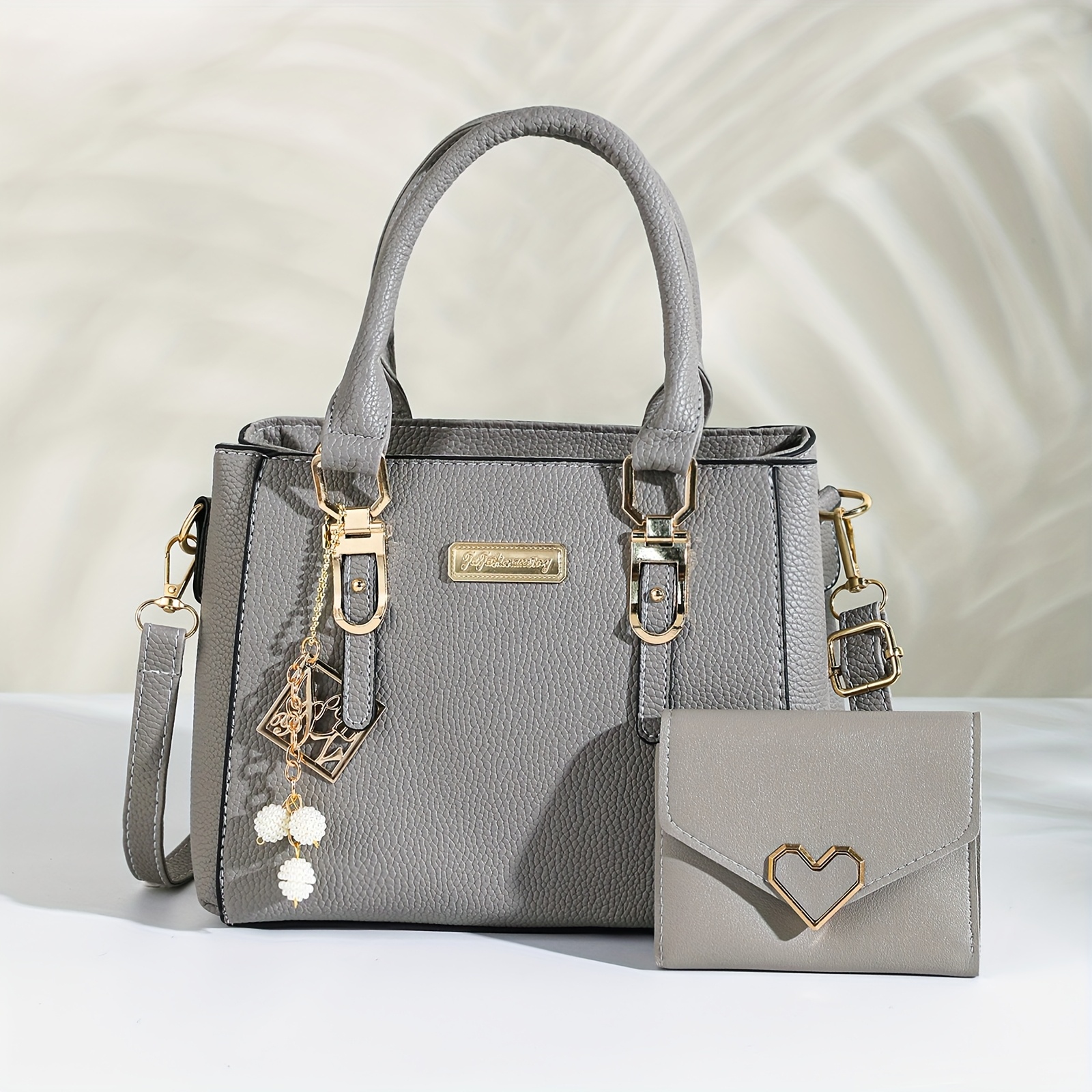 Ensemble 2 pièces sac à main et portefeuille femme, multi-poches, bandoulière, pendentif, polyvalent pour travail et voyage, cadeau parfait