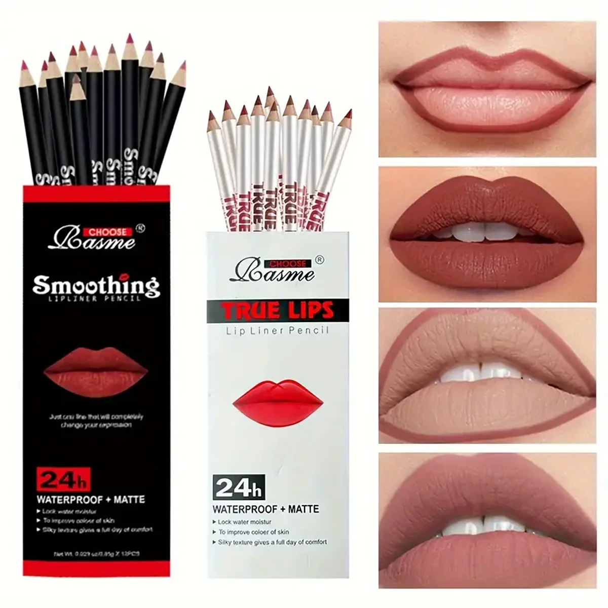2 Sets de 24 Crayons à Lèvres – Couleurs Marron, Rouge et Rose, Contour Durable et Lisse, Idéal Cadeau de Noël