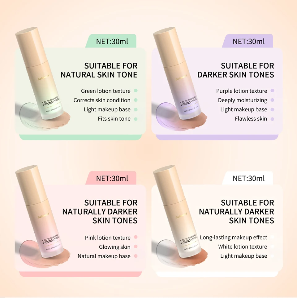Features:Color changing foundation、Lightweight base makeup、Centella asiatica extract、Flawless skin、Long-lasting makeup effect