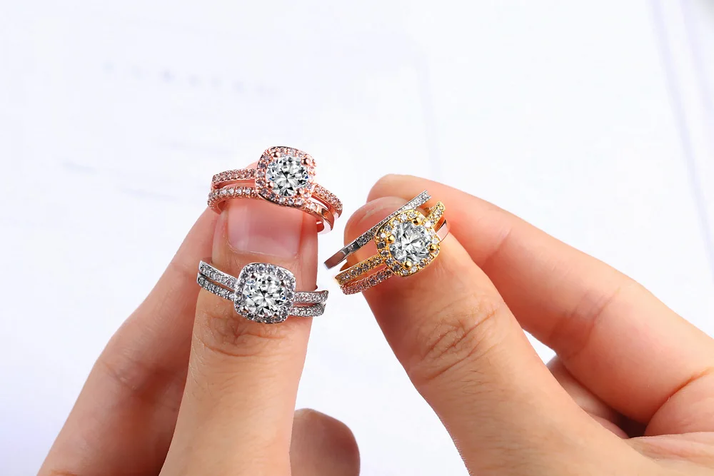 Wholesale Bulk Wedding Rings Couple Set Cubic Zircon Finger Ring Fine Fshion Jewelry |