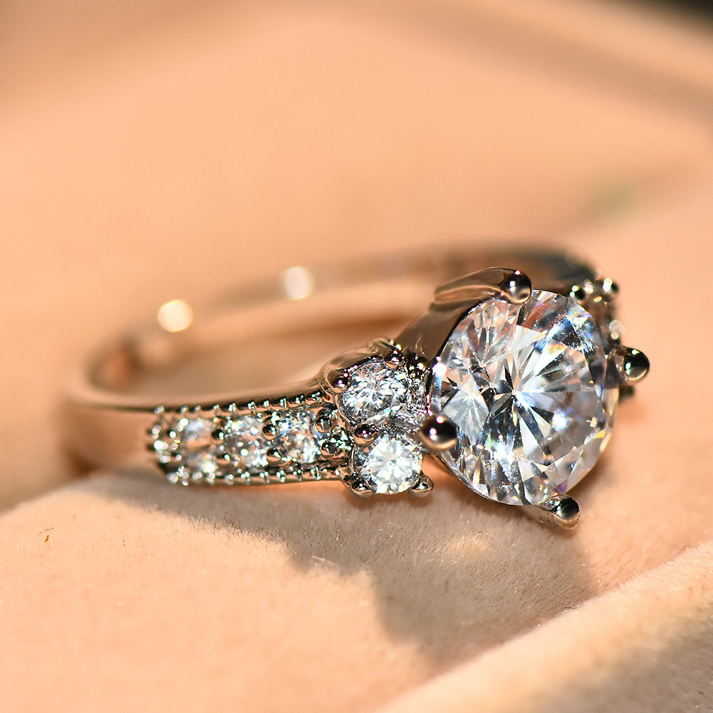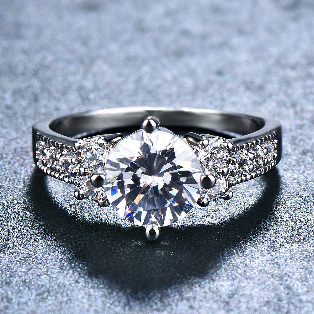 Women's 18k Gold Plated Promise Ring with Round Synthetic Zirconia - Elegant Multicolor (White/Pink/Blue) Wedding, Anniversary & Valentine's Gift, Year-Round Wearable for Birthdays, Engagements, Daily Use