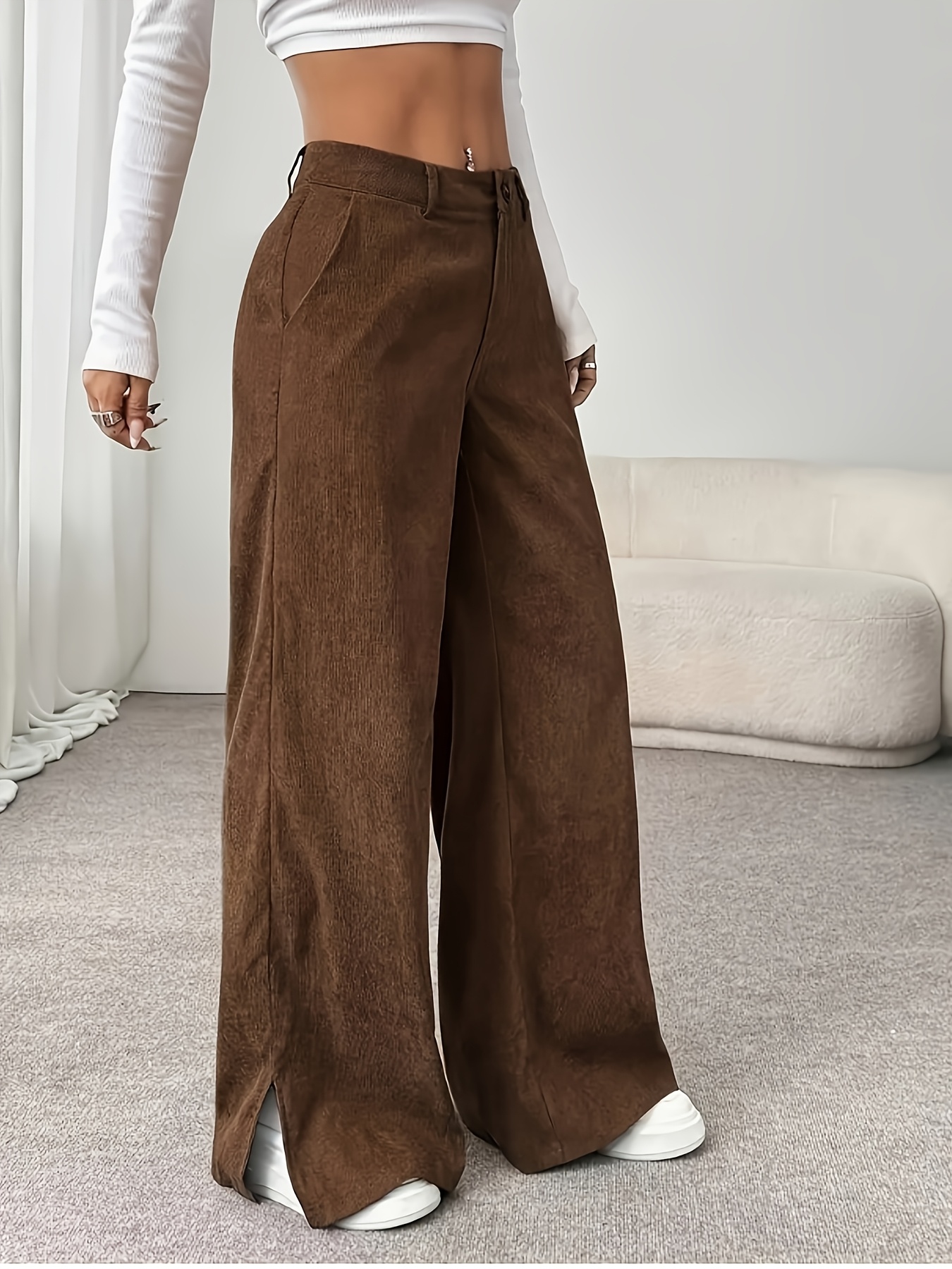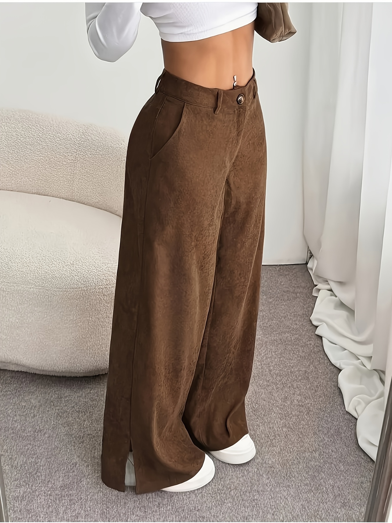 Pantalon Femme Décontracté Jambe Large – Poches Latérales, Tous Saisons, Bureau et Décontracté