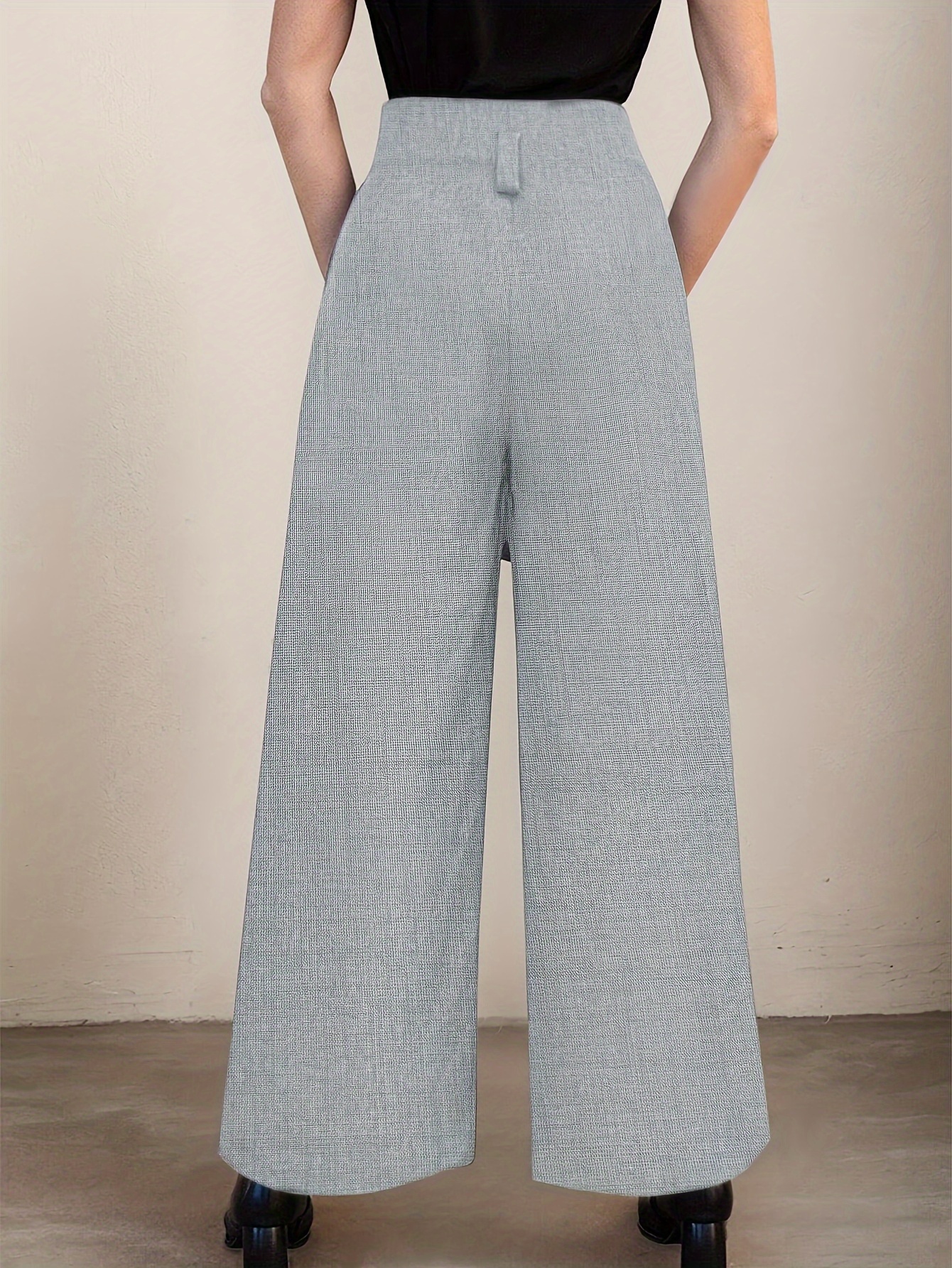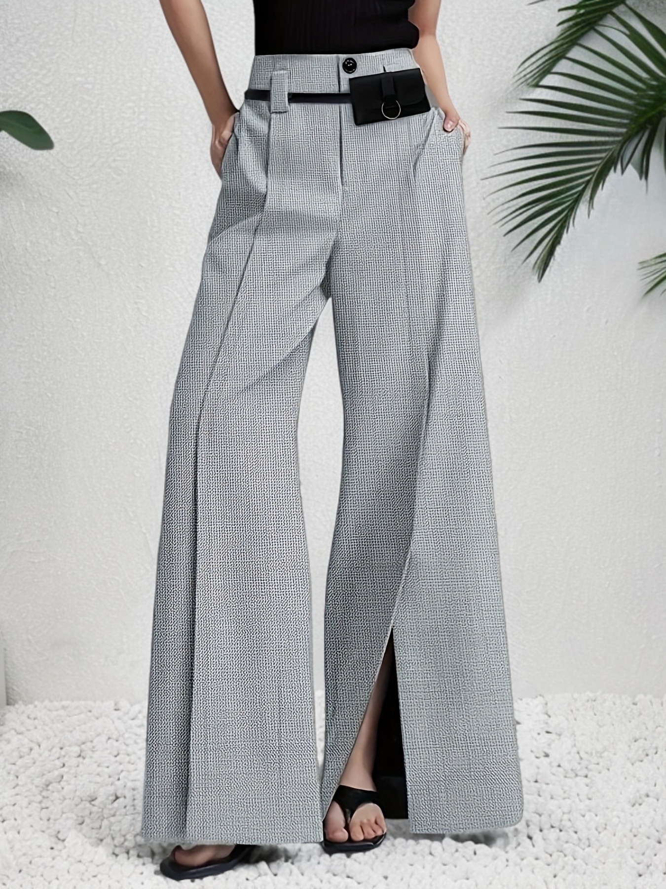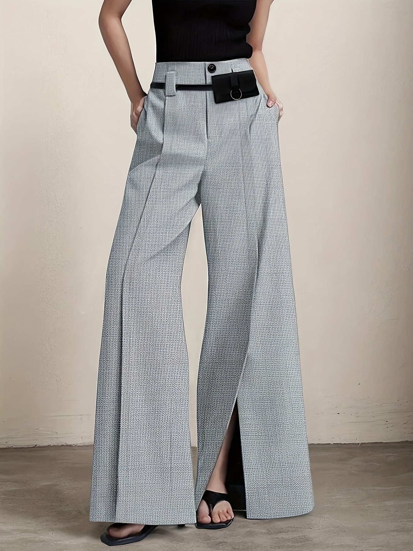 Pantalon Femme Élégant Jambe Large – Polyester, Couleur Unie, Fente Avant et Poches, Fermeture Zippée, Confortable, Automne/Hiver