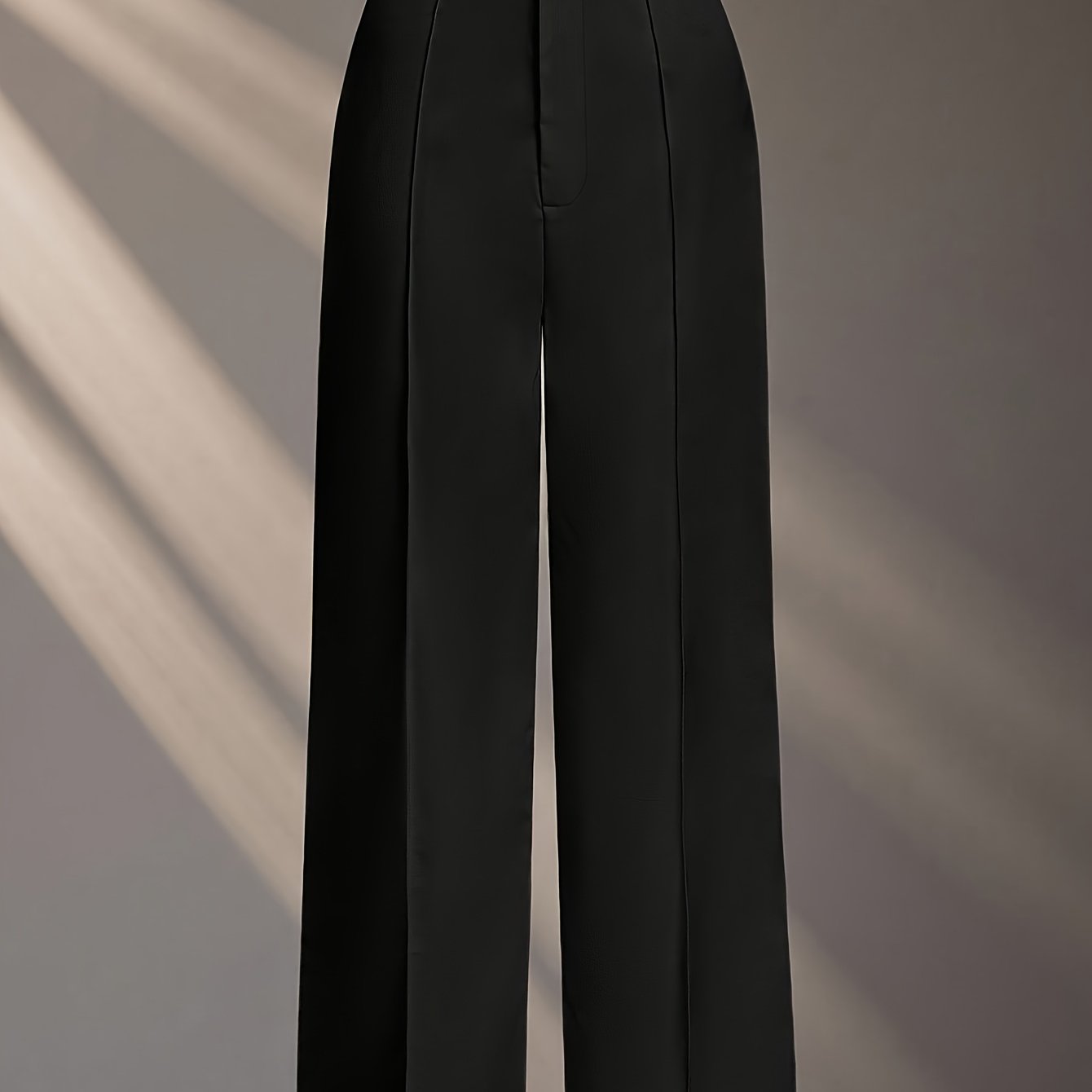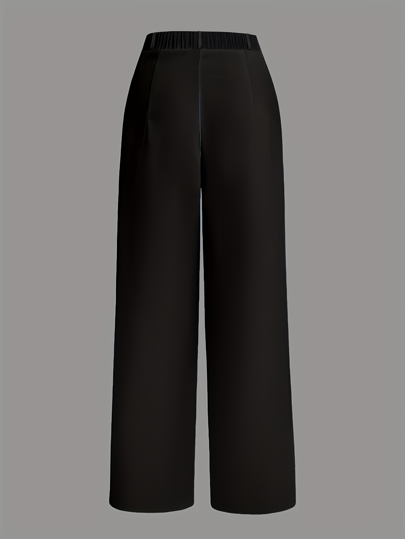 Pantalon Femme Élégant Jambe Large – Couleur Unie, Boutons, Tous Saisons, Bureau et Décontracté