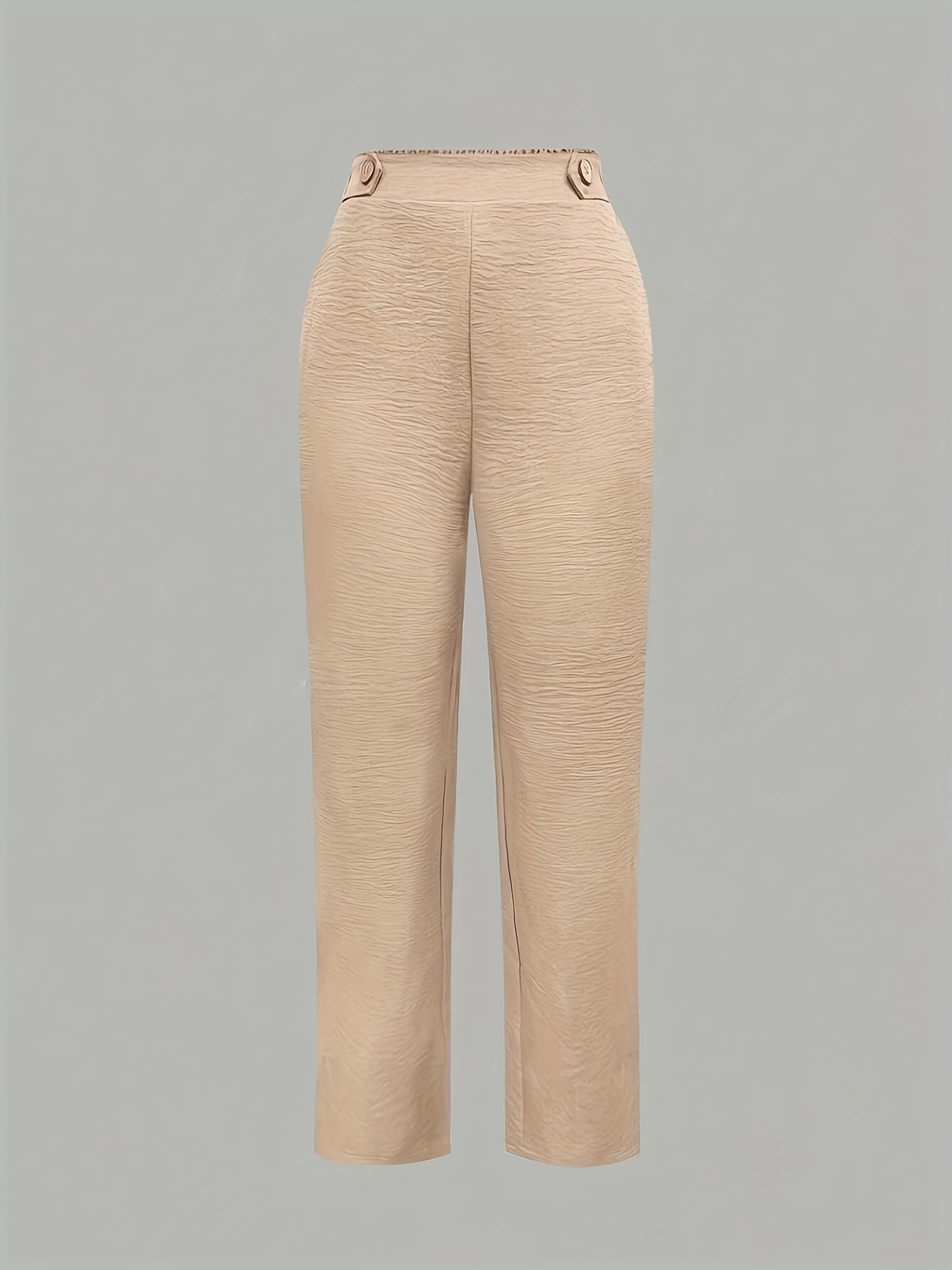 Pantalon Femme Élégant Jambe Droite – Couleur Unie Beige, Taille Haute, Poches Obliques et Boutons, Bureau et Décontracté, Printemps/Été