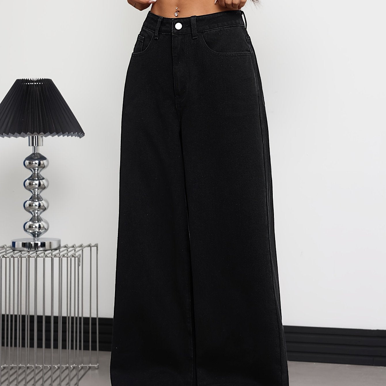 Jeans Femme Taille Haute – Jambe Droite, Noir, Décontracté avec Poches, Tous Saisons