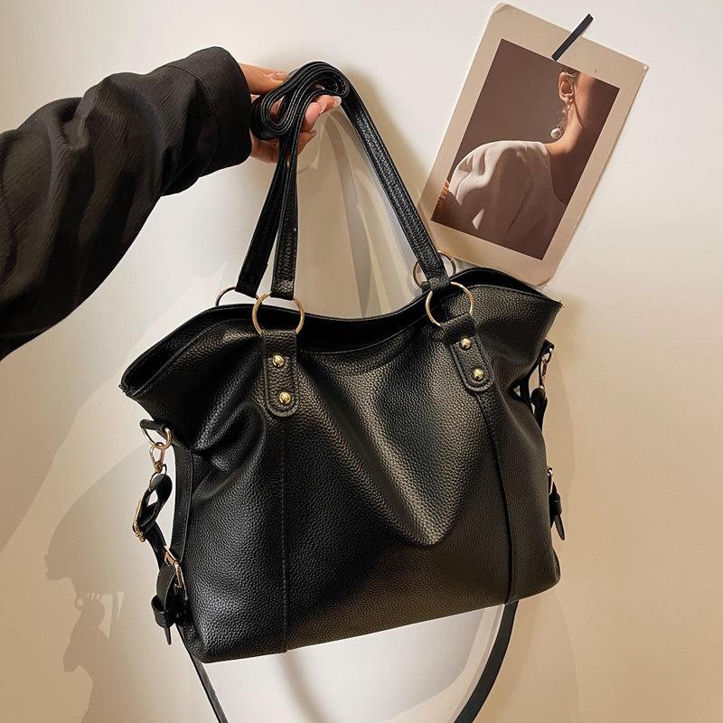 Sac Cabas Femme Grande Capacité – Sac Élégant Minimaliste avec Fermeture Éclair, Spacieux pour le Travail, Usage Quotidien et Événements Formels, Sac Synthétique Durable Noir Mat, Polyvalent, Poignées Solides