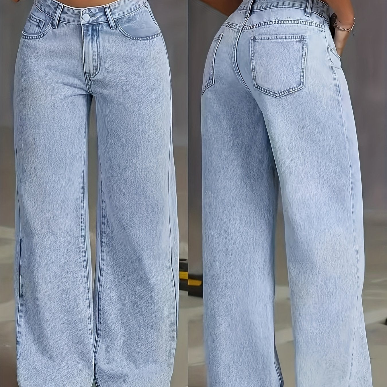 Jeans Femme Bleu Clair – Jambe Large, Décontracté avec Boutons, Tissu Non Extensible, Tous Saisons