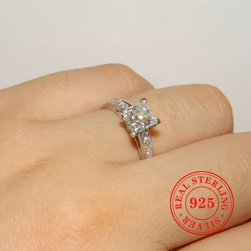 Women's S925 Sterling Silvery 4-Prong Princess Cut Cubic Synthetic Zirconia Engagement Wedding Ring, Premium Jewelry