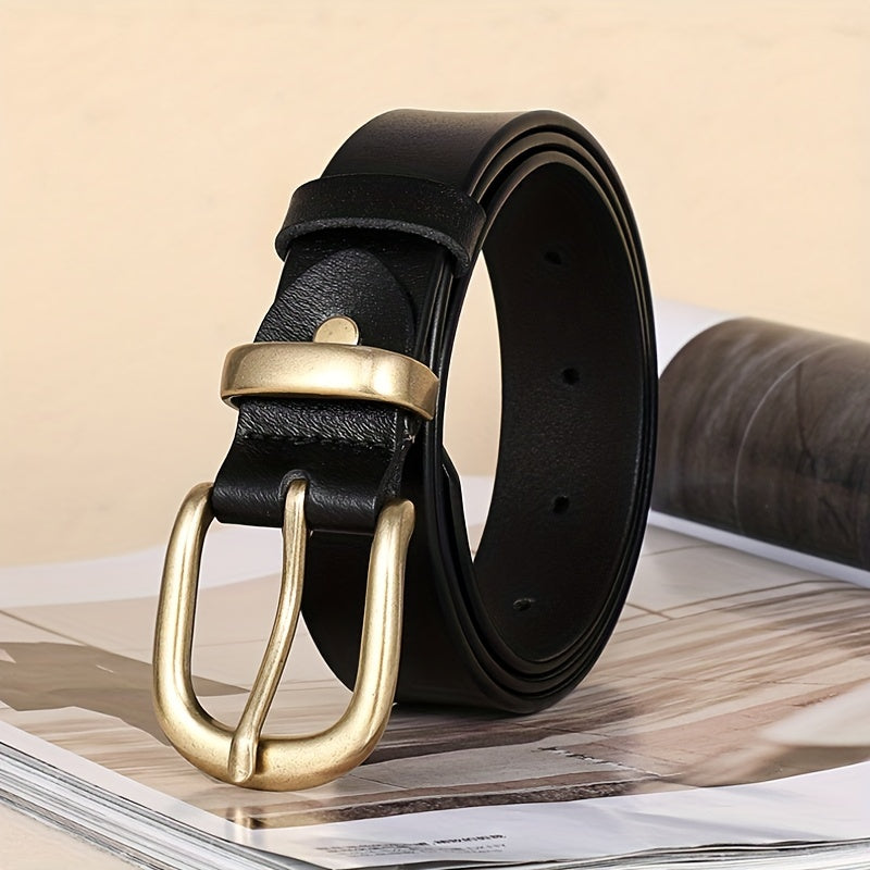 Ceinture à double couche en cuir pour femmes – Boucle bouton stylée, bande de taille polyvalente et décontractée pour tenues casual