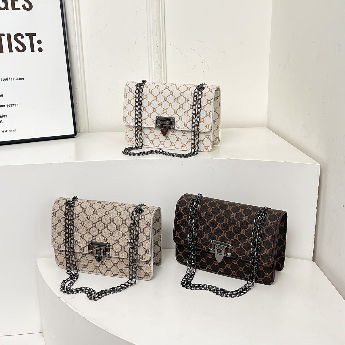 Sac à bandoulière pour femme – grand sac à main spacieux avec chaîne, porté épaule ou croisé, style élégant pour femmes mûres.